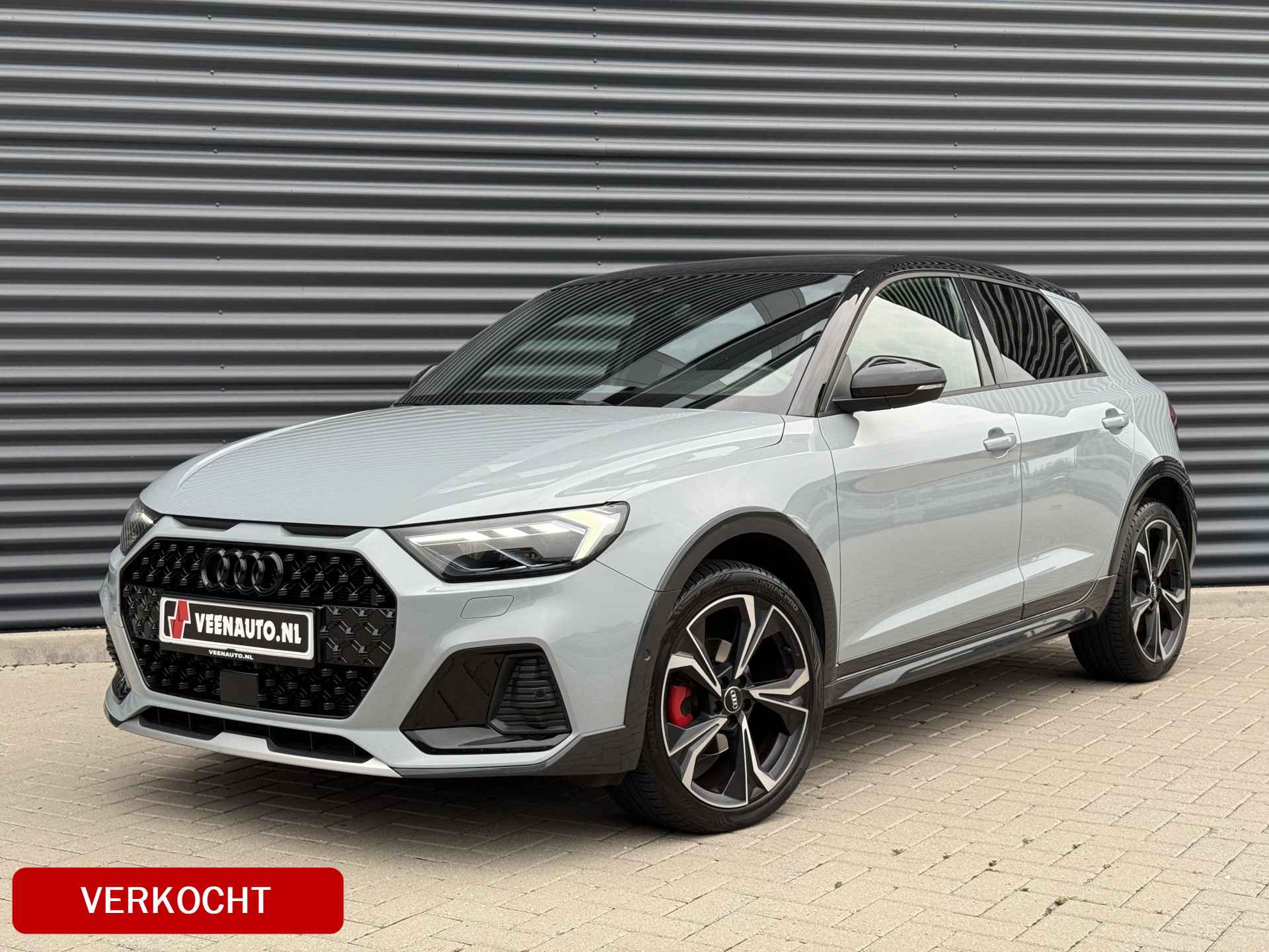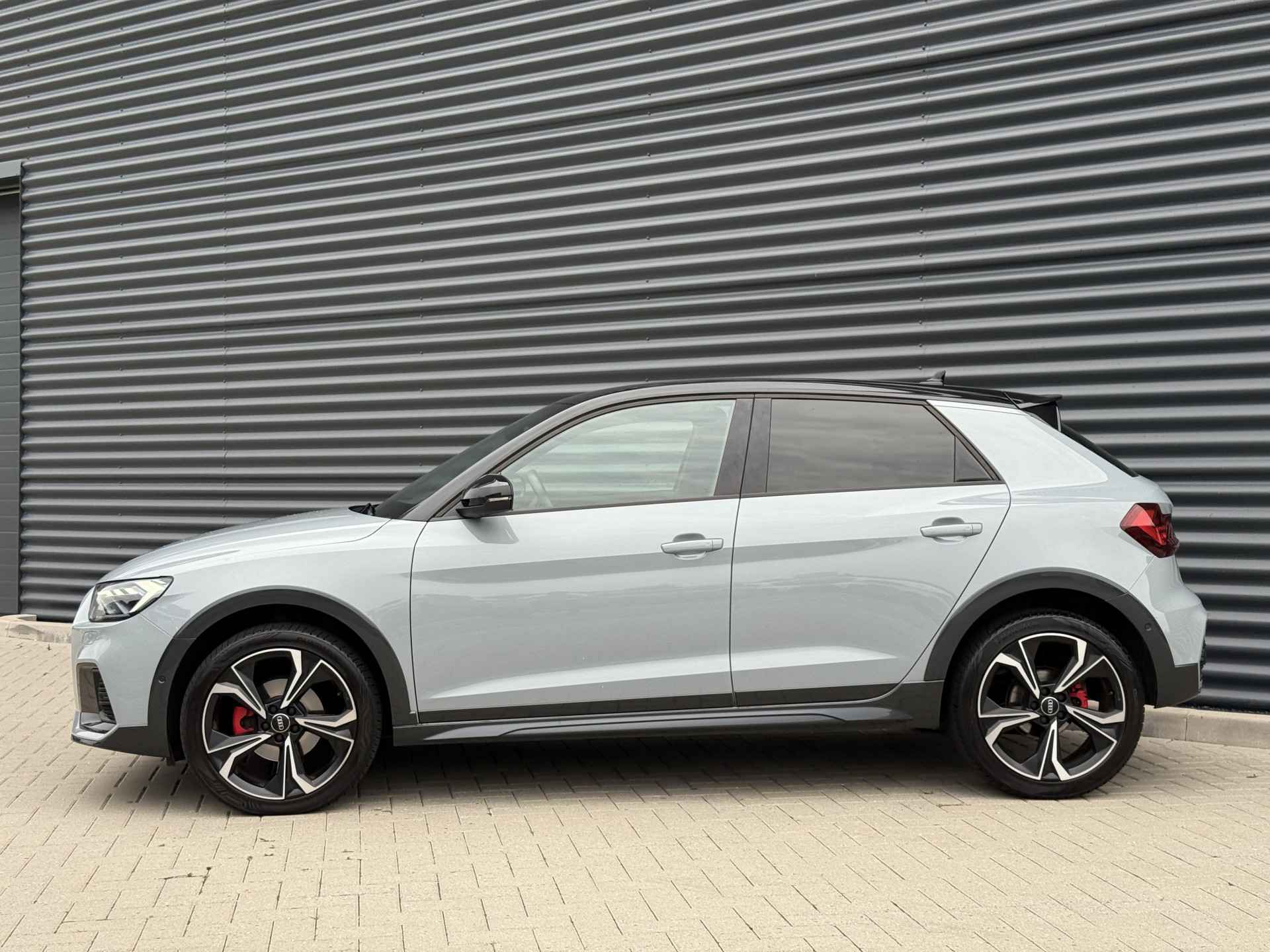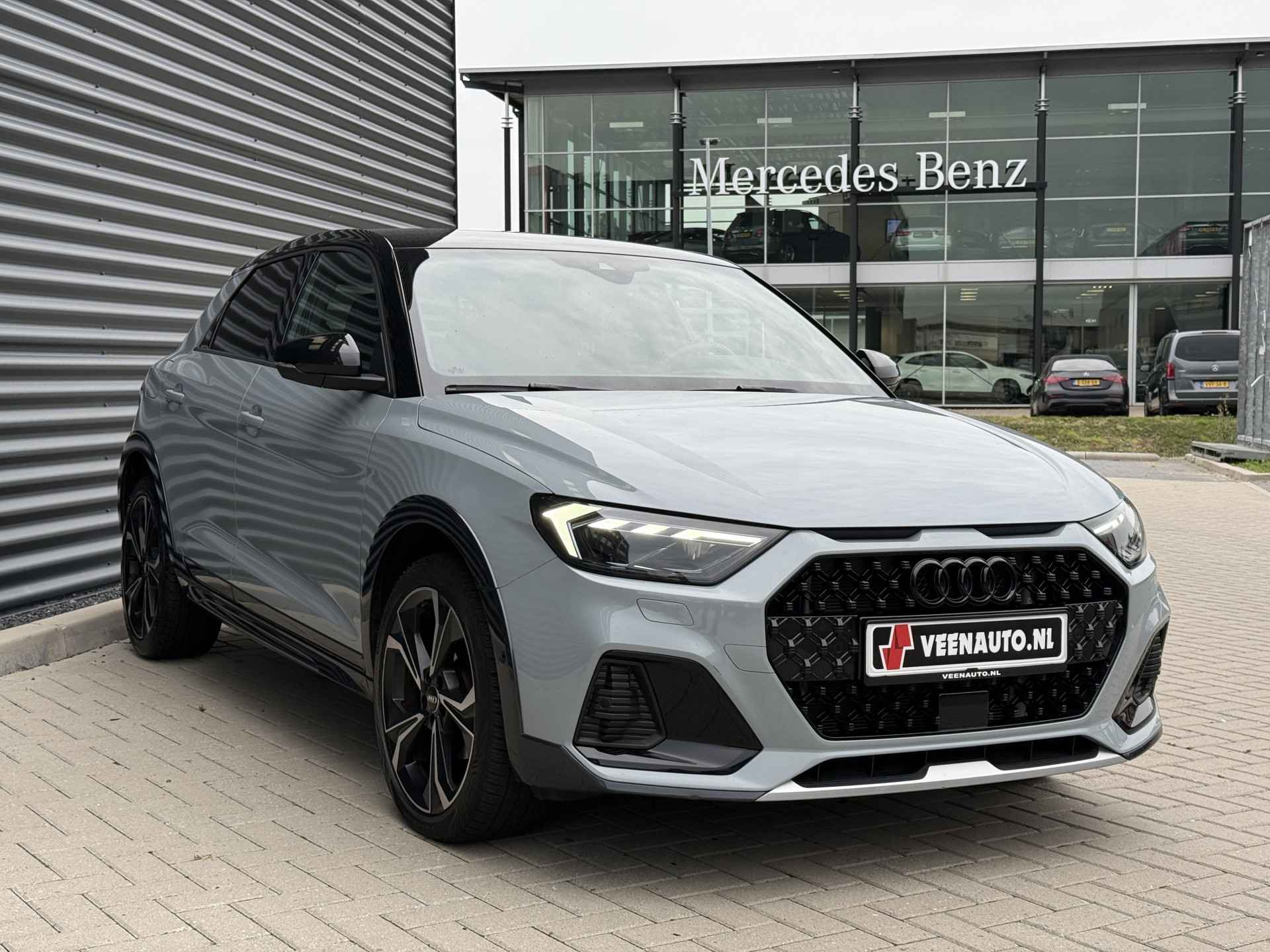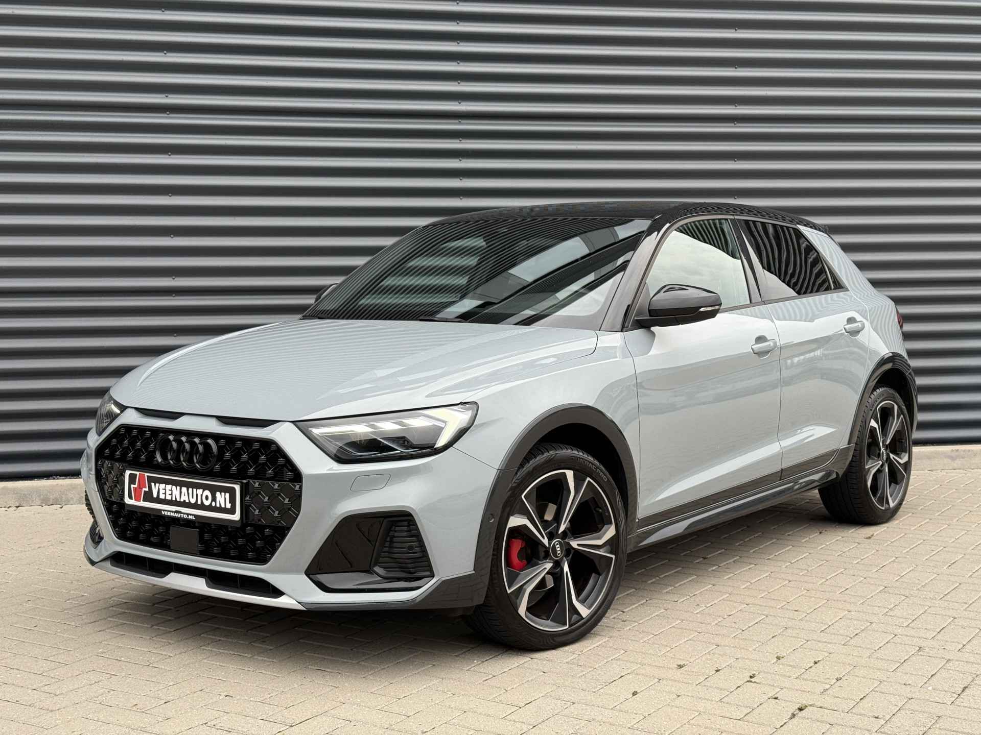 Schitterende Audi A1 Citycarver 30 TFSI Automaat in Pfeill Grau Metallic met Black Optic pakket en 18 inch licht metalen velgen met Vredestein All Season banden.
