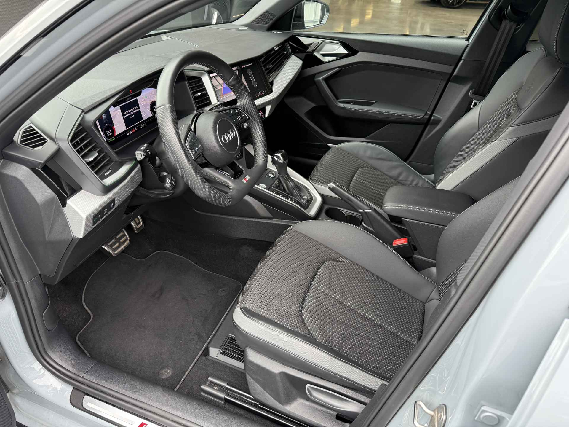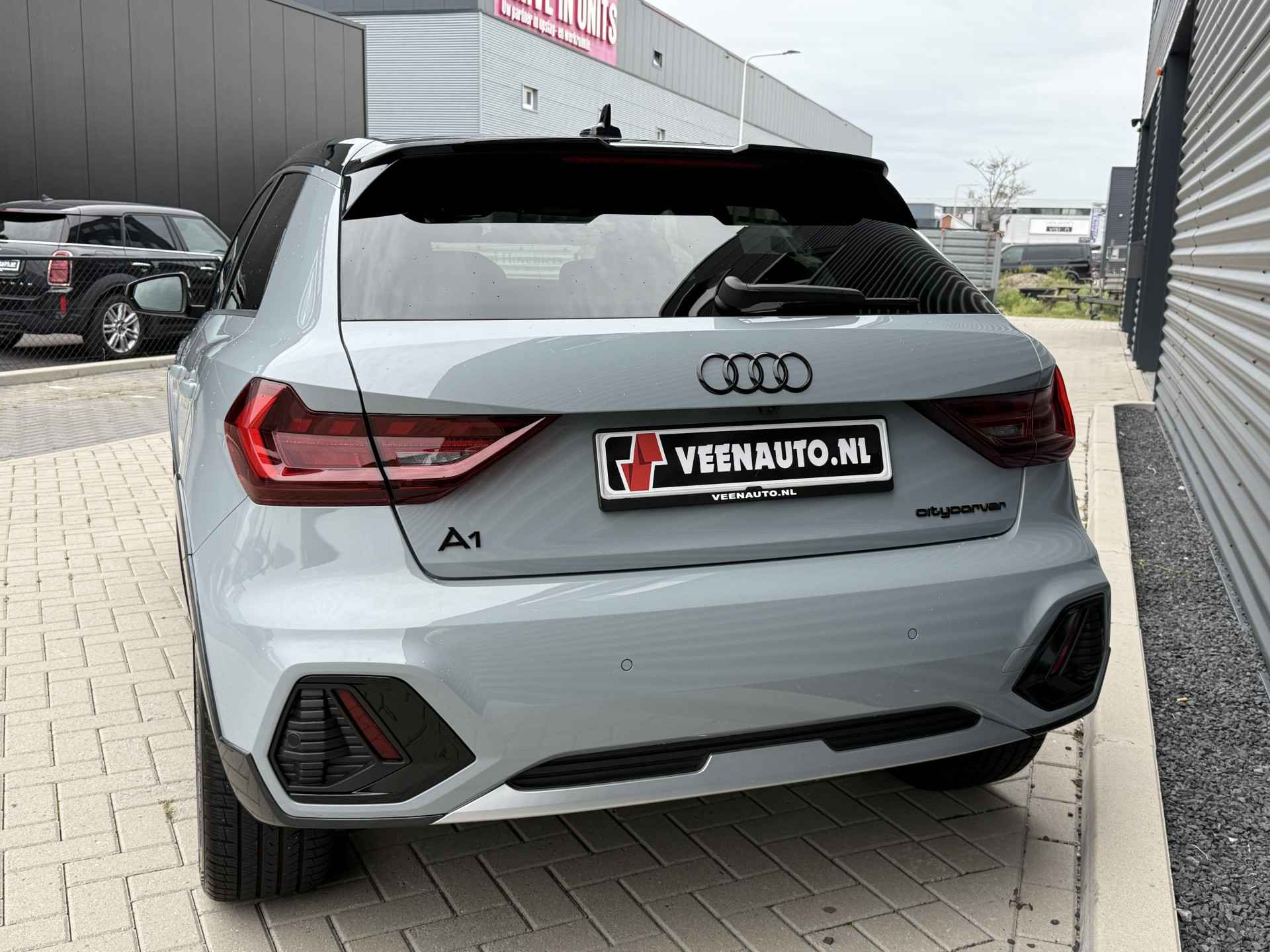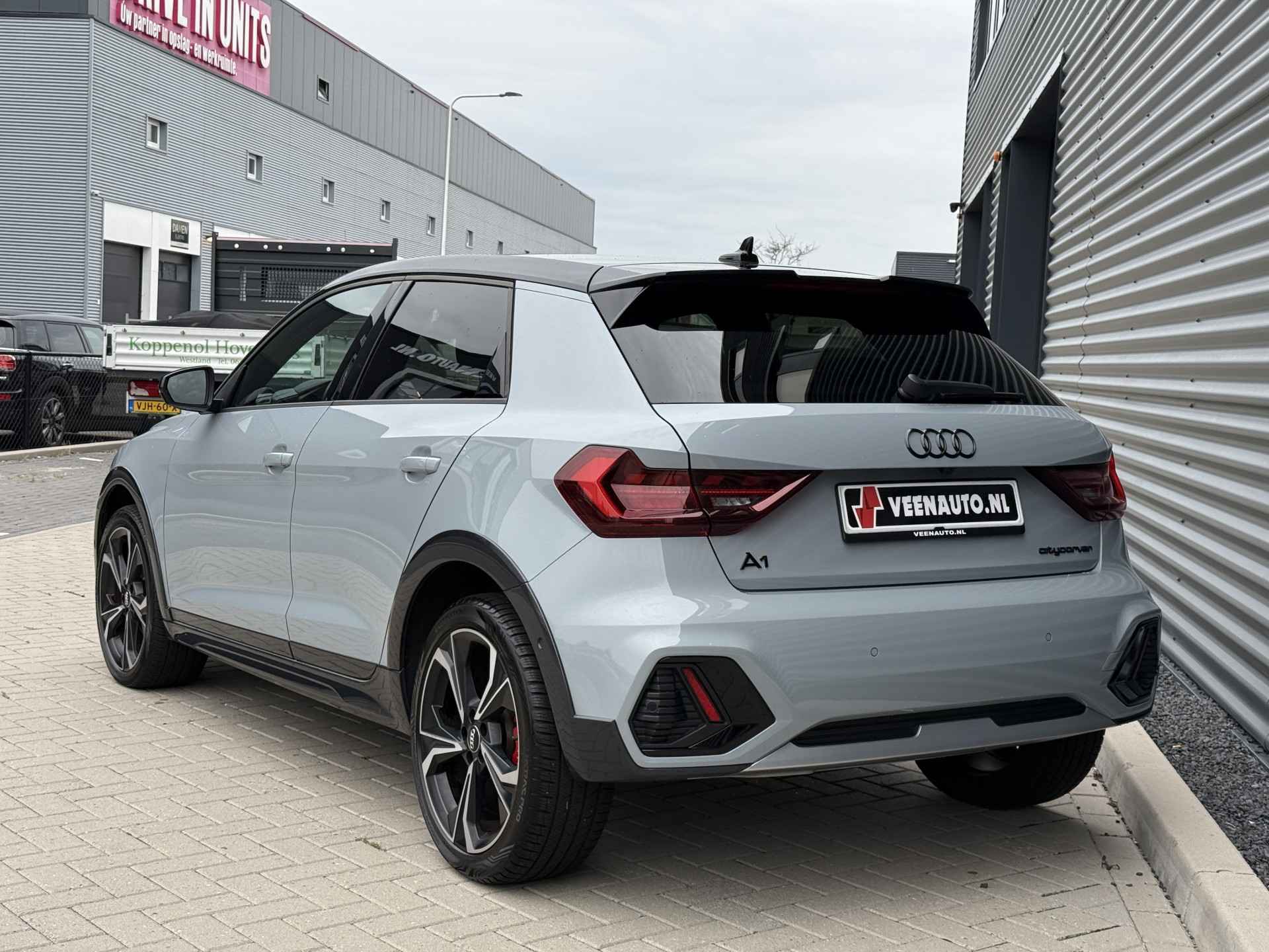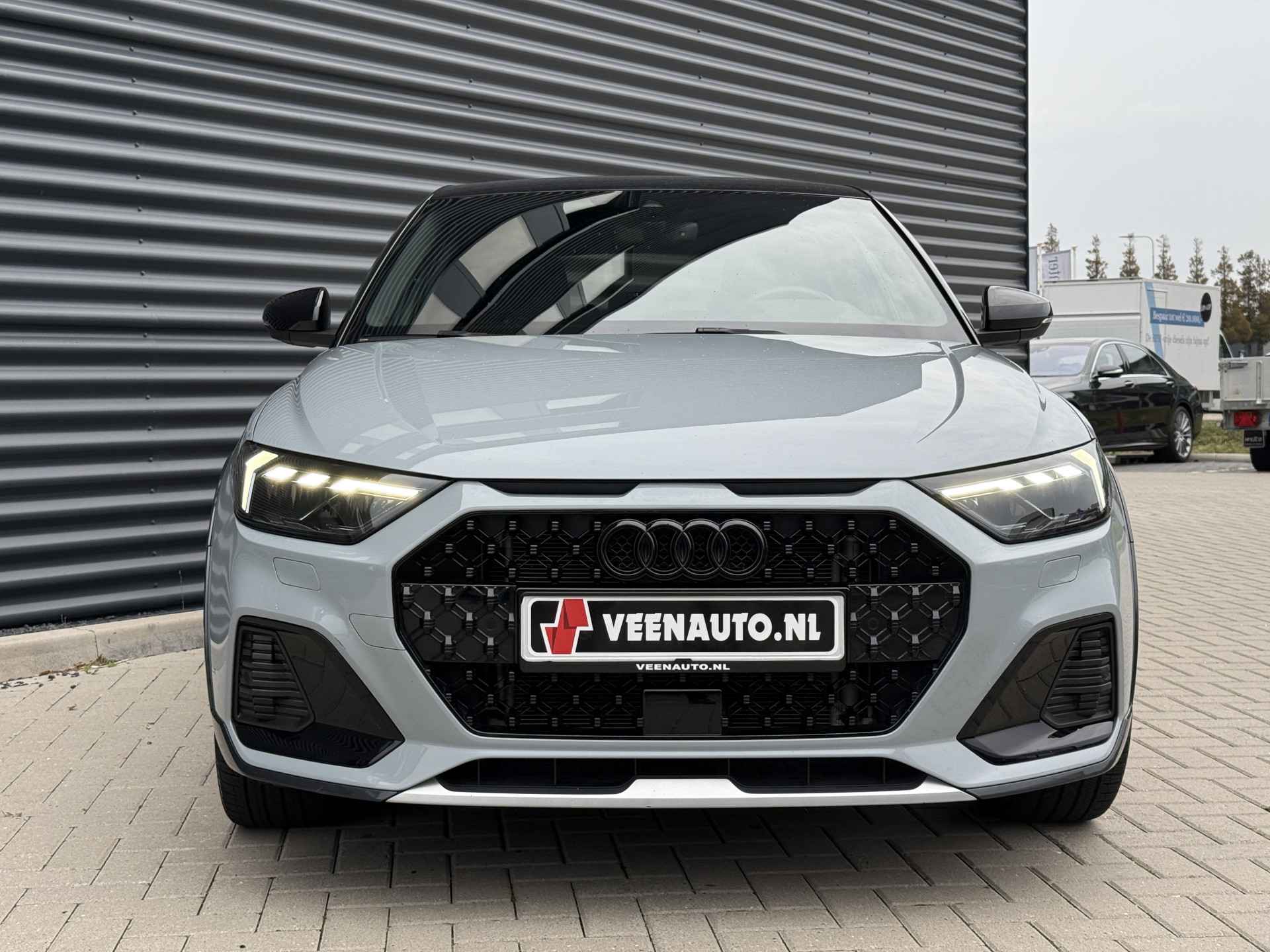 Schitterende Audi A1 Citycarver 30 TFSI Automaat in Pfeill Grau Metallic met Black Optic pakket en 18 inch licht metalen velgen met Vredestein All Season banden.