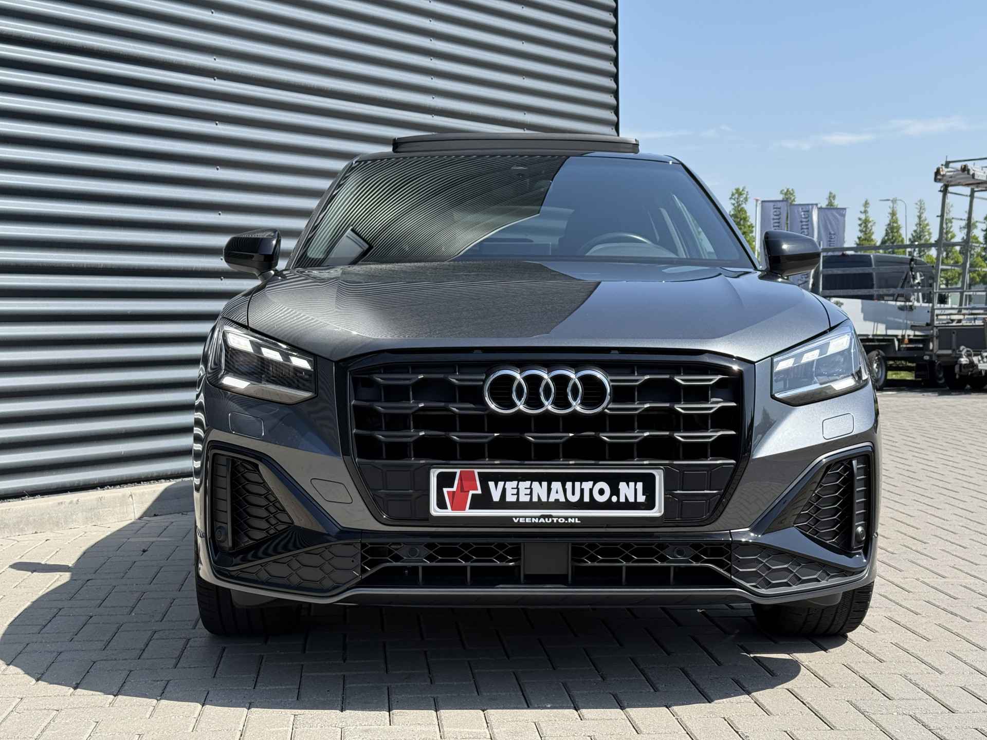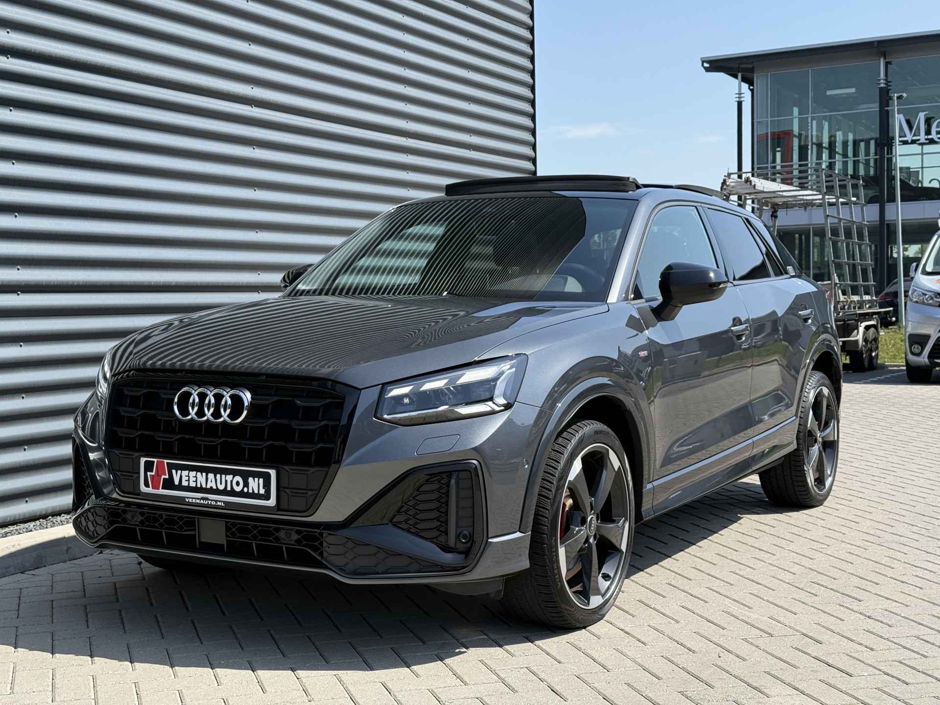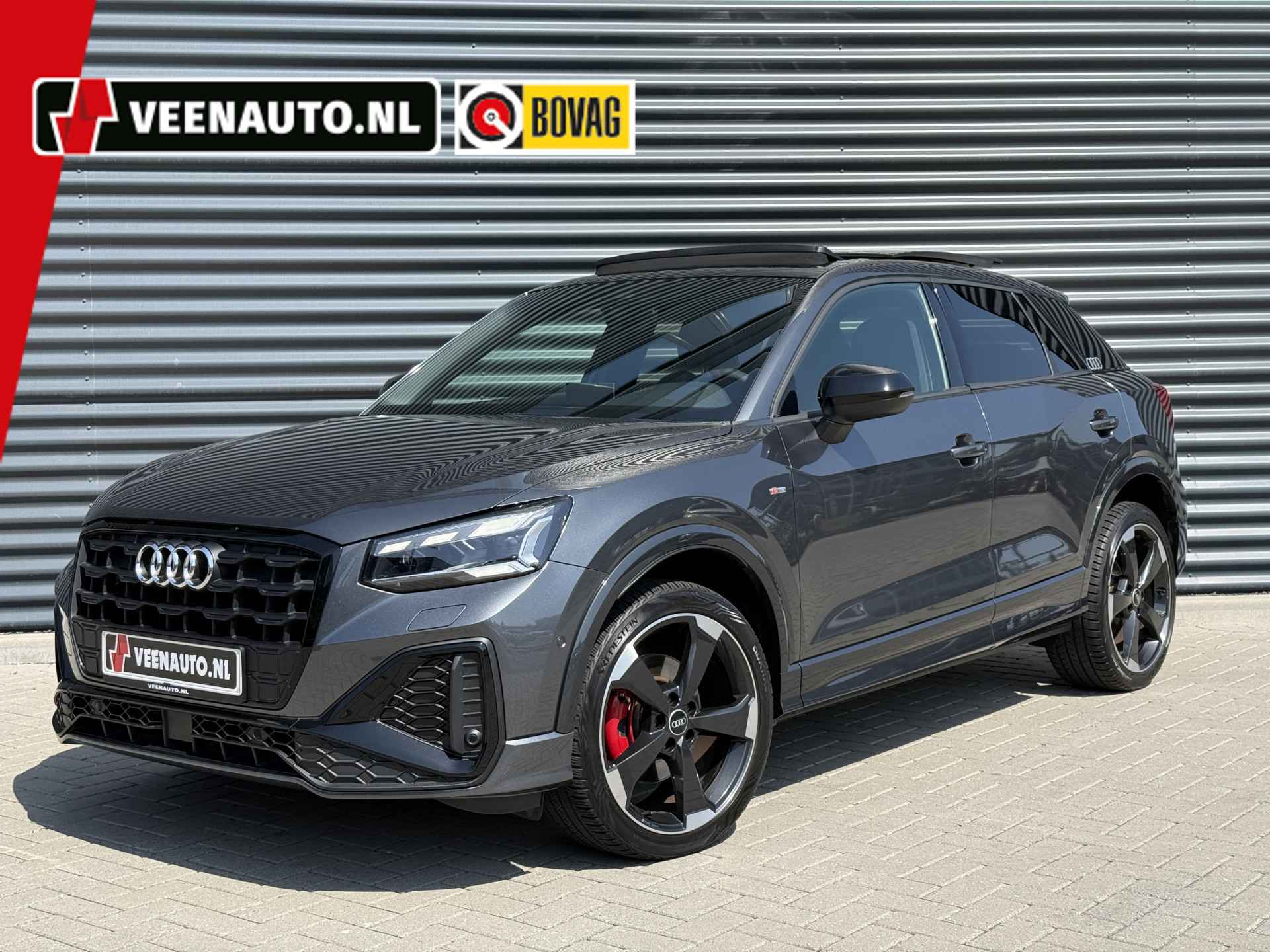 Schitterende Audi Q2 35TFSI S-LINE in Daytona Grijs metallic voorzien van bijzonder veel gave opties zoals: Panorama dak, Bang & Olufsen Audio, Matrix LED, Apple Carplay/Android Auto, achteruitrijcamera, Keyless entry and start, stoelverwarming, lederen S-Line sportstuur, virtuele cockpit, LED Sfeer interieur verlichting, draadloze telefoonlader, 19 inch LM velgen op ALL SEASON banden, zwarte hemelbekleding, etc..