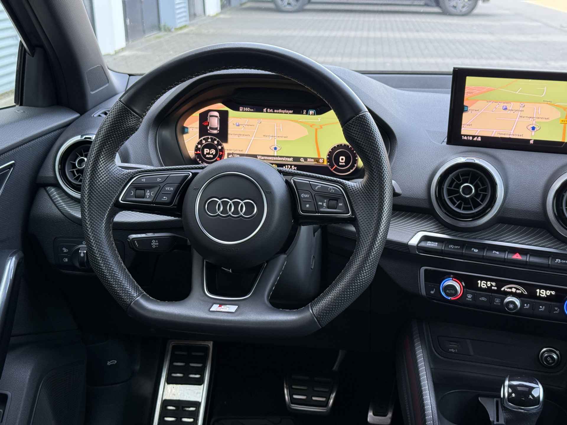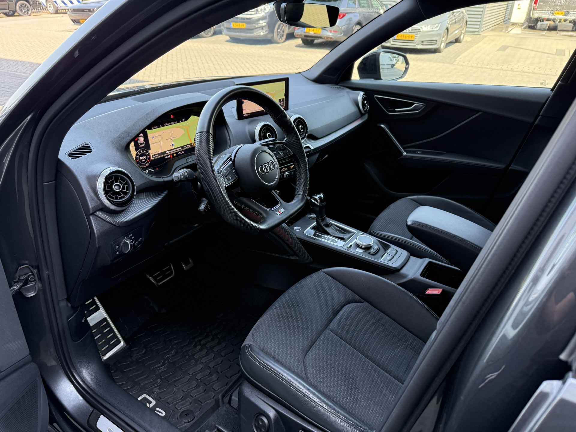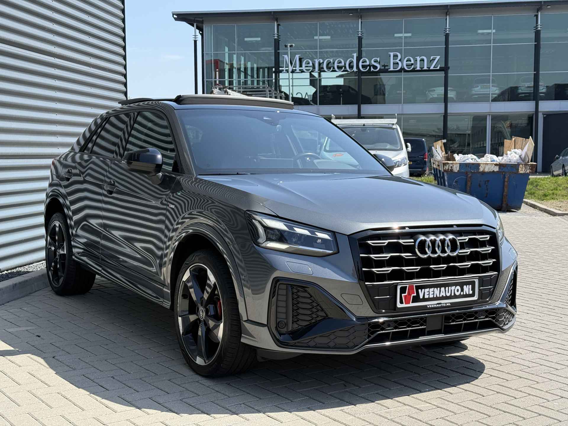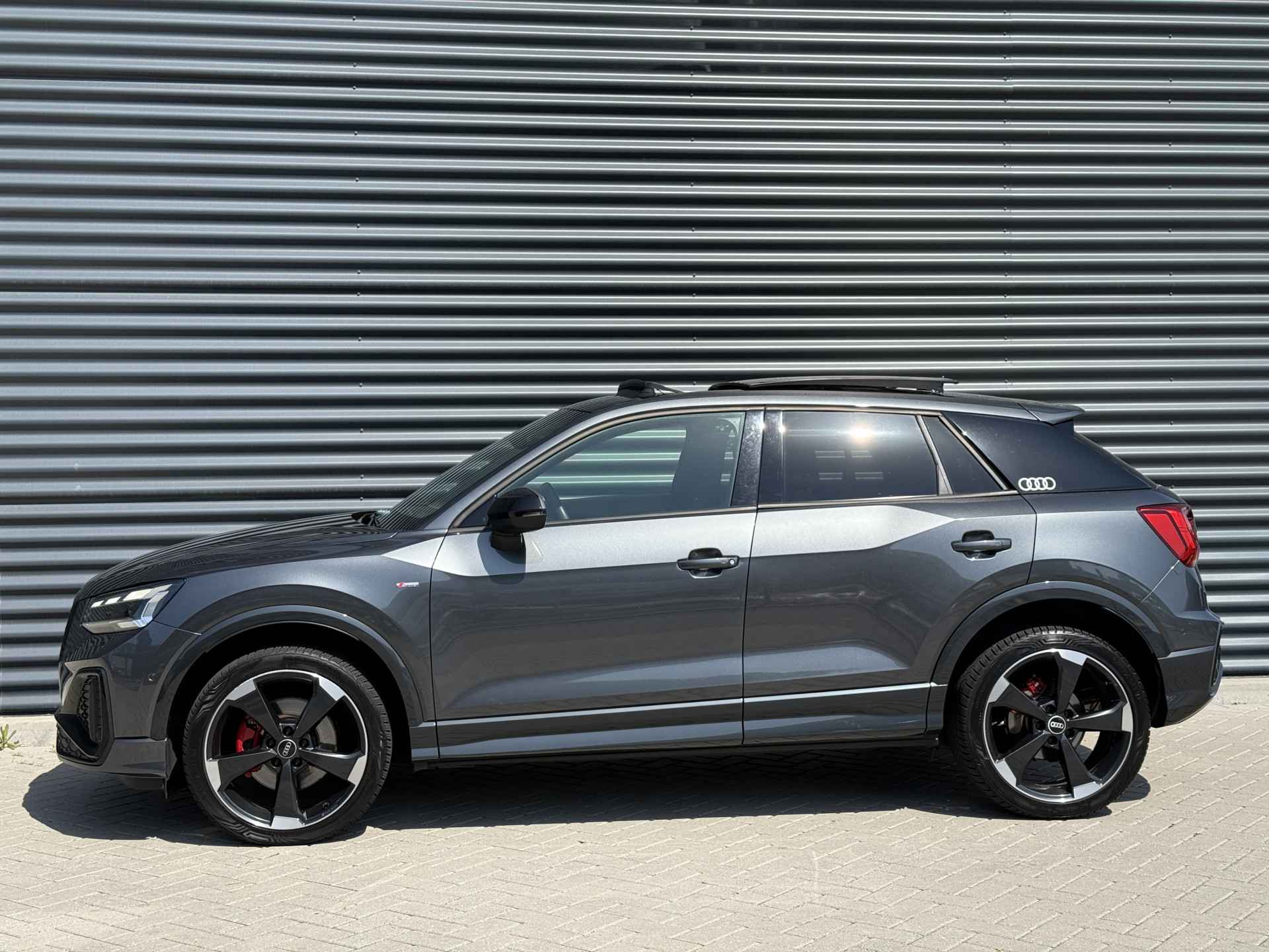 Schitterende Audi Q2 35TFSI S-LINE in Daytona Grijs metallic voorzien van bijzonder veel gave opties zoals: Panorama dak, Bang & Olufsen Audio, Matrix LED, Apple Carplay/Android Auto, achteruitrijcamera, Keyless entry and start, stoelverwarming, lederen S-Line sportstuur, virtuele cockpit, LED Sfeer interieur verlichting, draadloze telefoonlader, 19 inch LM velgen op ALL SEASON banden, zwarte hemelbekleding, etc..
