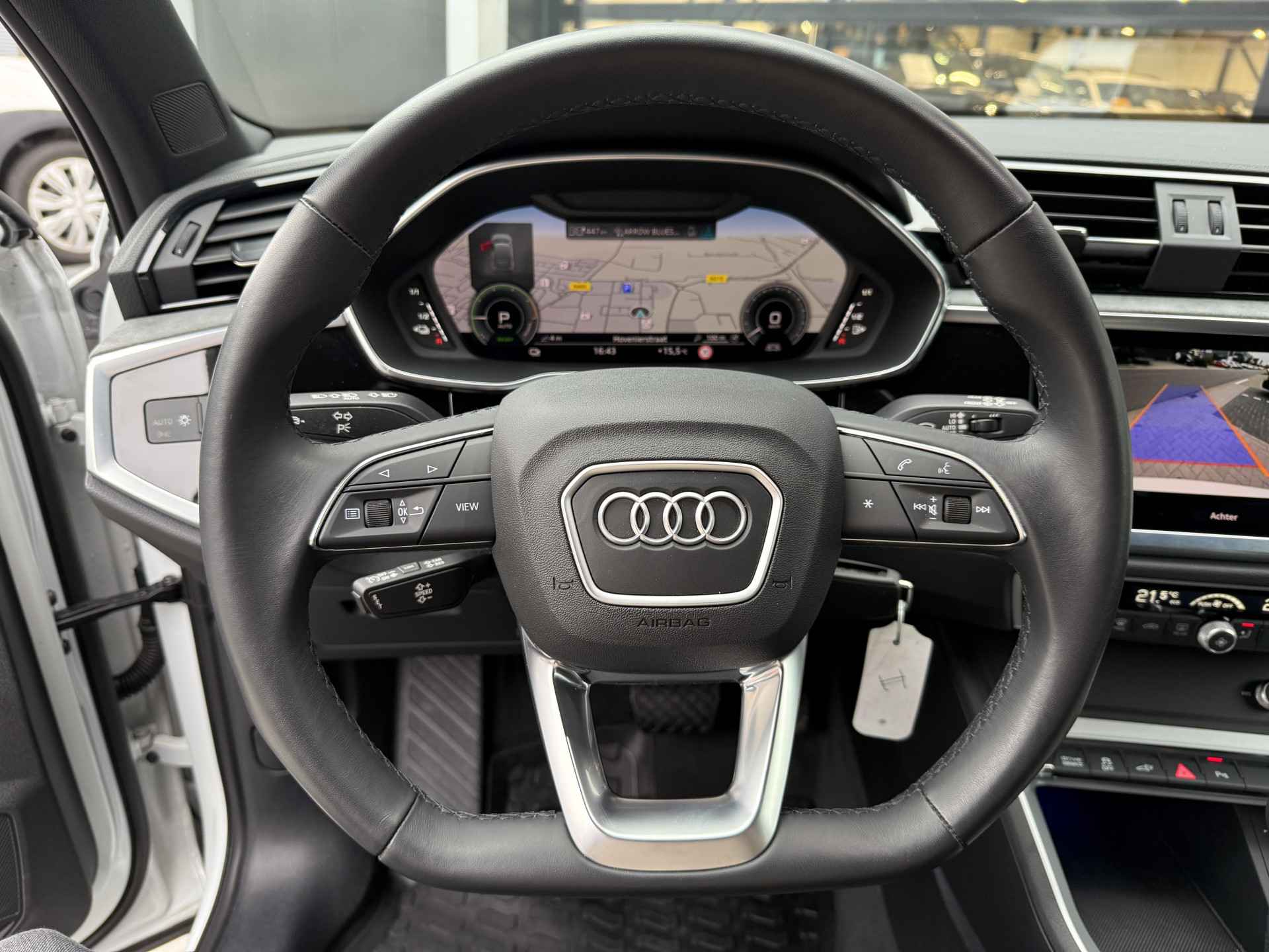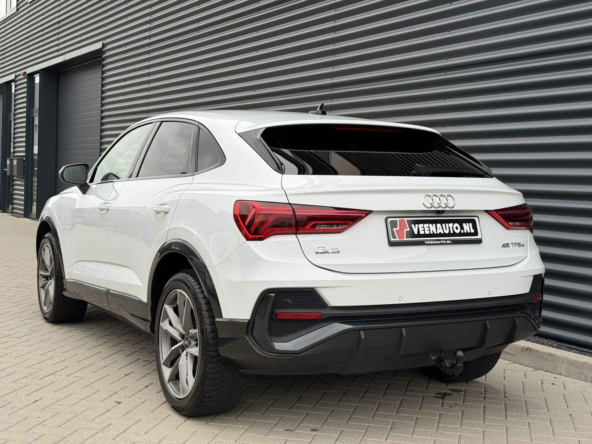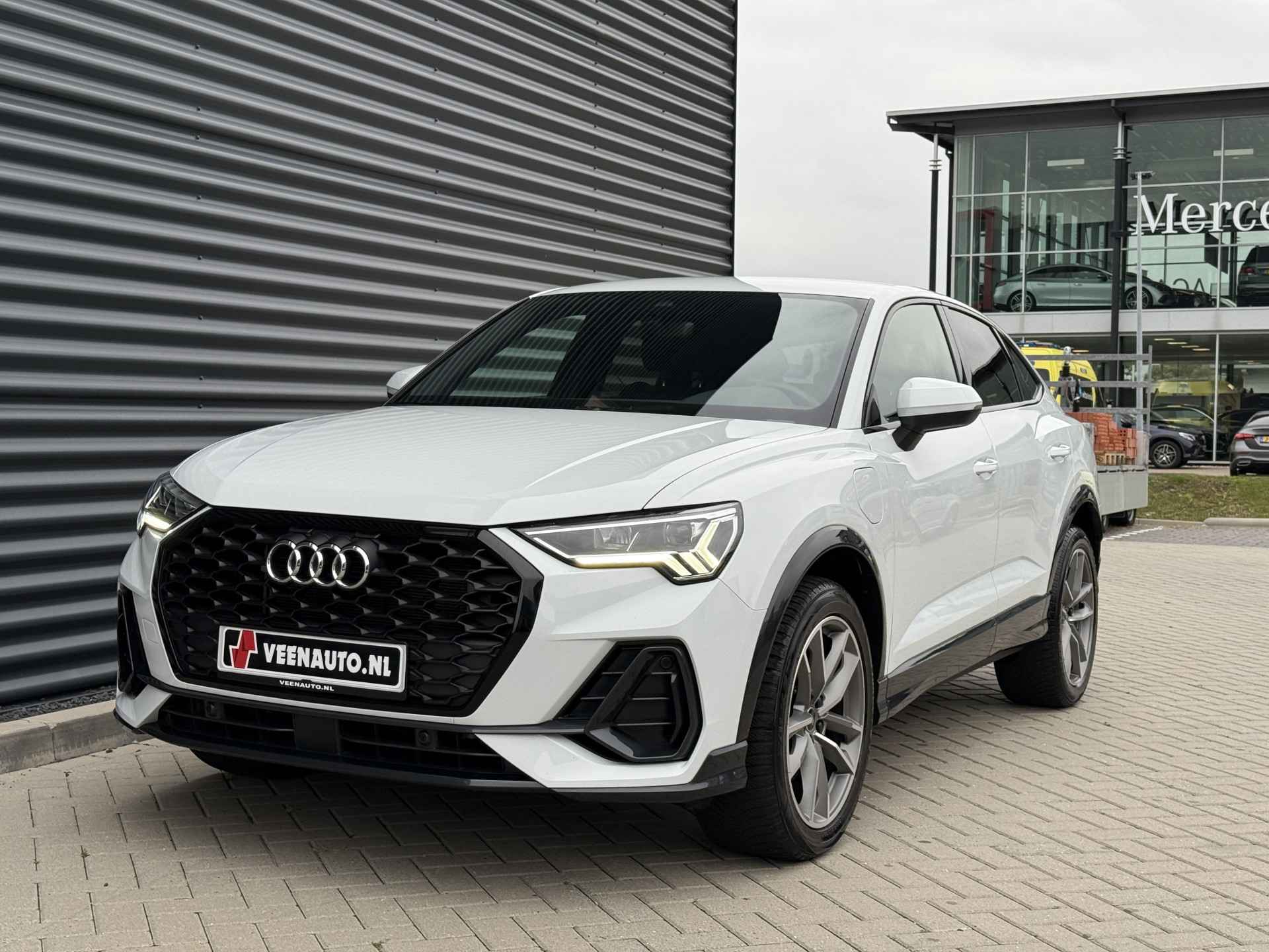 Schitterende Audi Q3 Sportback 45TFSI e S-Line voorzien van veel mooie opties zoals: Elektrisch wegklapbare trekhaak (TREKGEWICHT 1400KG), achteruitrijcamera, navigatie, LED verlichting, LED sfeer interieur verlichting, Virtuele cockpit, sportstuur, cruise control, stoelverwarming, 19 inch licht metalen velgen op All Season banden, etc..