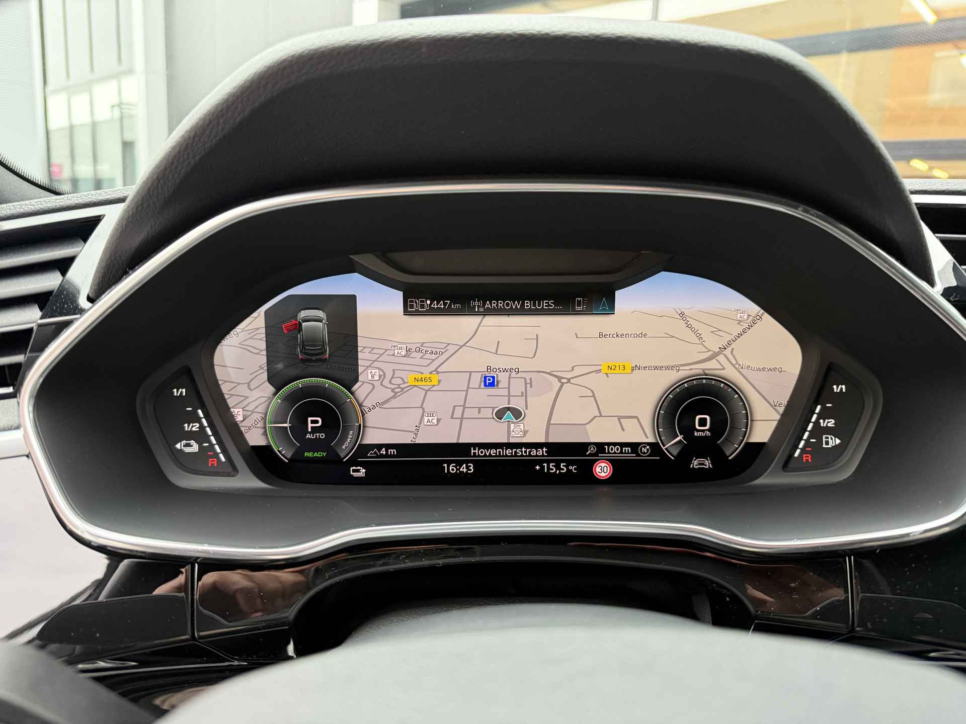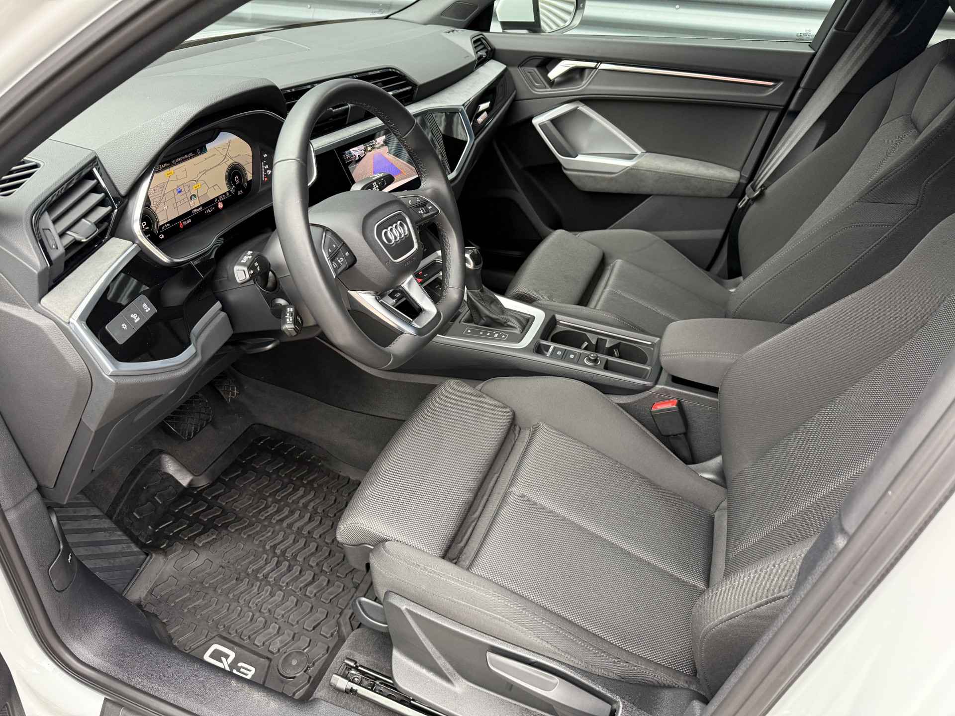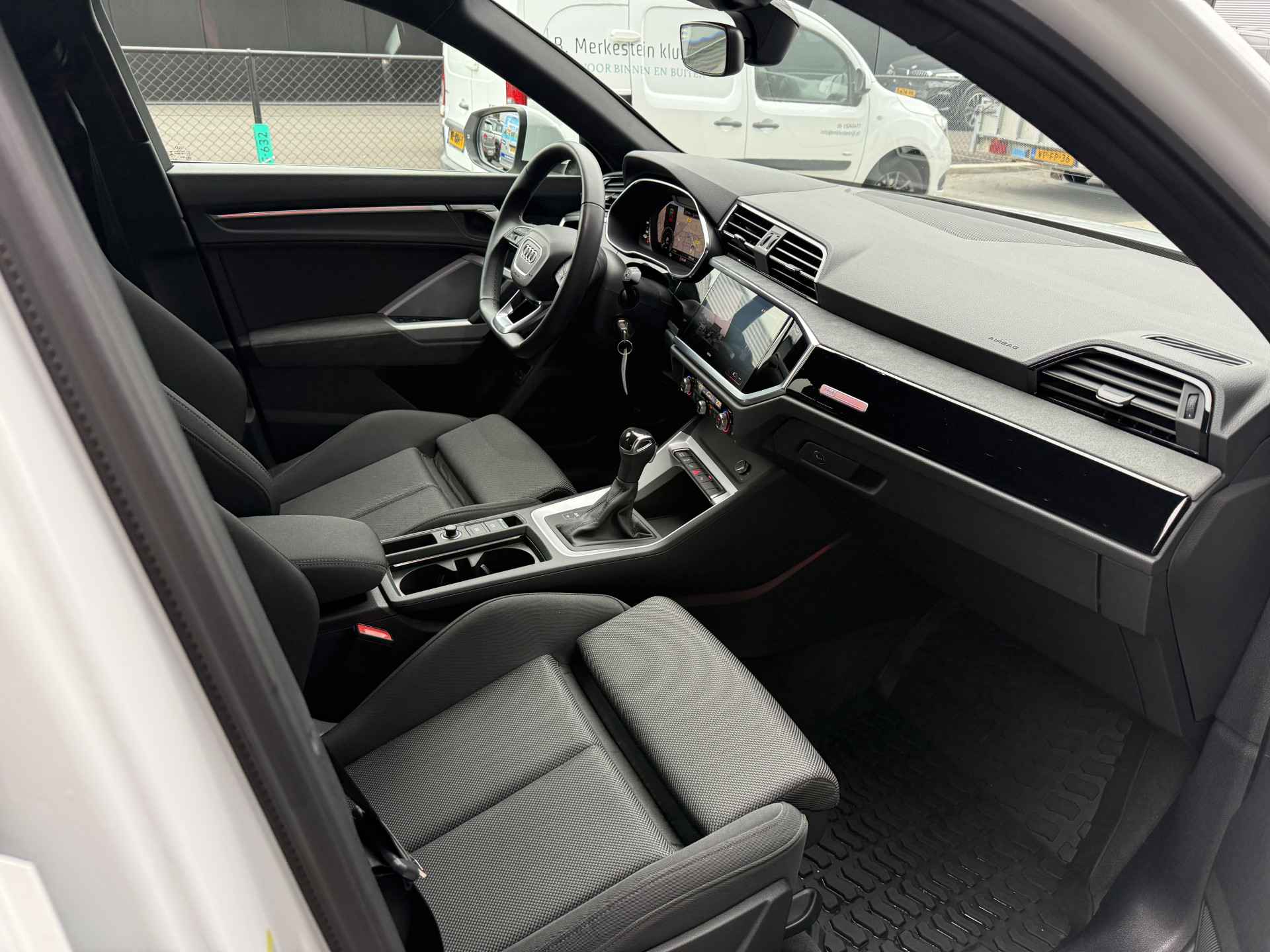 Schitterende Audi Q3 Sportback 45TFSI e S-Line voorzien van veel mooie opties zoals: Elektrisch wegklapbare trekhaak (TREKGEWICHT 1400KG), achteruitrijcamera, navigatie, LED verlichting, LED sfeer interieur verlichting, Virtuele cockpit, sportstuur, cruise control, stoelverwarming, 19 inch licht metalen velgen op All Season banden, etc..