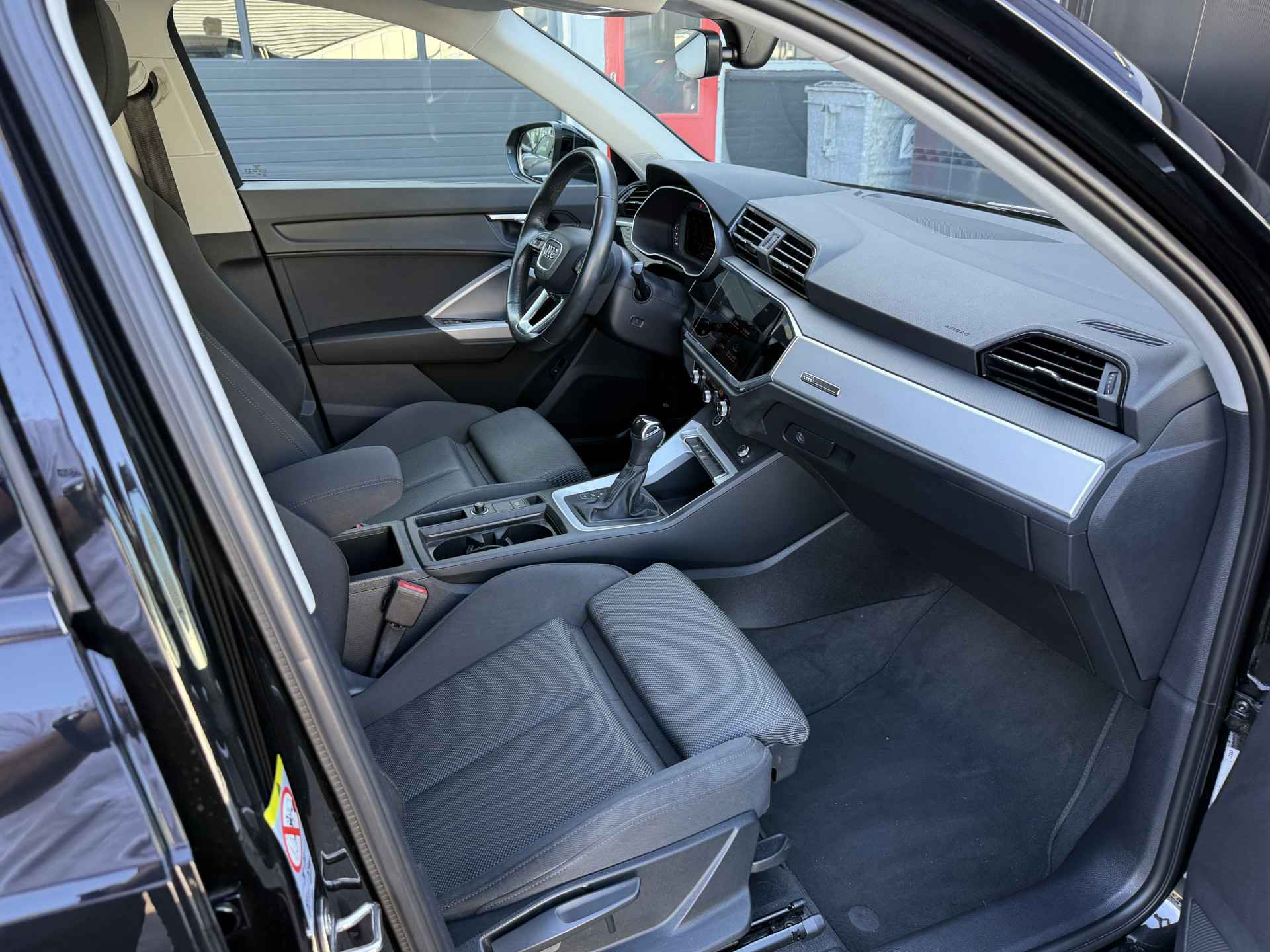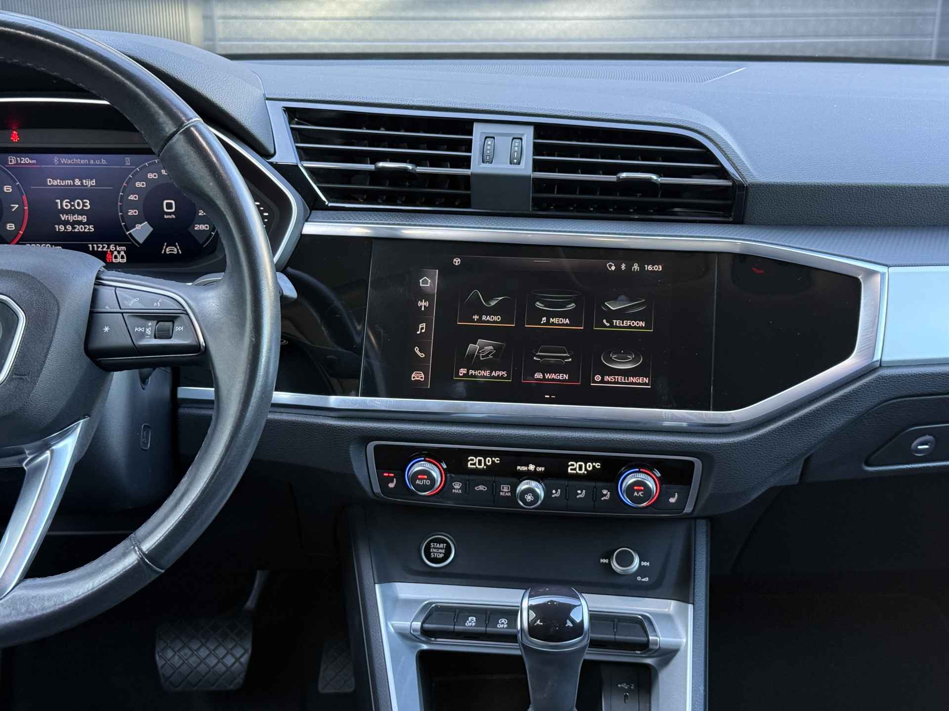 Schitterende Audi Q3 35 TFSI S-Line met Black Optic pakket en 20 inch licht metalen velgen met pas 28.360 KM gereden. De Q3 is volledig Audi dealer onderhouden.