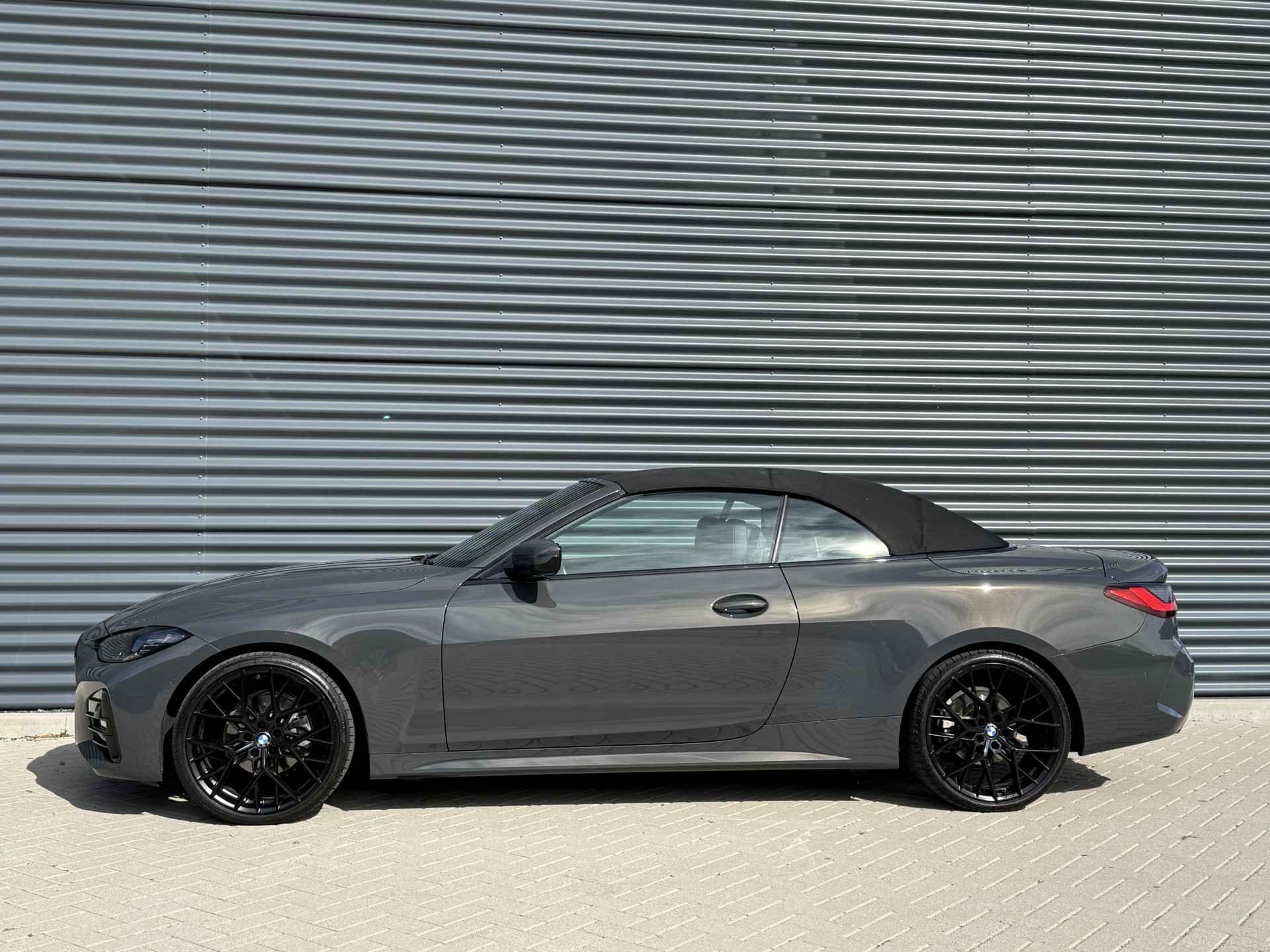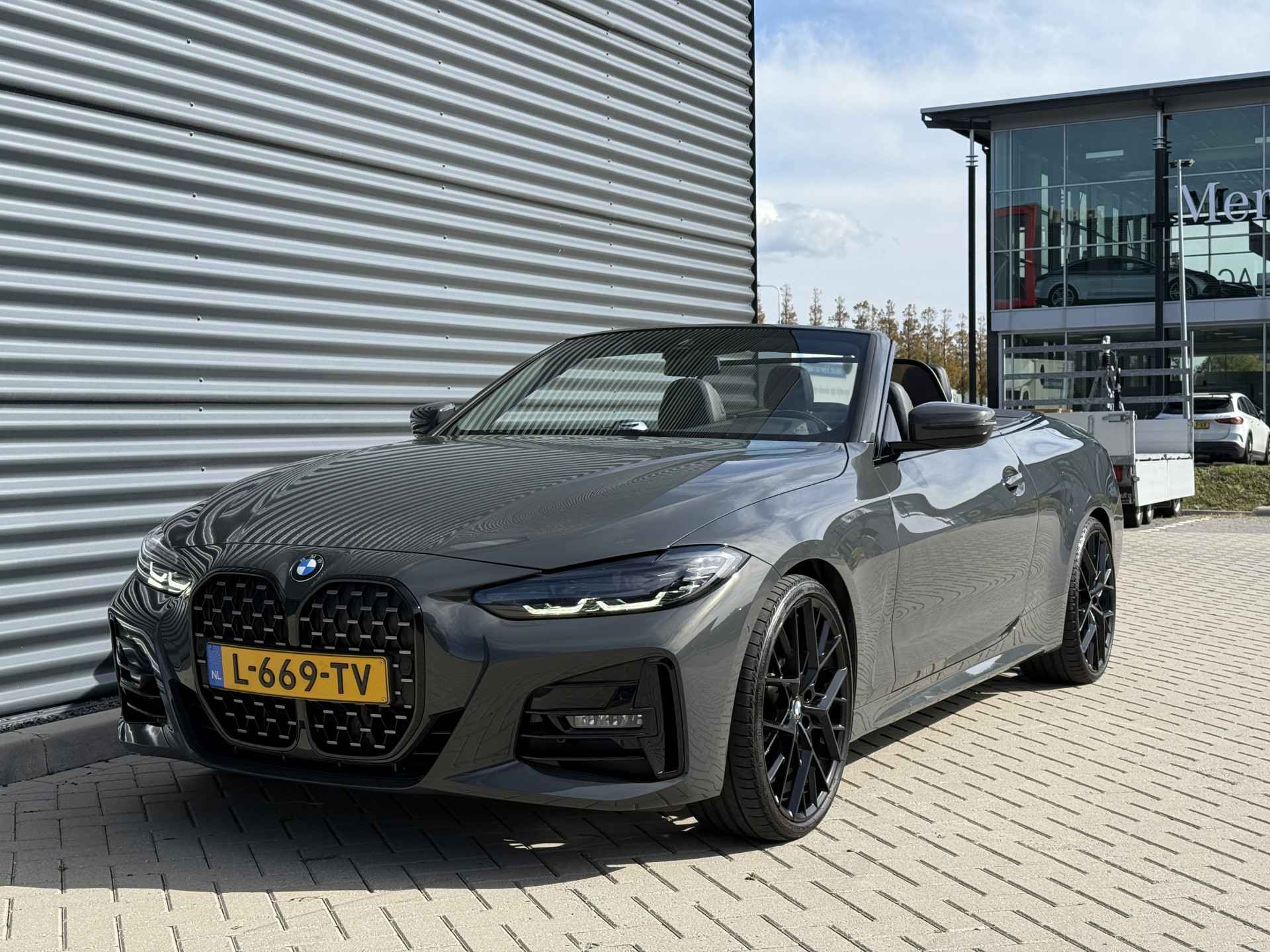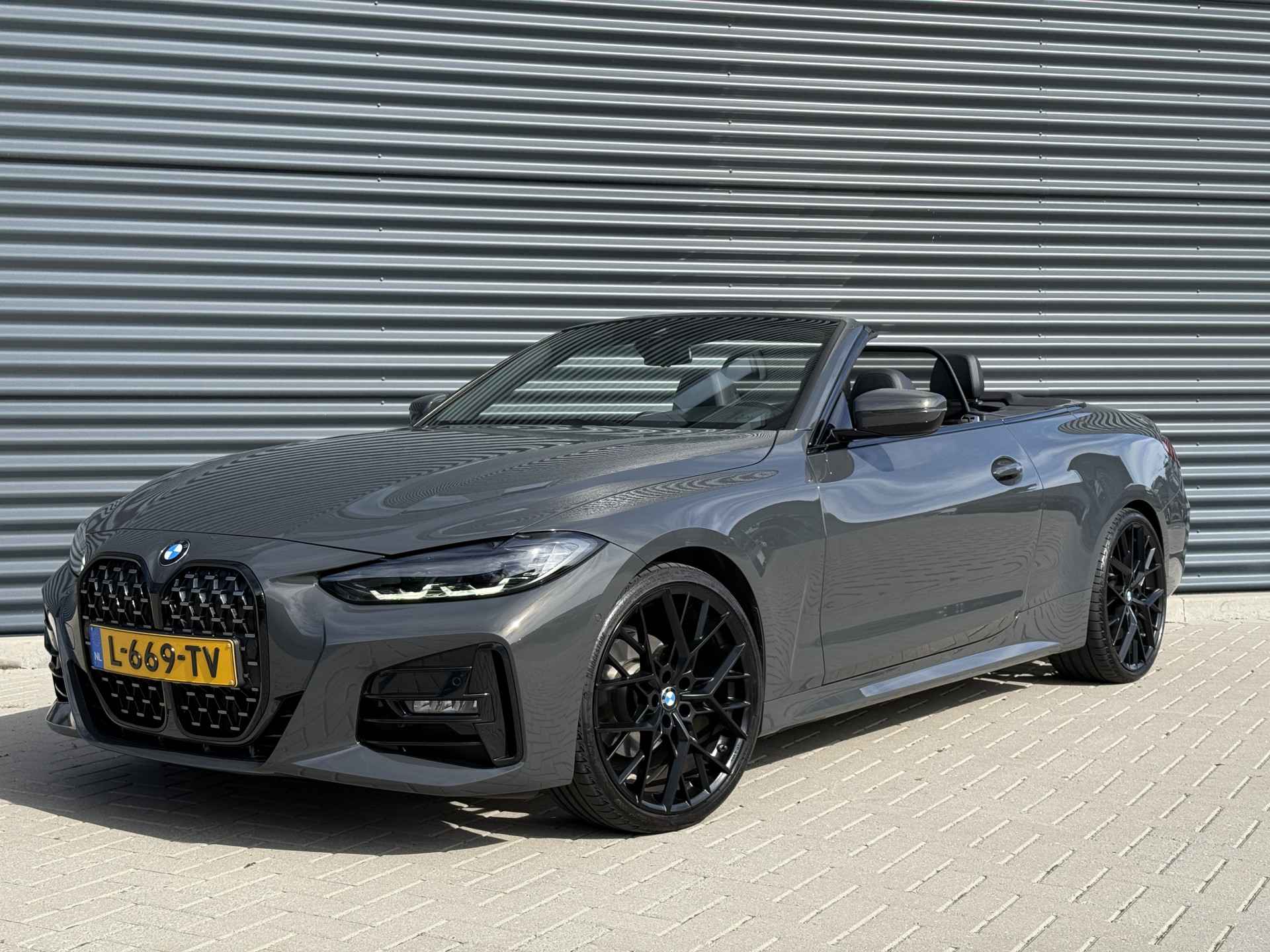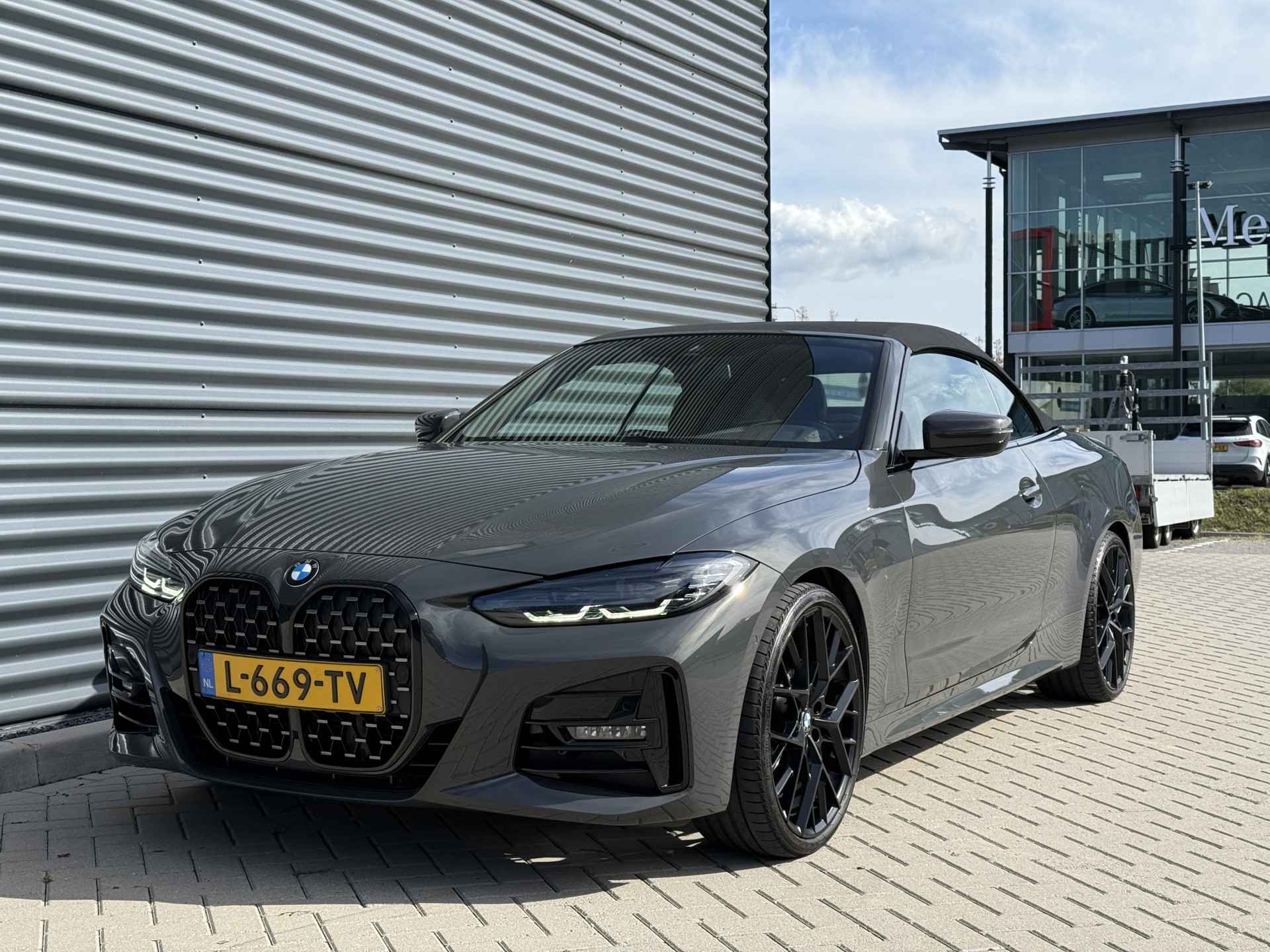 Schitterende BMW 420i Cabriolet M-Sport Shadow in Dravit grijs metallic met zwarte 20 inch licht metalen velgen. Dit betreft een origineel Nederlands BMW dealer geleverde en onderhouden auto. Nationale Autopas certificaat en volledige BMW dealer onderhoudshistorie aanwezig.