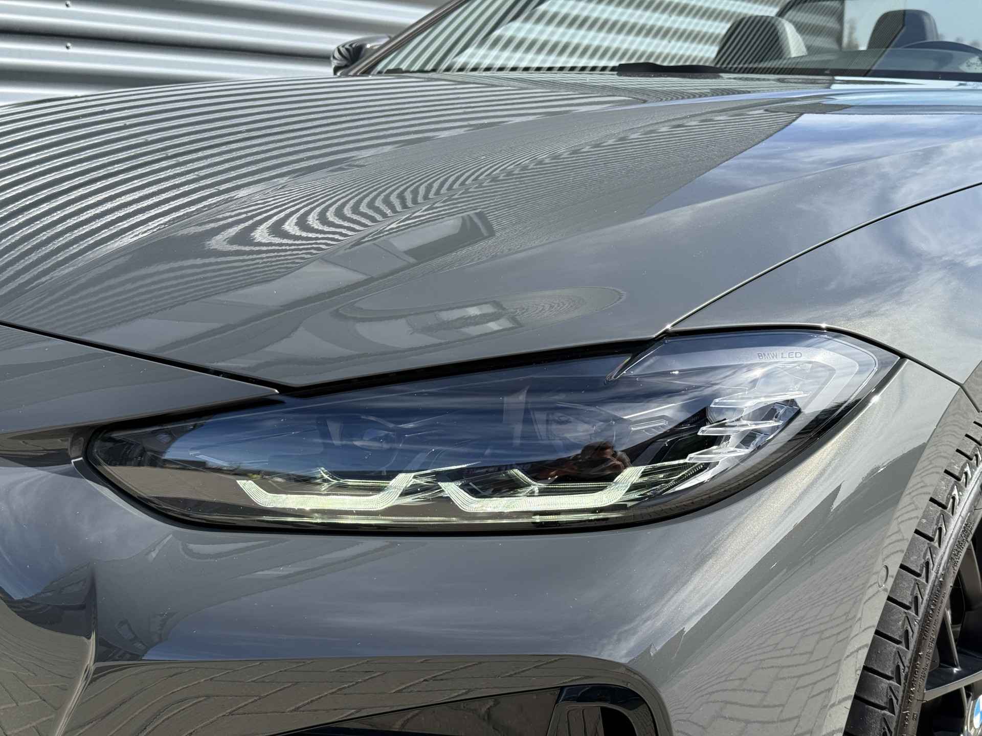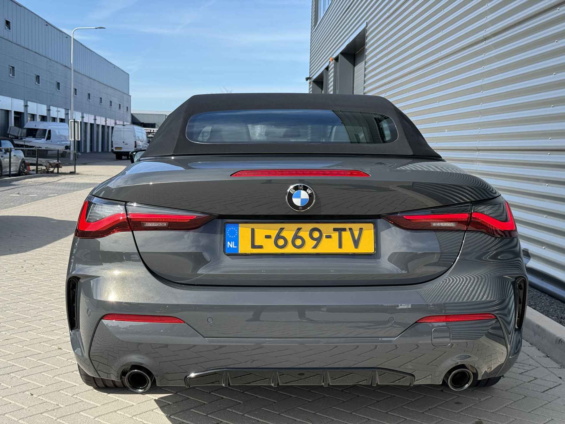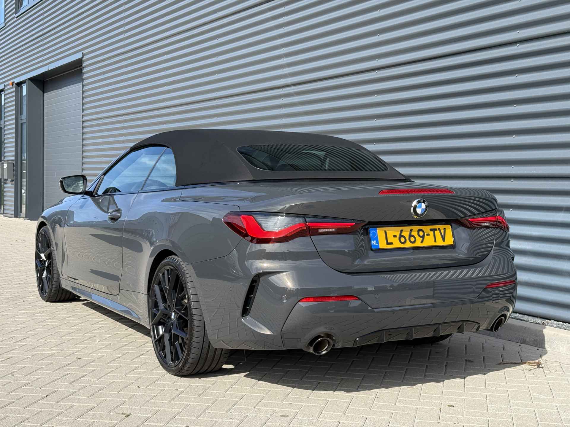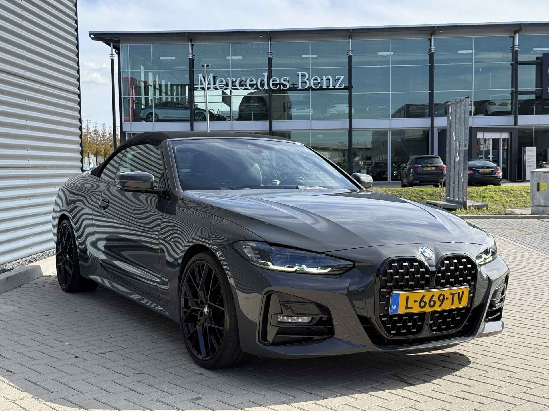 Schitterende BMW 420i Cabriolet M-Sport Shadow in Dravit grijs metallic met zwarte 20 inch licht metalen velgen. Dit betreft een origineel Nederlands BMW dealer geleverde en onderhouden auto. Nationale Autopas certificaat en volledige BMW dealer onderhoudshistorie aanwezig.