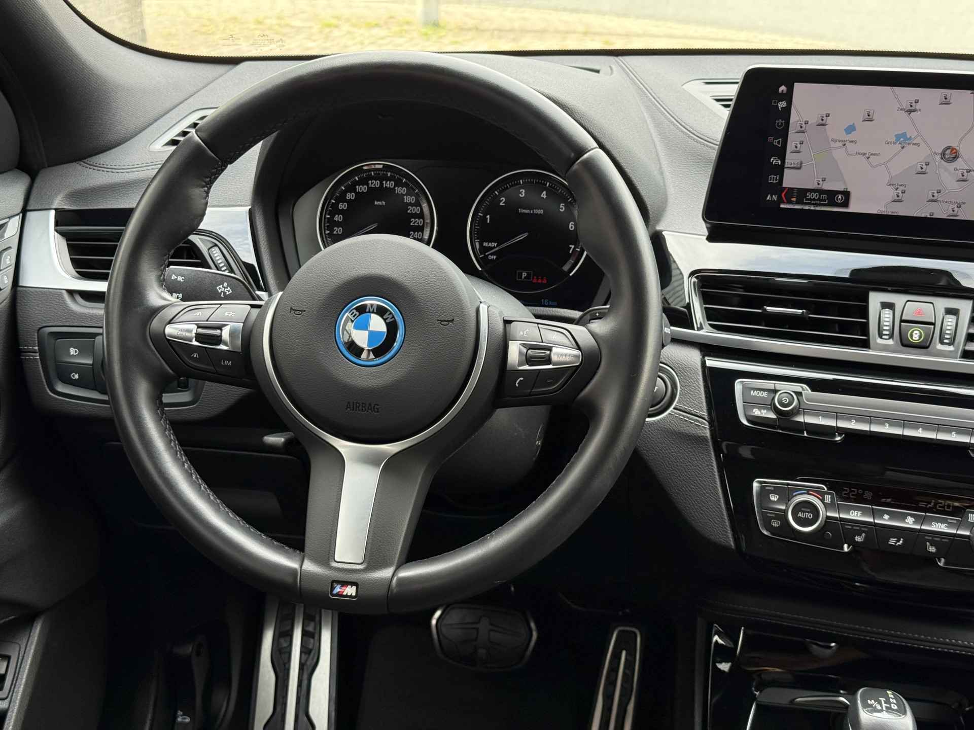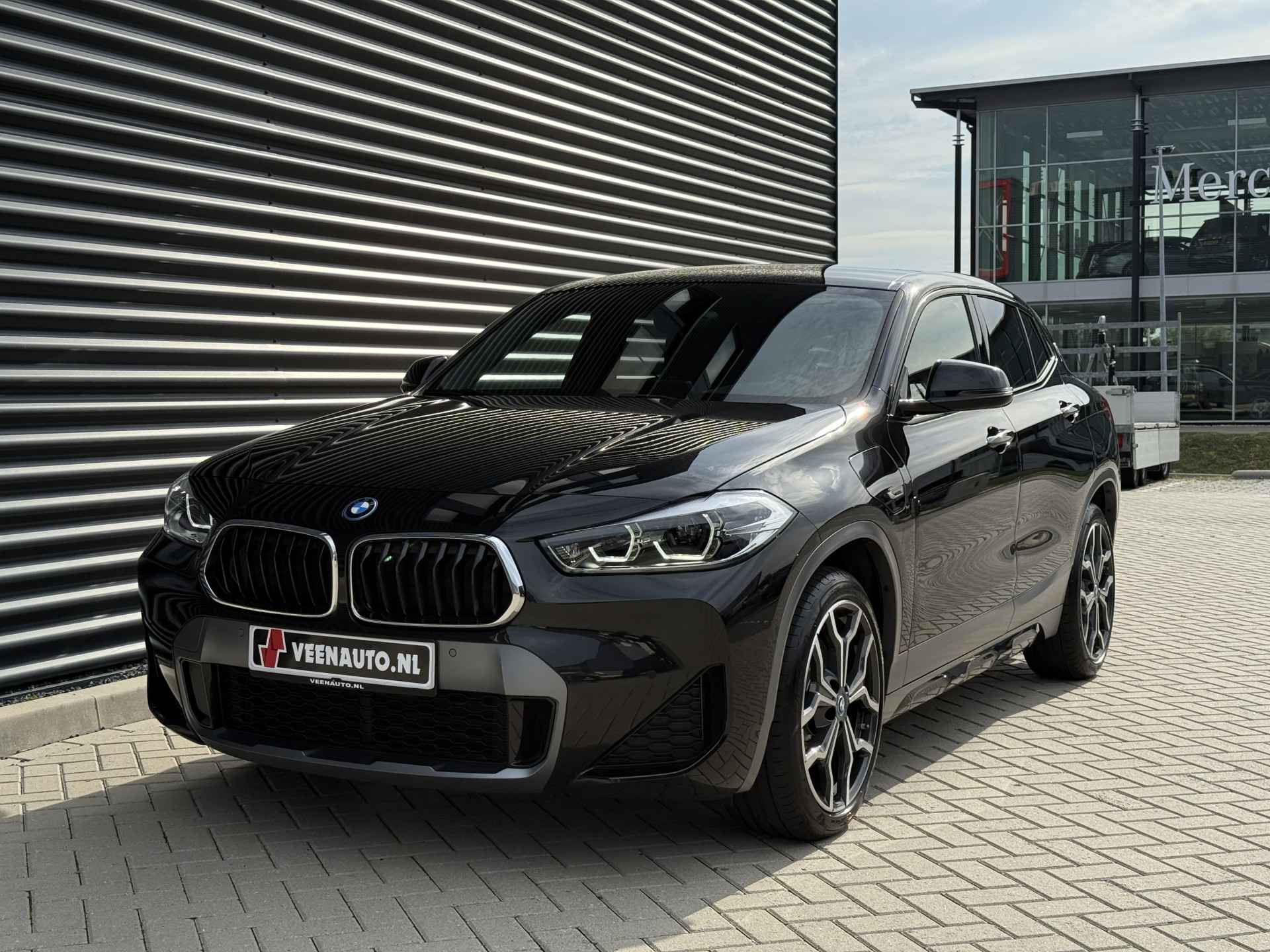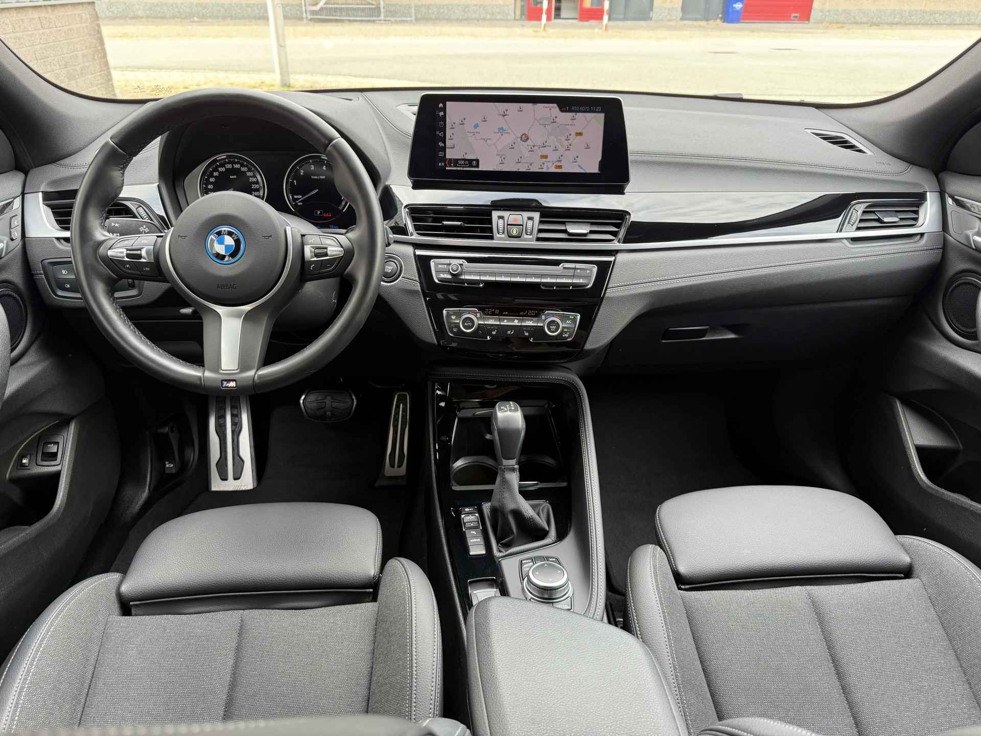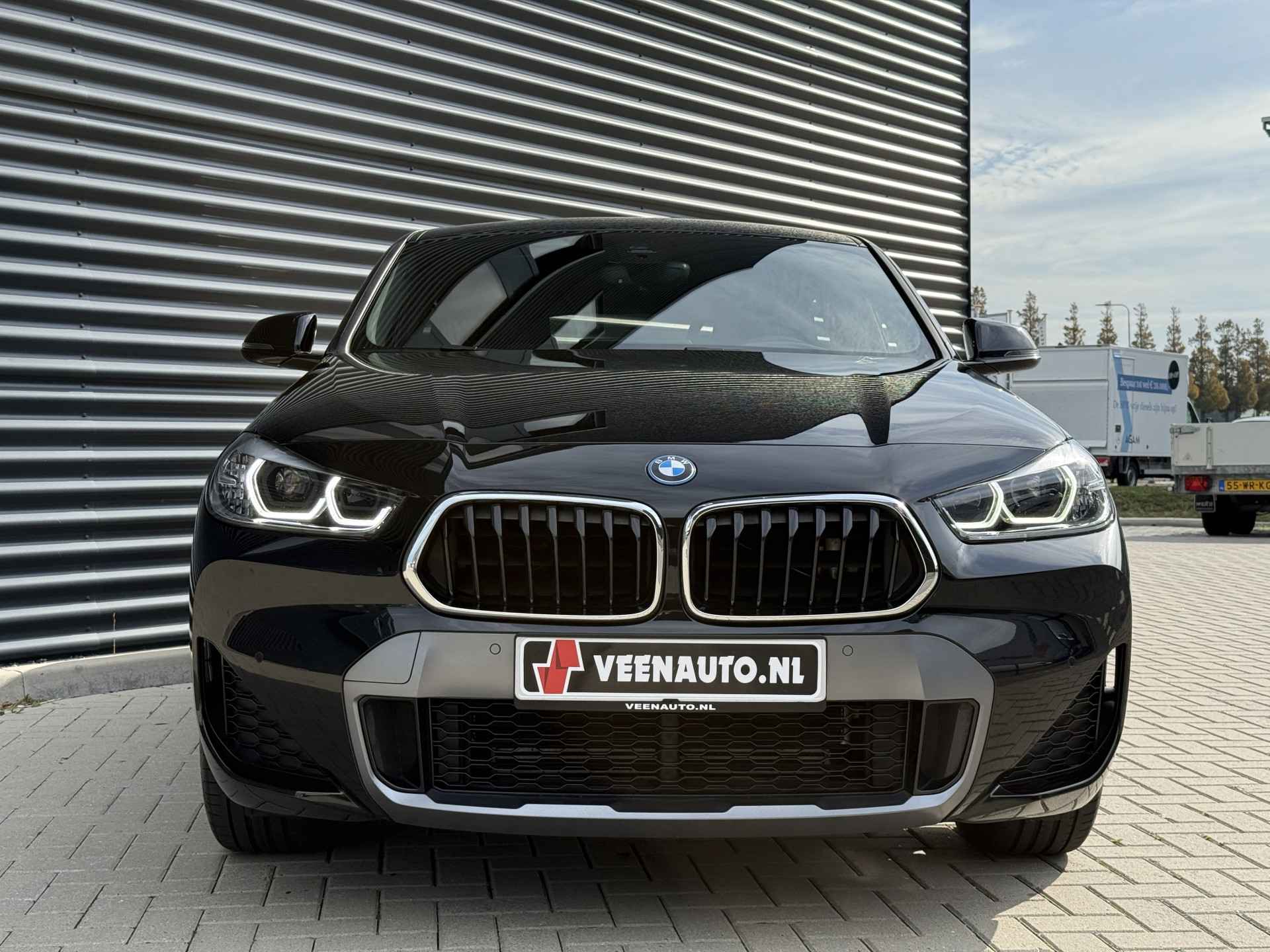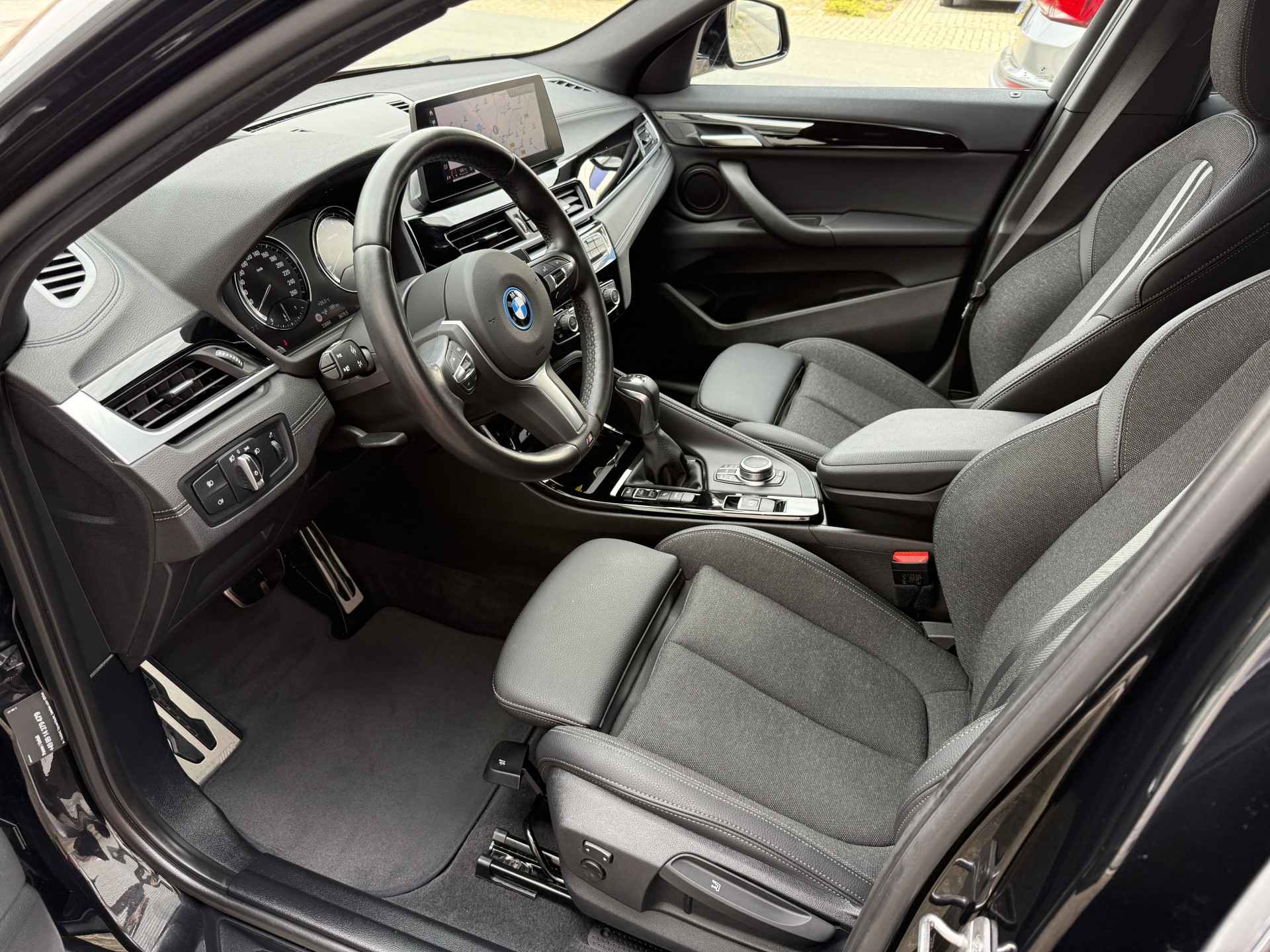 Schitterende BMW X2 xDrive25e M-Sport Shadow in Sapphire Black metallic met 19 inch licht metalen velgen. De BMW beschikt over veel mooie opties zoals: achteruitrijcamera, keyless entry and go, Head Up display, half lederen bekleding, leder dashboard, stoelverwarming, sport-comfort stoelen met lende steun verstelling, adaptieve cruise control, navigatie, parkeersensoren voor + achter met parkeer assistent, LED sfeer interieur verlichting, etc..