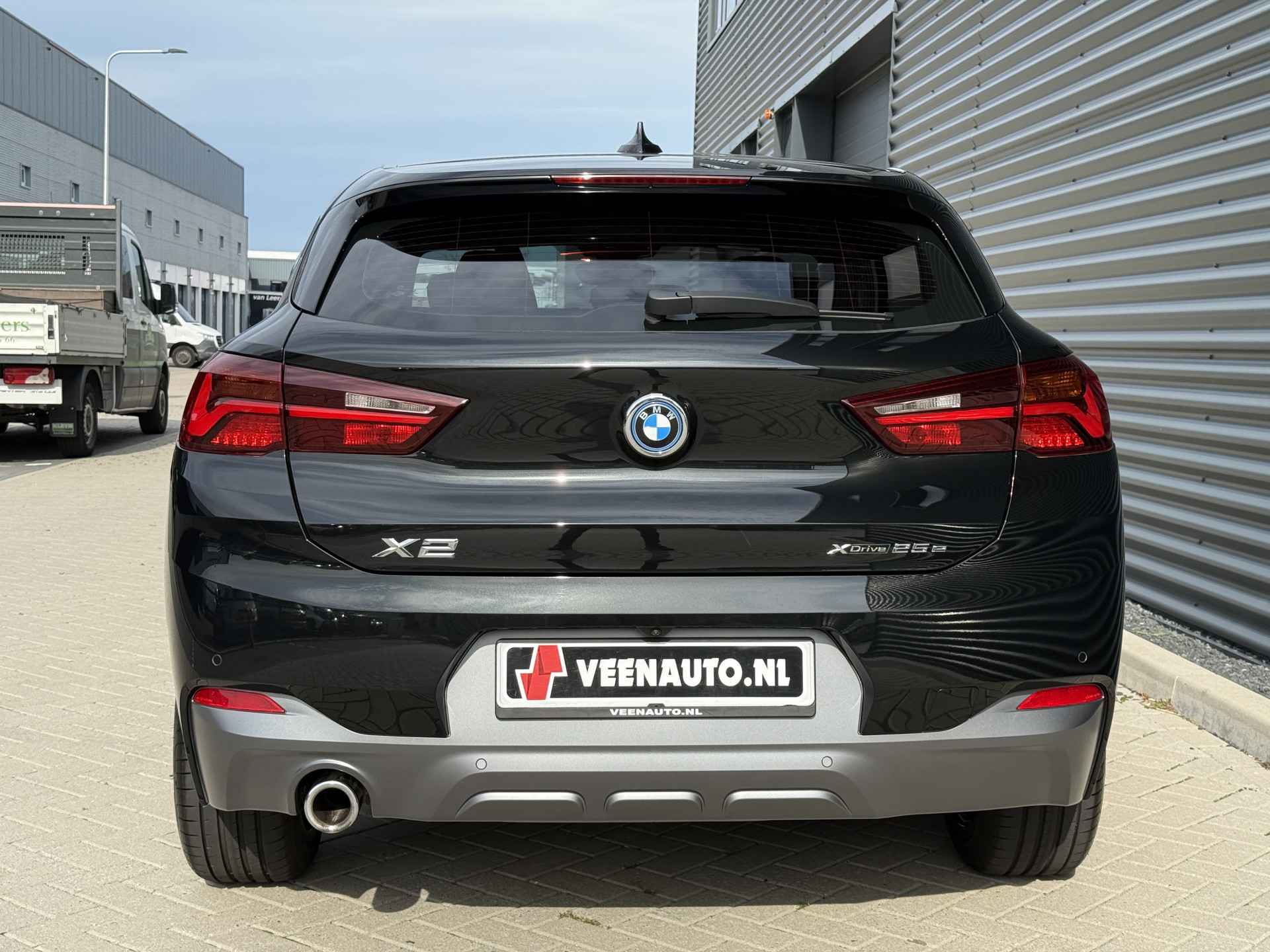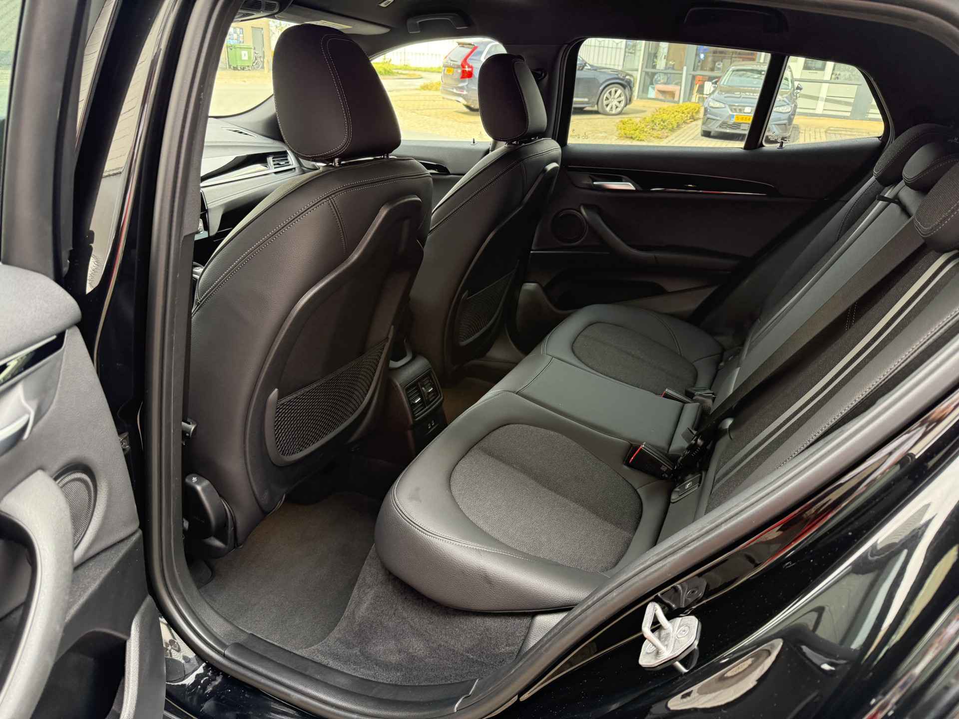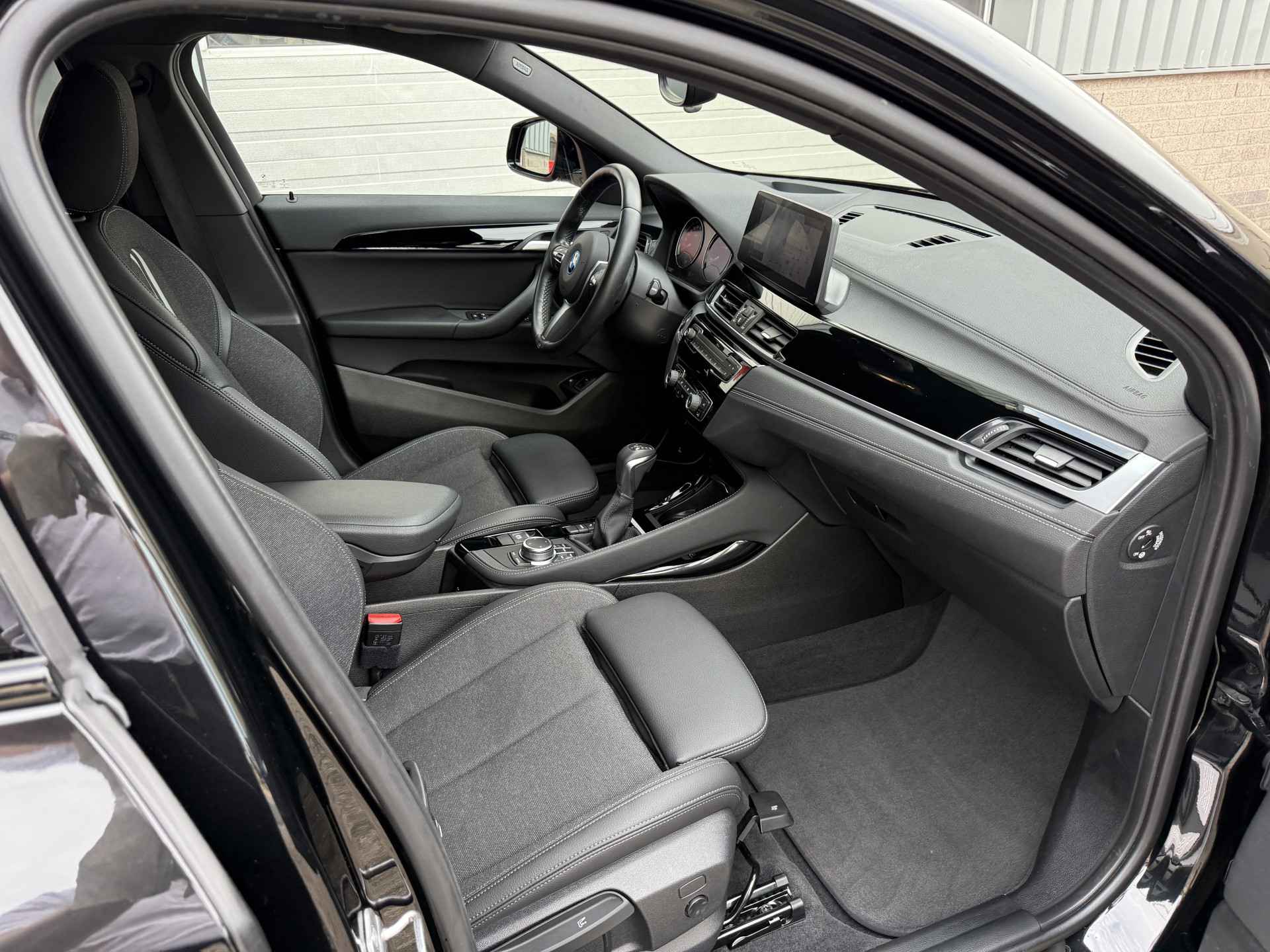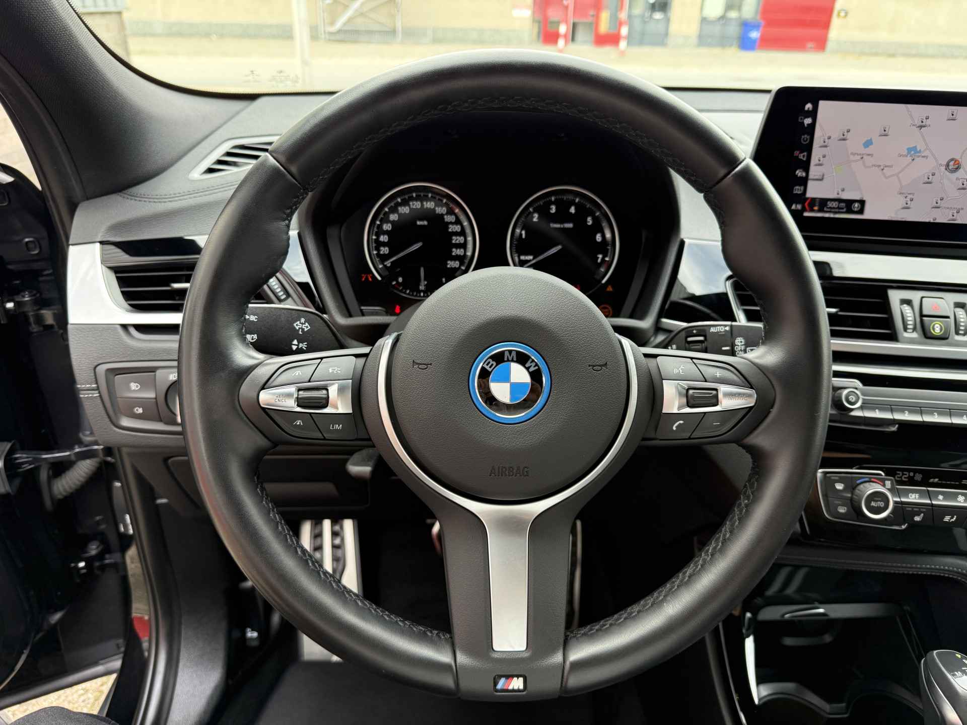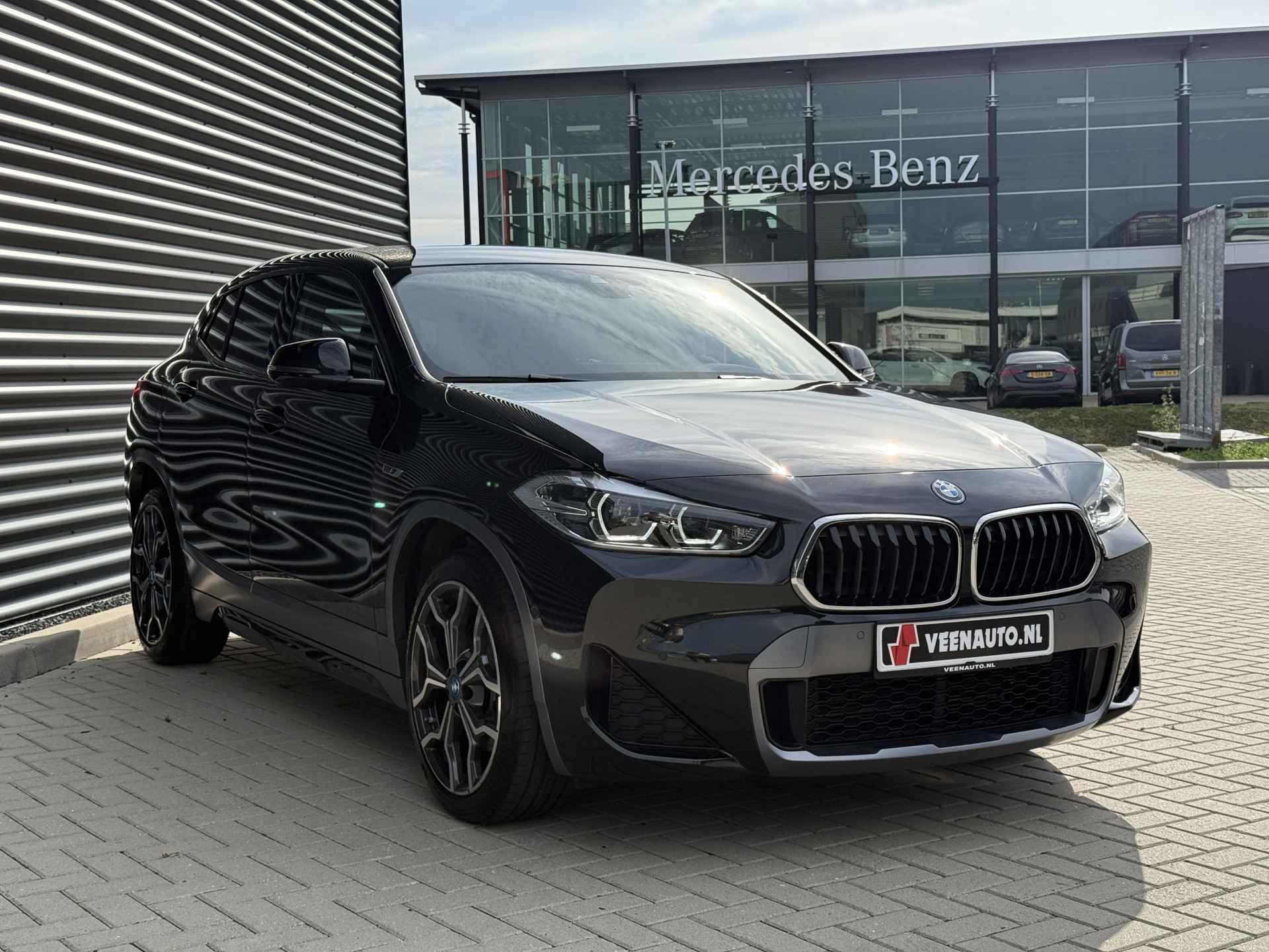 Schitterende BMW X2 xDrive25e M-Sport Shadow in Sapphire Black metallic met 19 inch licht metalen velgen. De BMW beschikt over veel mooie opties zoals: achteruitrijcamera, keyless entry and go, Head Up display, half lederen bekleding, leder dashboard, stoelverwarming, sport-comfort stoelen met lende steun verstelling, adaptieve cruise control, navigatie, parkeersensoren voor + achter met parkeer assistent, LED sfeer interieur verlichting, etc..