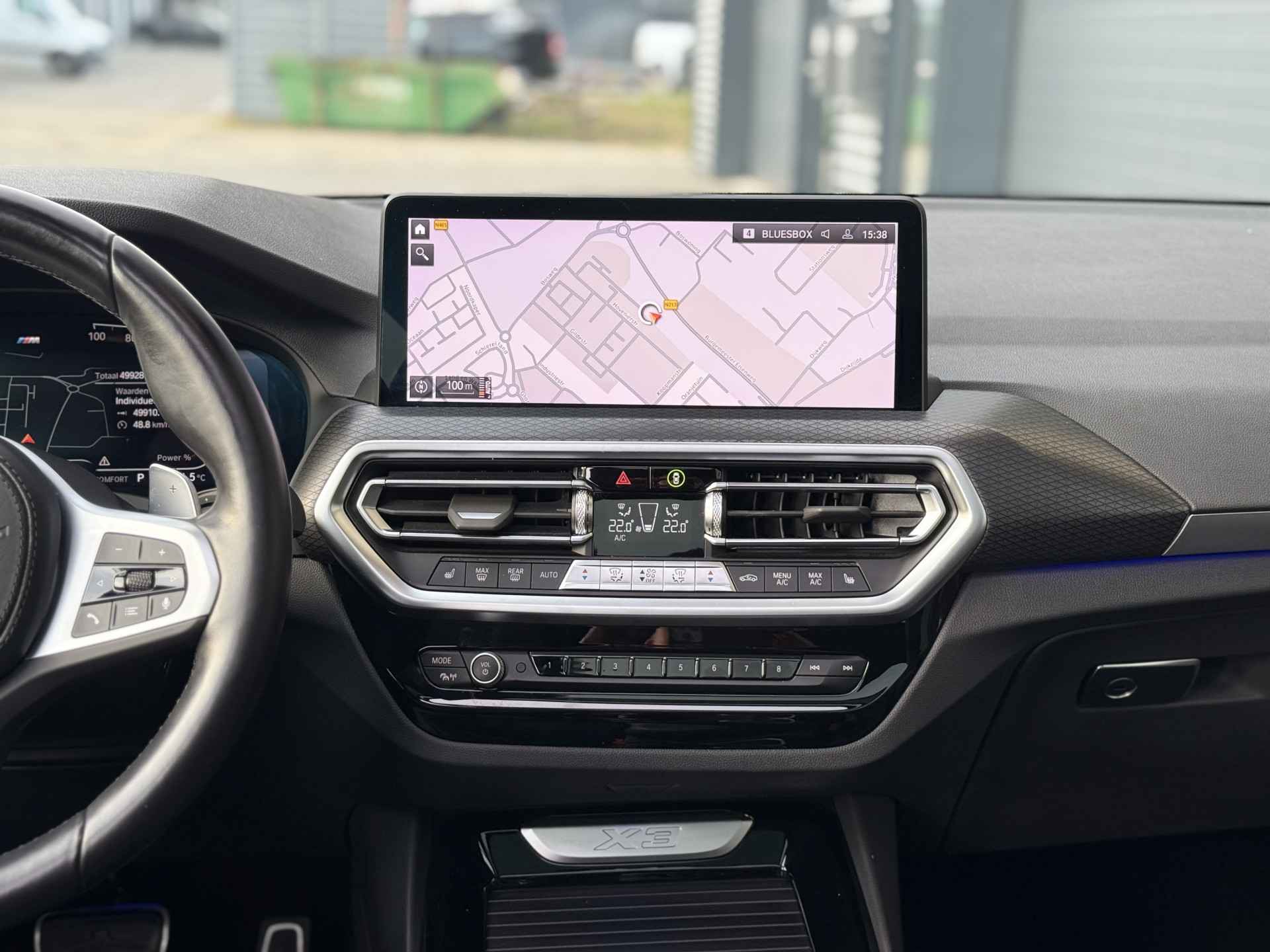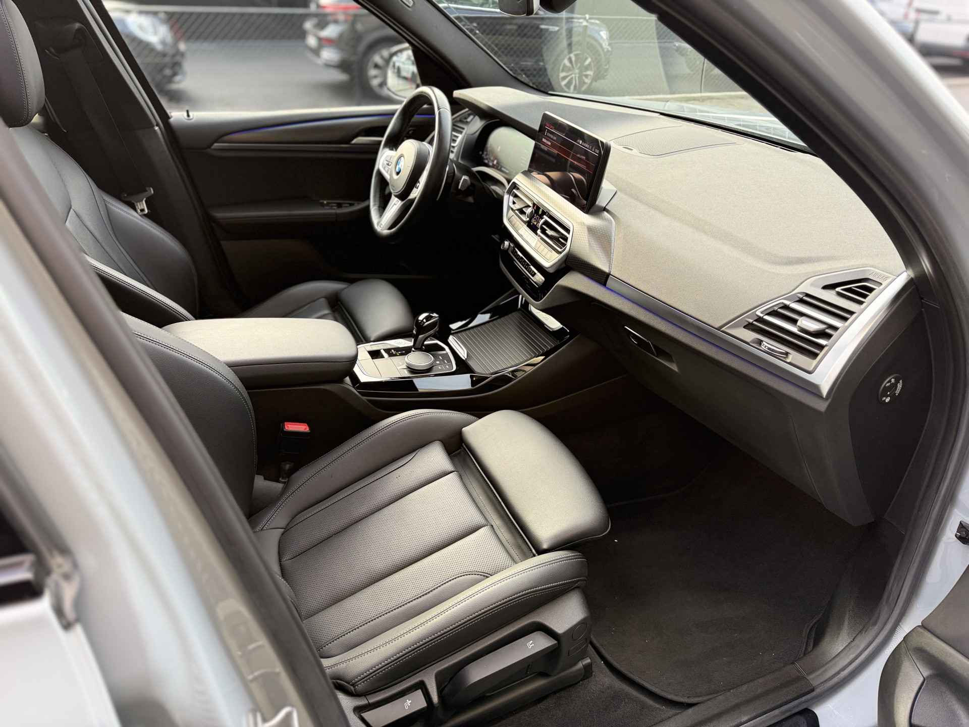 Schitterende BMW X3 xDrive 20i M-Sport Shadow in Brooklyn Grau met hoogglans zwarte 20inch licht metalen velgen. De BWM is voorzien van veel mooie opties zoals: Panorama dak, elektrisch wegklapbare trekhaak (TREKGEWICHT 2000KG), achteruitrijcamera, navigatie, Apple Carplay/Android Auto, Audio Hifi Systeem, lederen bekleding, LED koplampen, LED sfeer interieur verlichting, stoel en stuur verwarming, keyless entry, cruise control, etc..