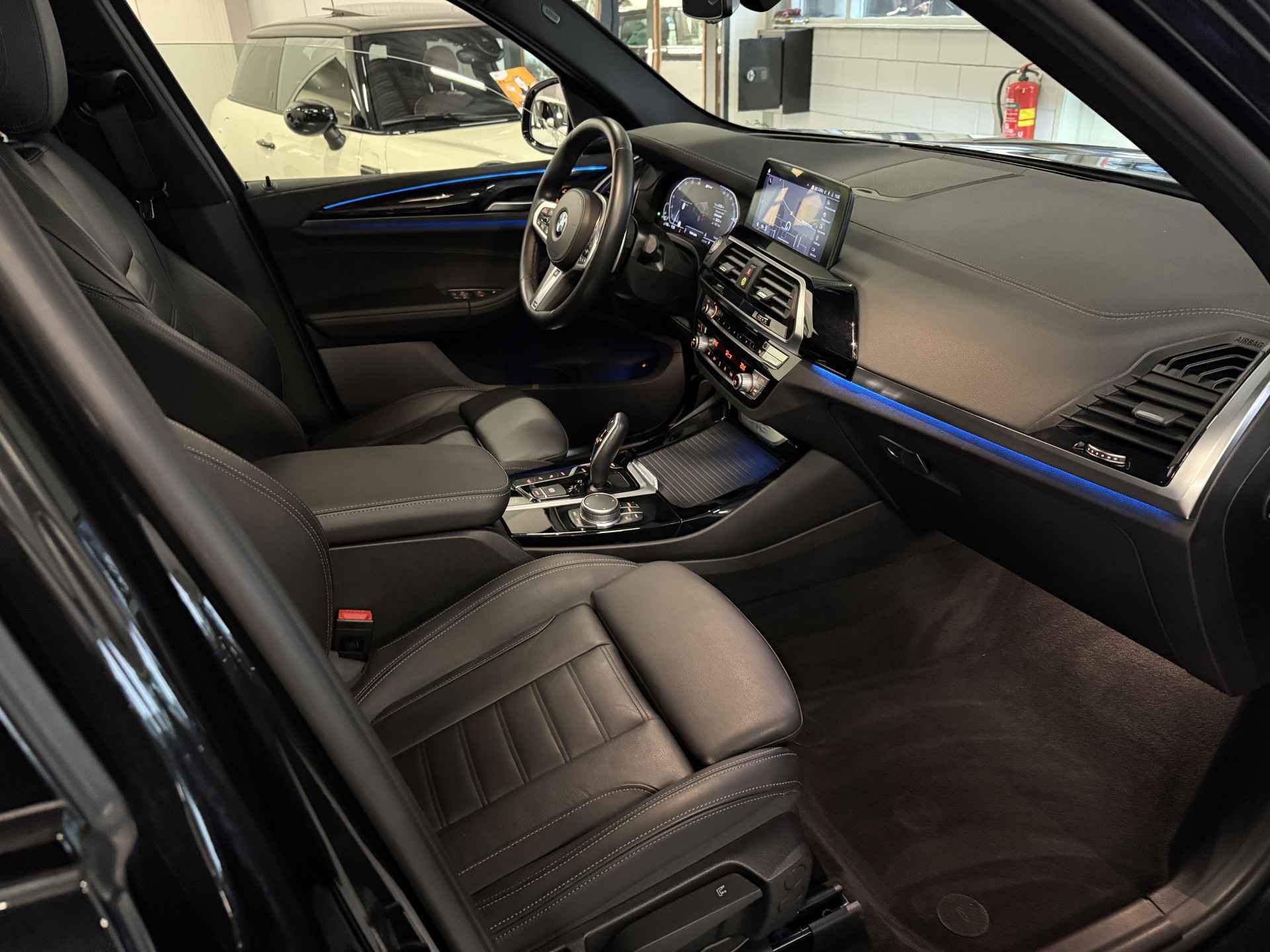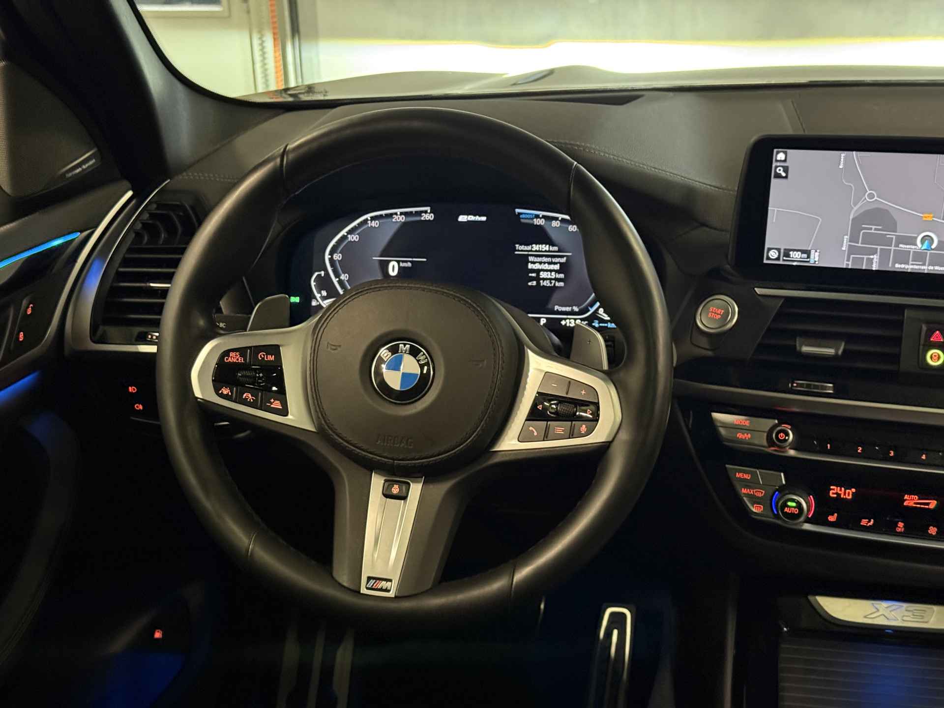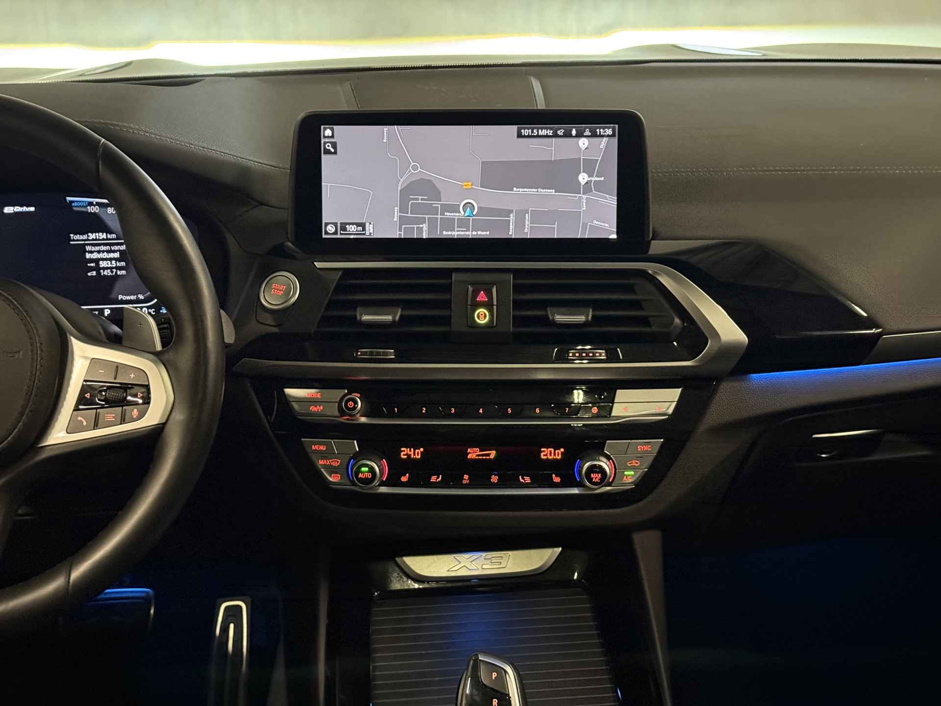 Schitterende BMW X3 xDrive30e M-Sport Shadow in Saphir Black metallic met 20 inch M-Sport velgen. De BMW is zeer compleet uitgevoerd en beschikt over veel mooie opties die BMW te bieden heeft zoals: Panorama dak, elektrisch wegklapbare trekhaak (TREKGEWICHT 2000kg), Head Up display, Harman Kardon Surround Audio, 360 Camera, adaptieve cruise control met stuurhulp, keyless entry and start, stoel verwarming voor + achter, stuurwielverwarming, leder dashboard, dodehoek detectie, sfeerverlichting interieur, Apple Carplay/Android Auto, virtuele cockpit, etc..