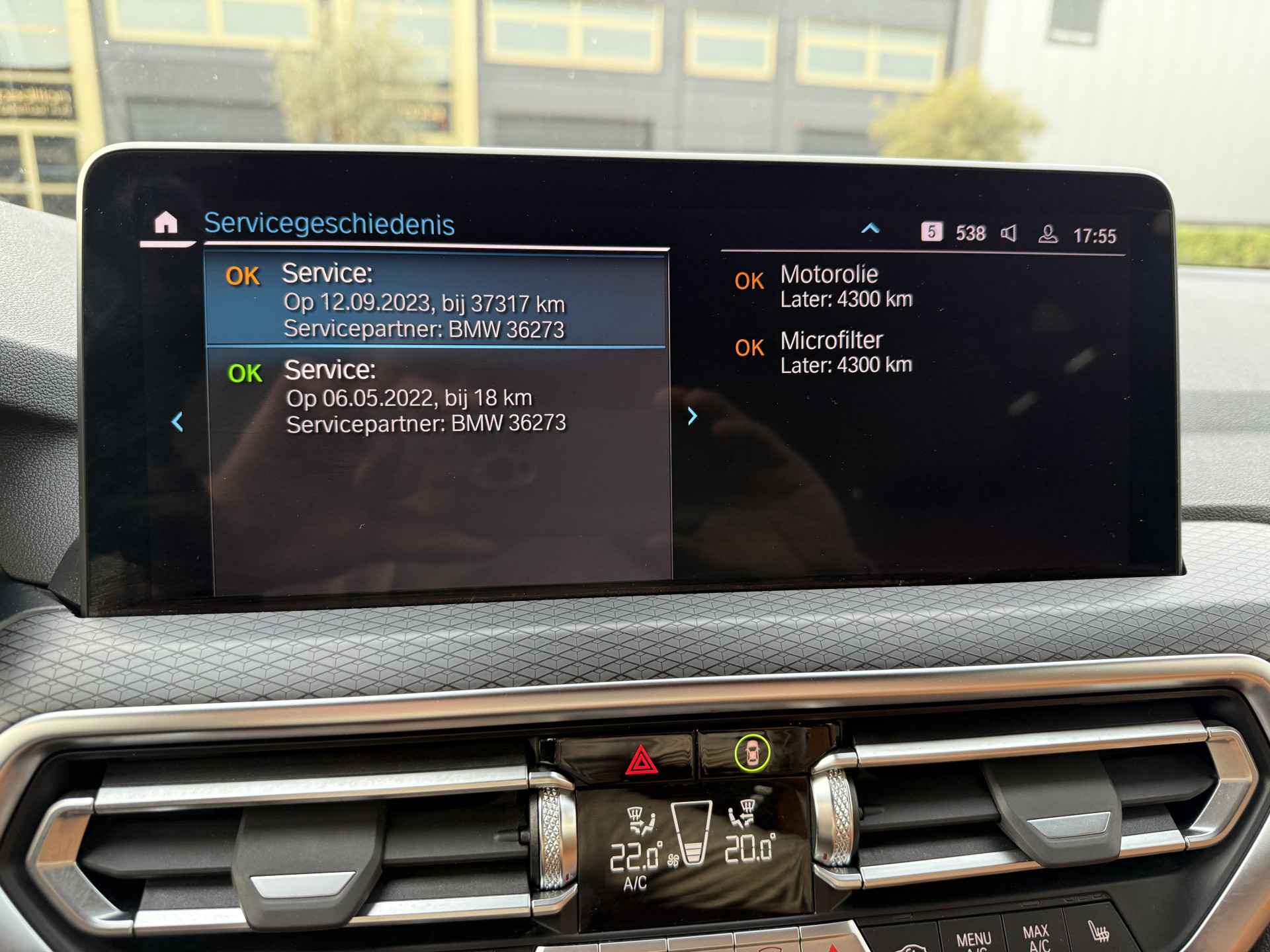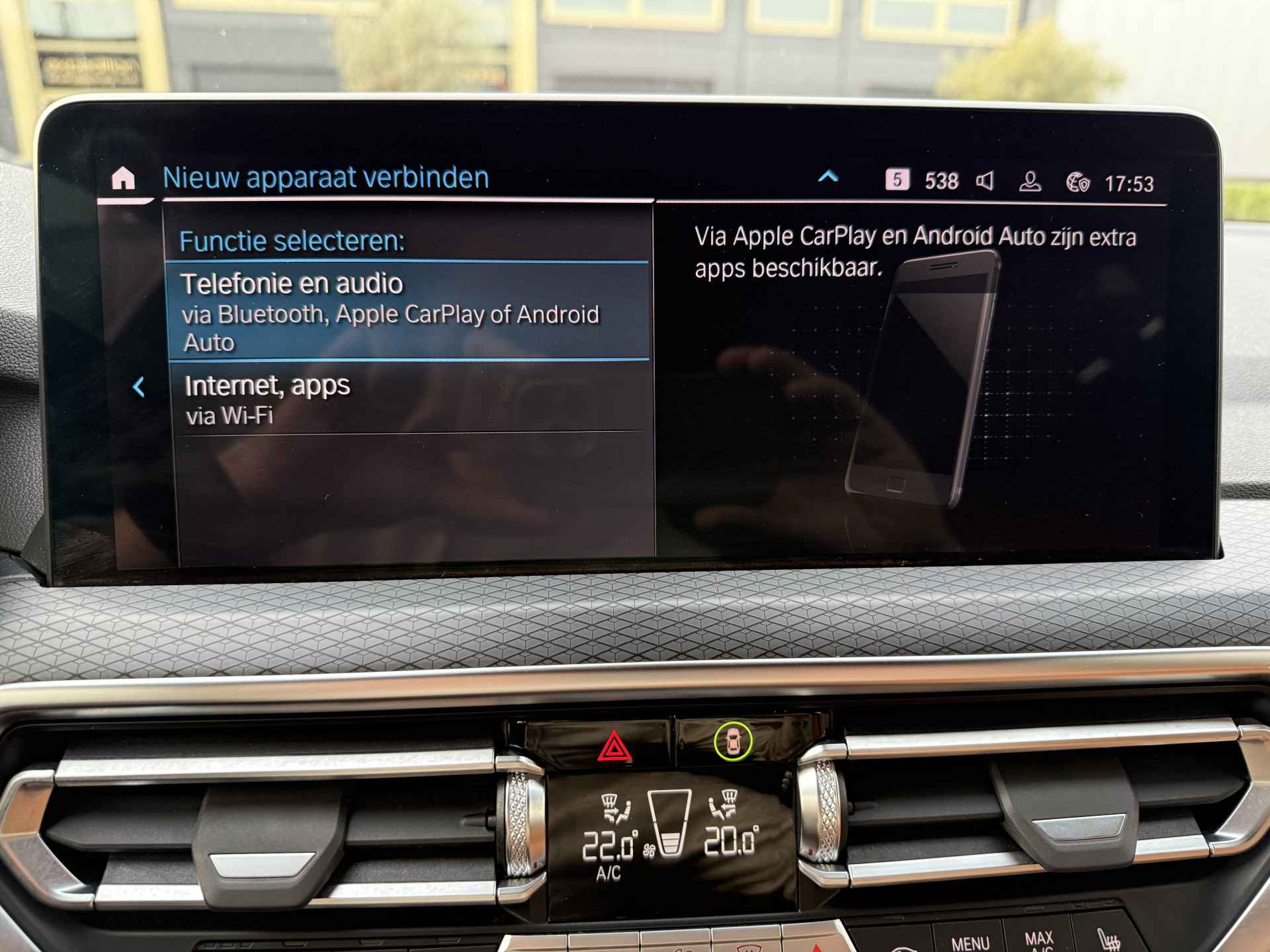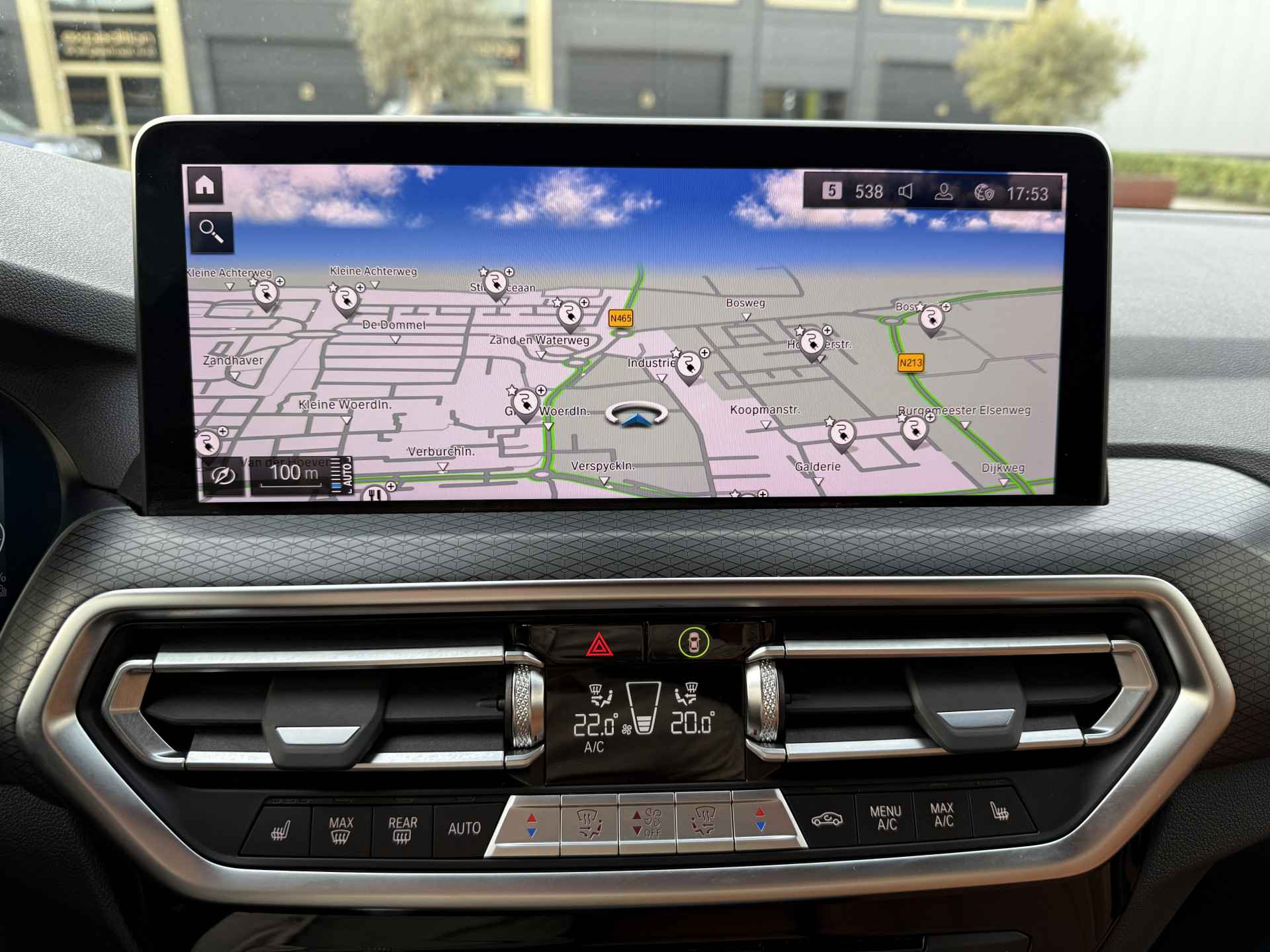 Schitterende BMW X3 xDrive30e M-Sport Shadow Plug Inn Hybrid. De BWM is voorzien van veel mooie opties zoals: Panorama dak, elektrisch wegklapbare trekhaak (TREKGEWICHT 200KG), 360 camera, Head Up display, navigatie, Apple Carplay/Android Auto, Audio Hifi Systeem, LED koplampen, stoelverwarming, keyless entry, cruise control, licht metalen velgen, elektrisch verstelbare stoel met memory, etc..