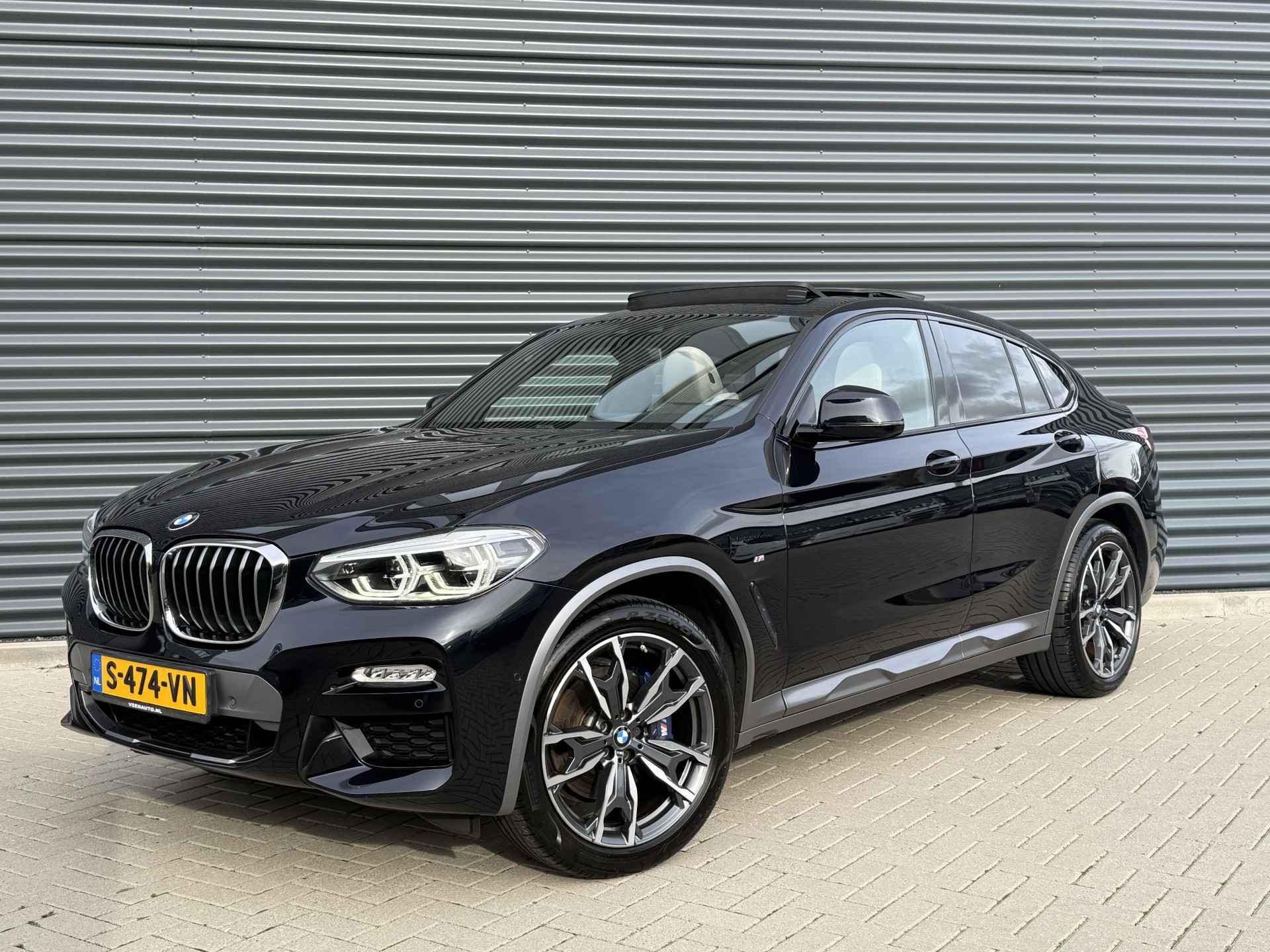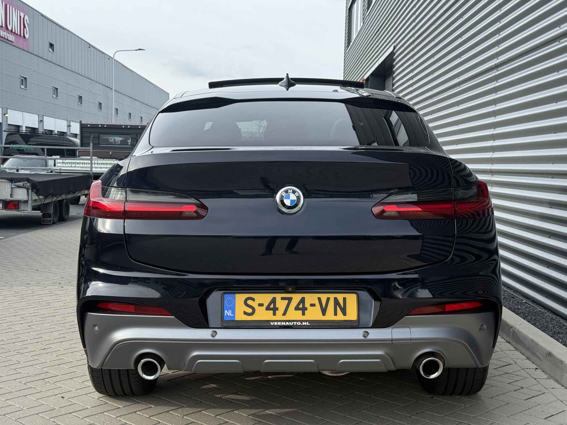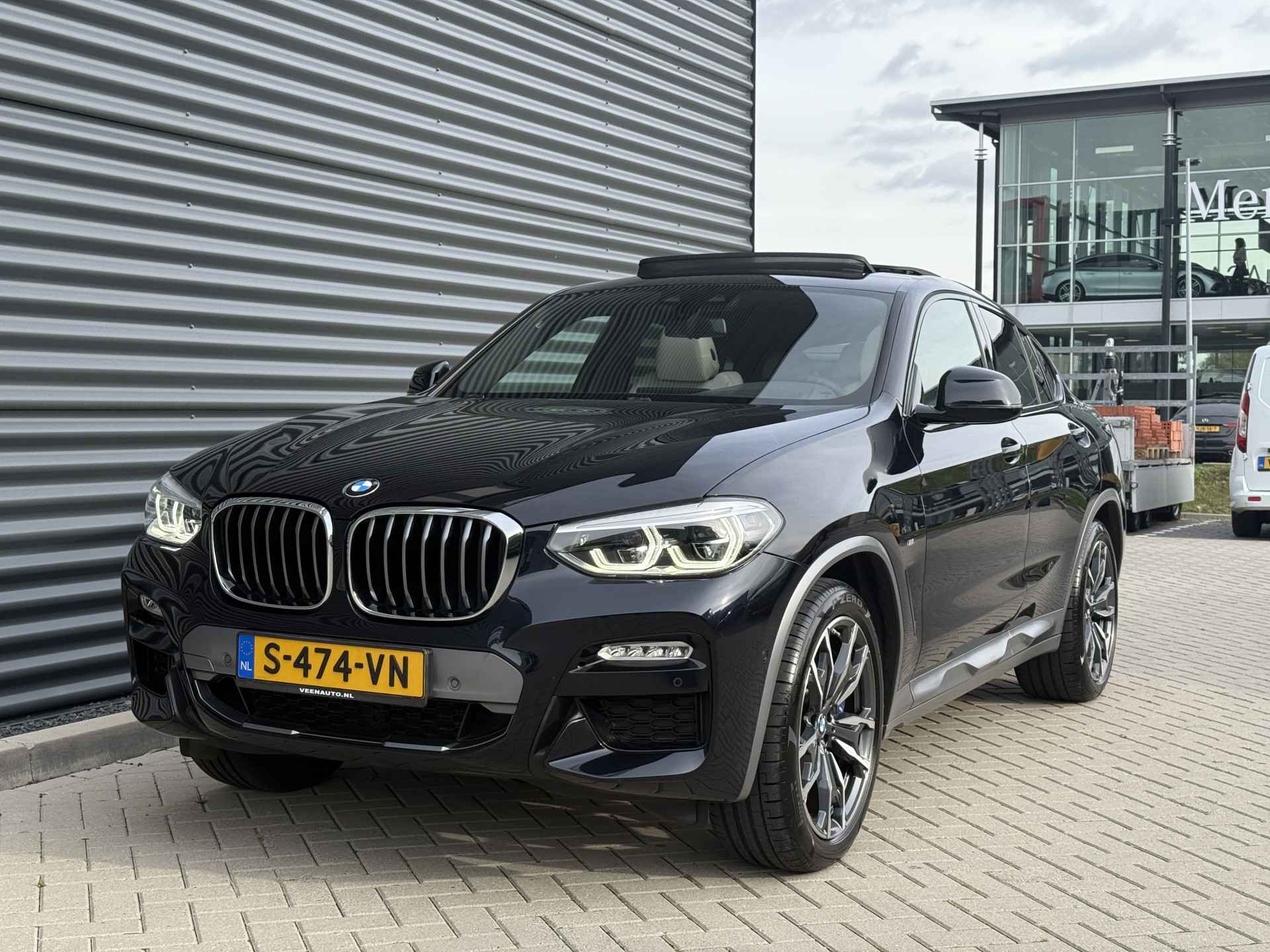 Schitterende BMW X4 xDrive30i M-Sport in Enigmatic Black metallic met lederen bekleding, 20 inch licht metalen velgen (op 4 nieuwe banden), elektrisch wegklapbare trekhaak (TREKGEWICHT 2400KG), Harman kardon Audio, achteruitrijcamera, Adaptief onderstel, head up display, navigatie, stoel en stuurverwarming, keyless entry and start, parkeersensoren voor + achter met parkeer assistent, LED verlichting, Ambiance sfeerverlichting interieur, etc..