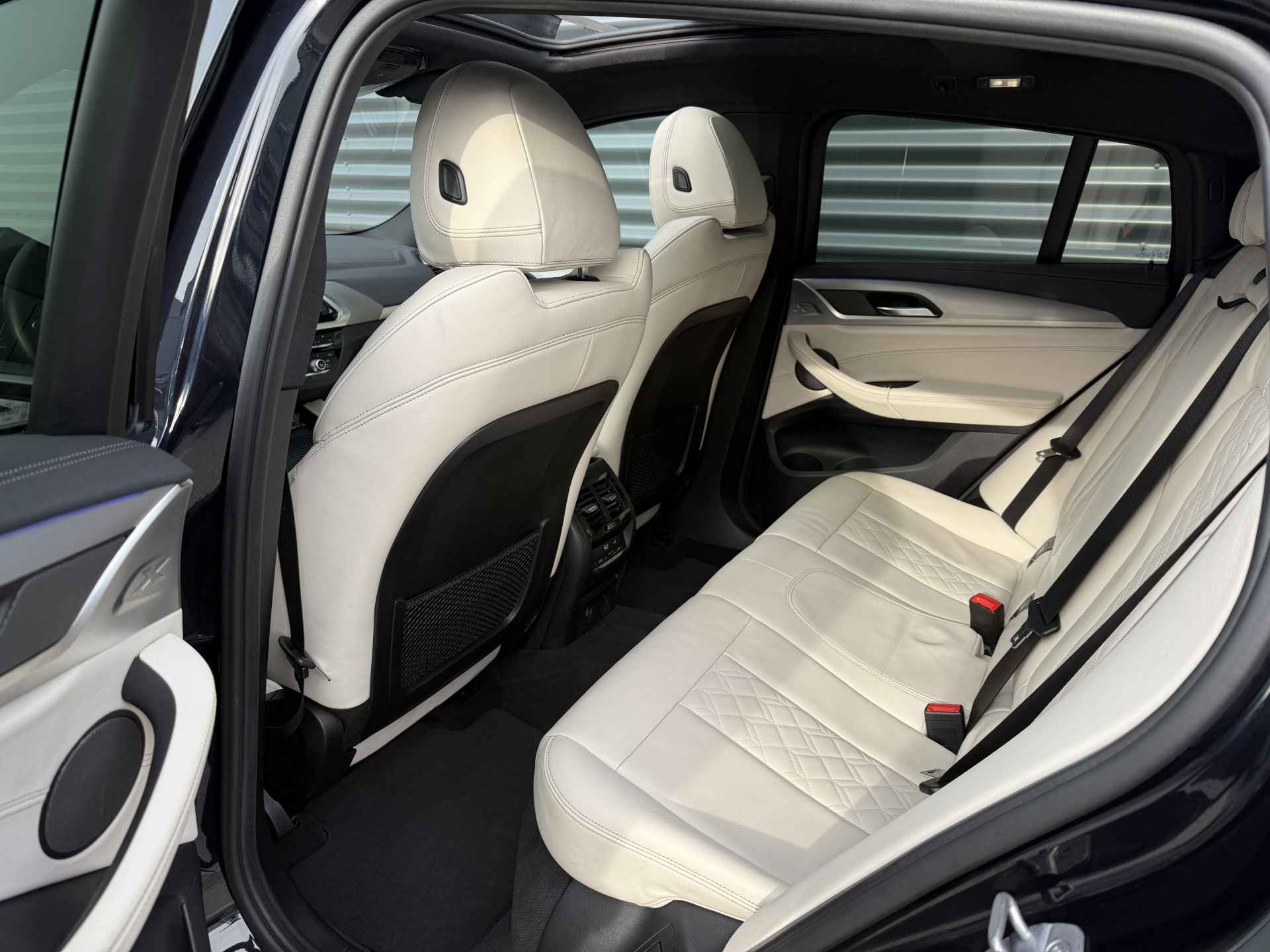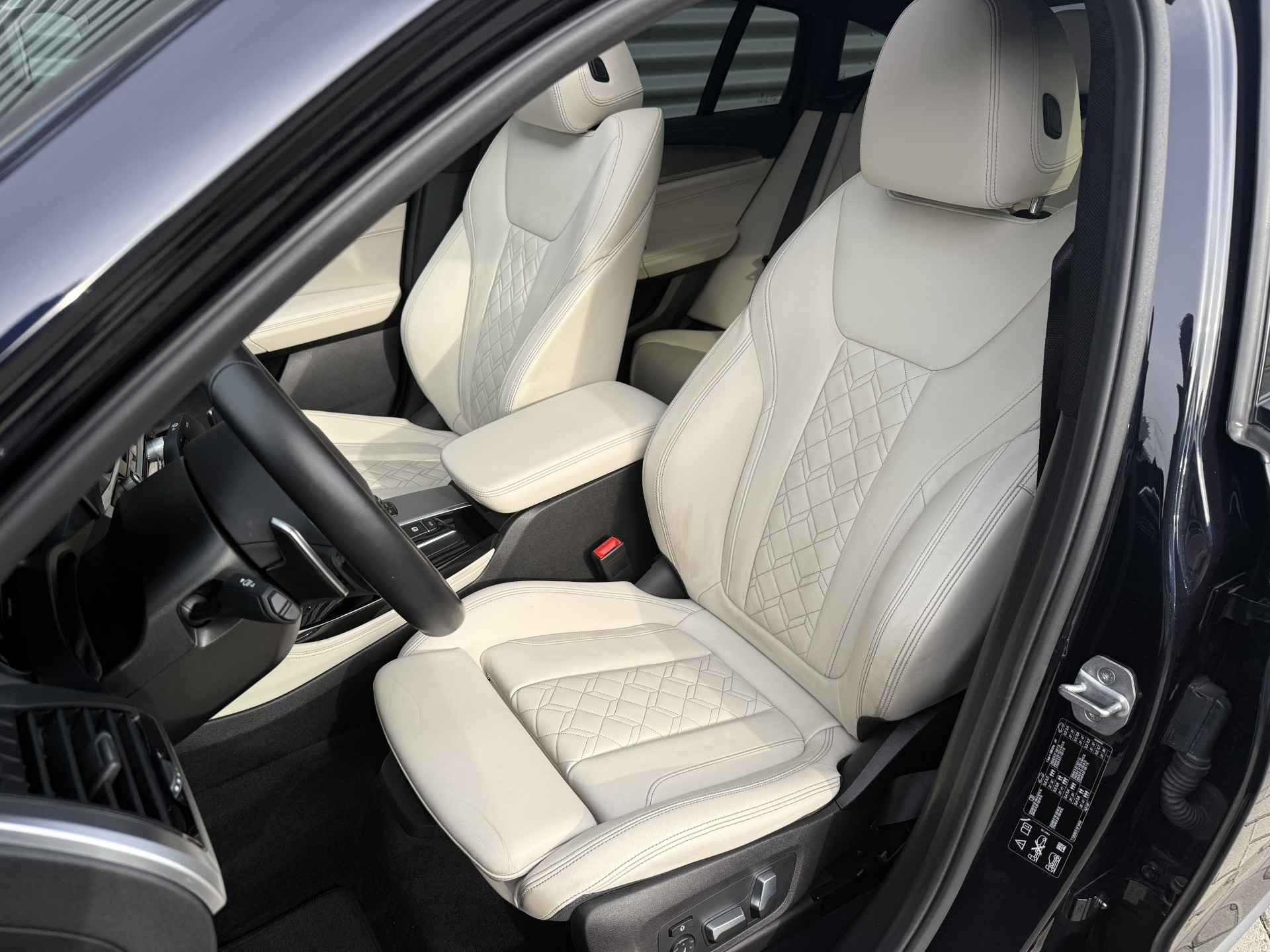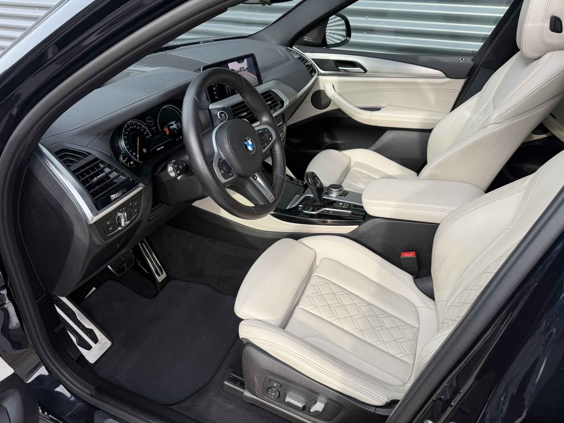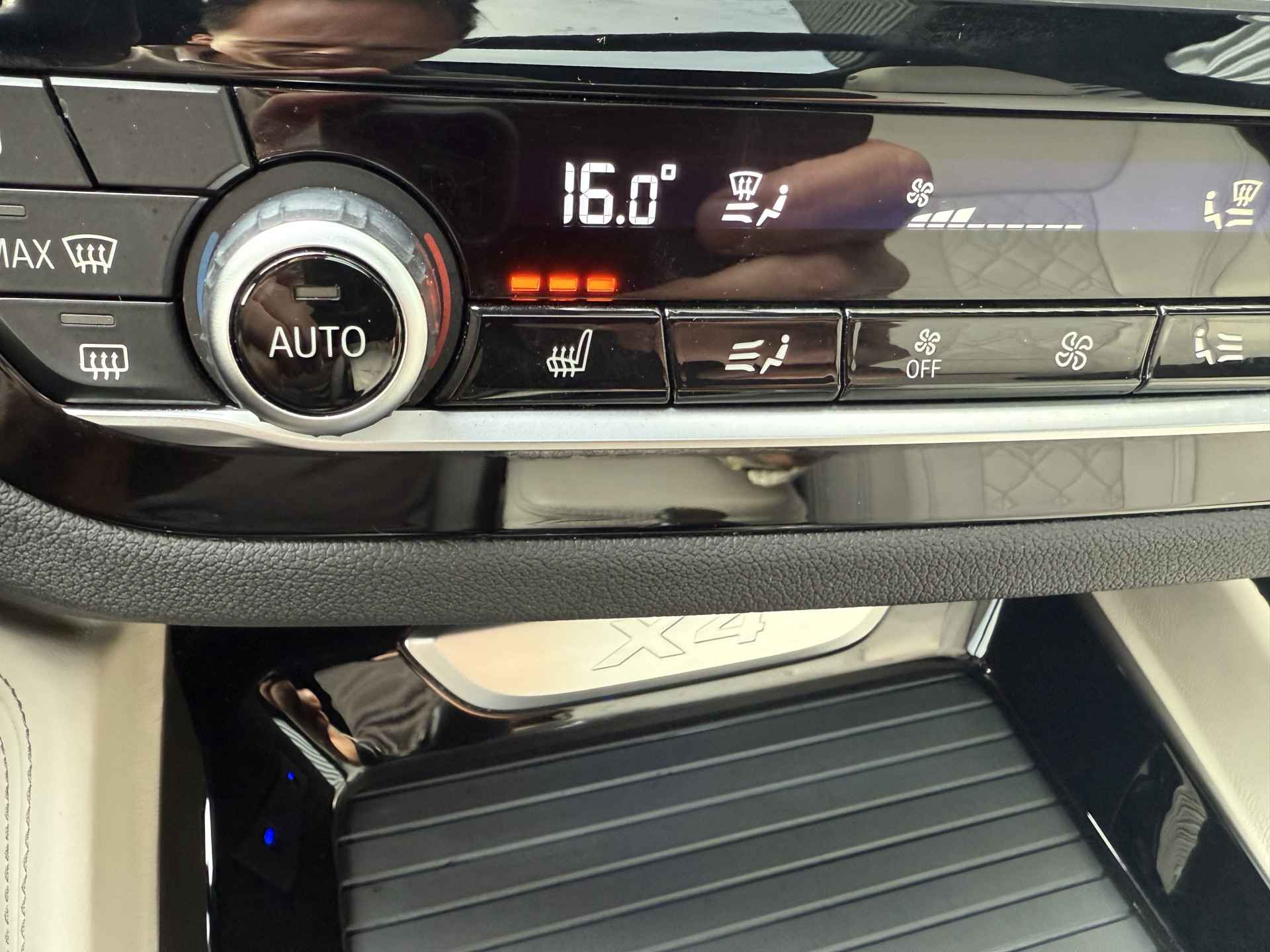 Schitterende BMW X4 xDrive30i M-Sport in Enigmatic Black metallic met lederen bekleding, 20 inch licht metalen velgen (op 4 nieuwe banden), elektrisch wegklapbare trekhaak (TREKGEWICHT 2400KG), Harman kardon Audio, achteruitrijcamera, Adaptief onderstel, head up display, navigatie, stoel en stuurverwarming, keyless entry and start, parkeersensoren voor + achter met parkeer assistent, LED verlichting, Ambiance sfeerverlichting interieur, etc..