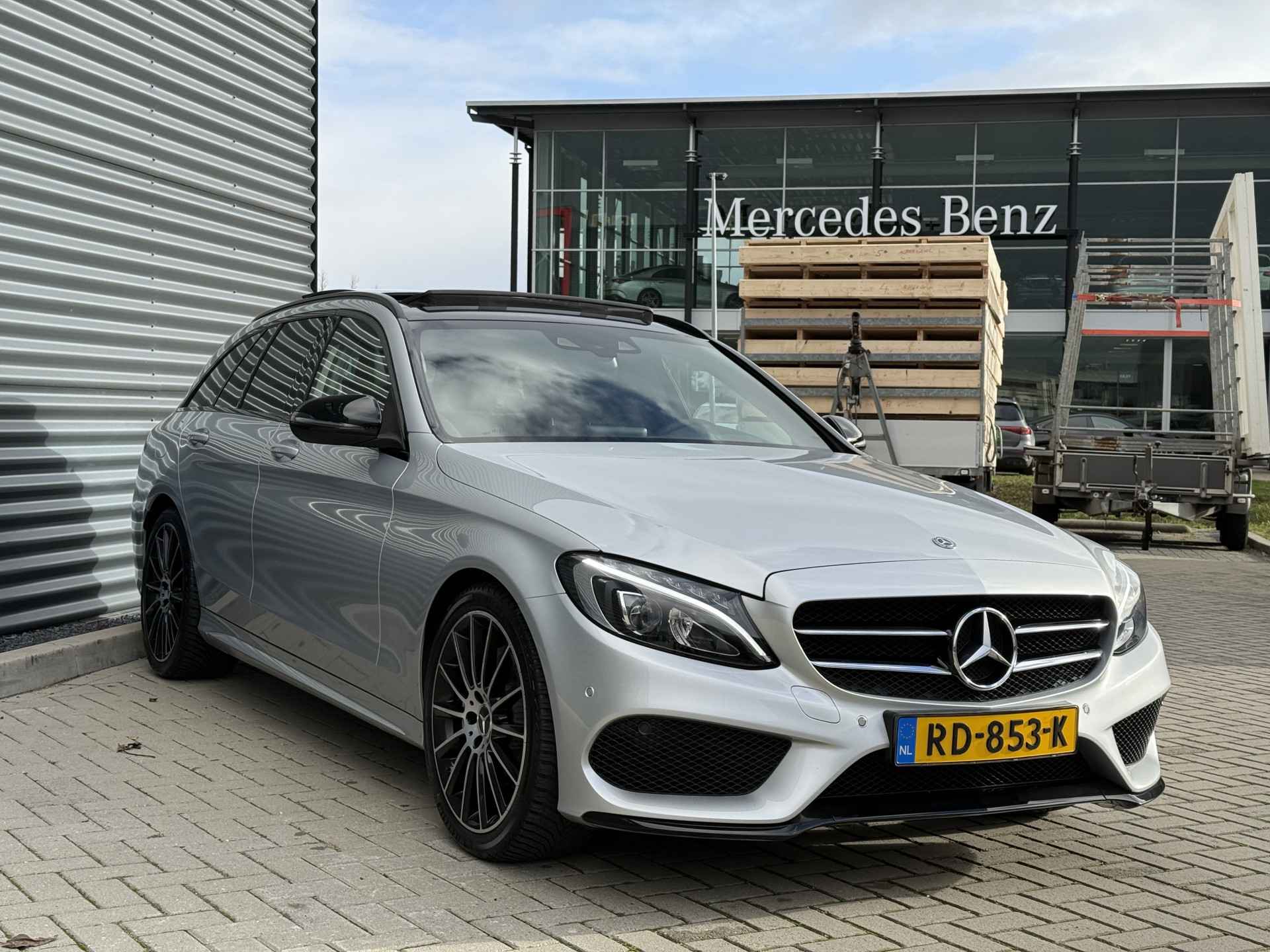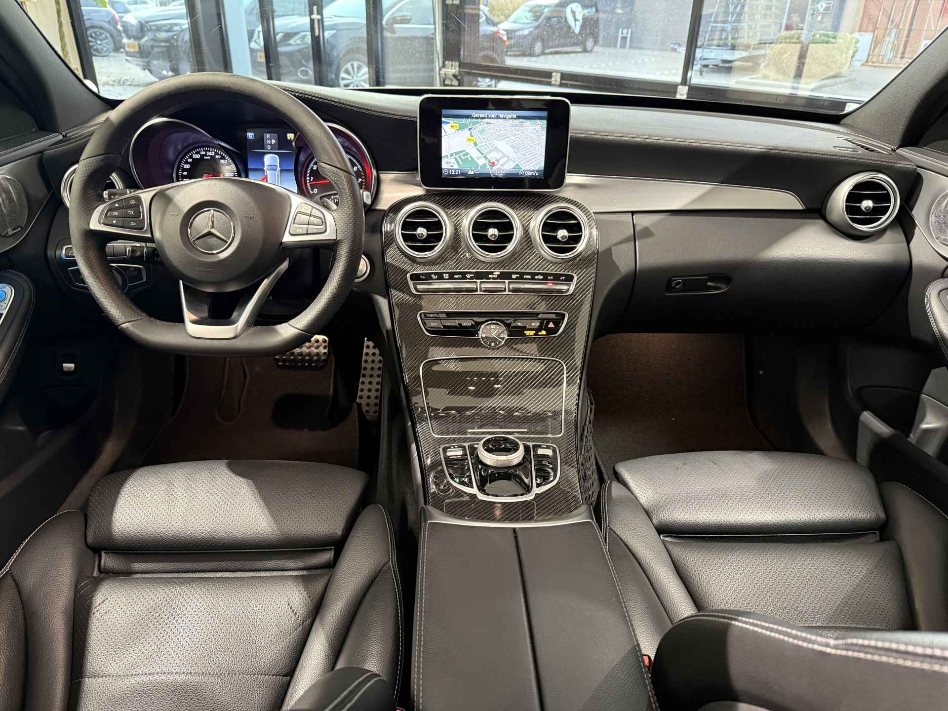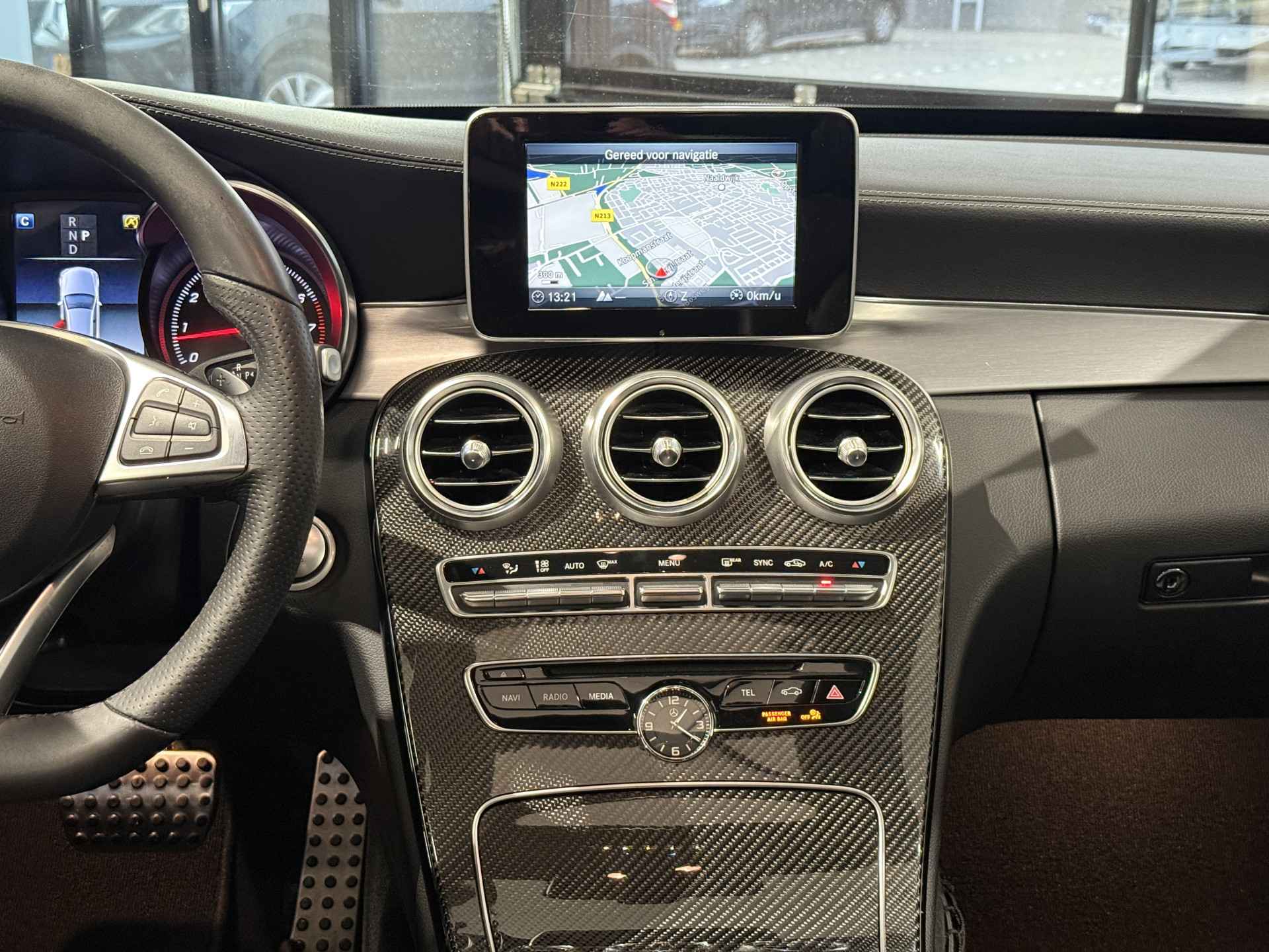 Schitterende Mercedes Benz C180 Estate AMG voorzien van bijzonder veel gave opties zoals: Burmester Audio, Head Up display, Panorama dak, Carbon inleg dashboard, 19 inch AMG velgen (Met nieuwe Michelin Cross Climate banden), achteruitrijcamera, interieur LED sfeerverlichting, lederen bekleding, stoelverwarming, lederen dashboard delen, PDC voor + achter, zwarte hemelbekleding, navigatie, Clifford alarmsysteem, etc..