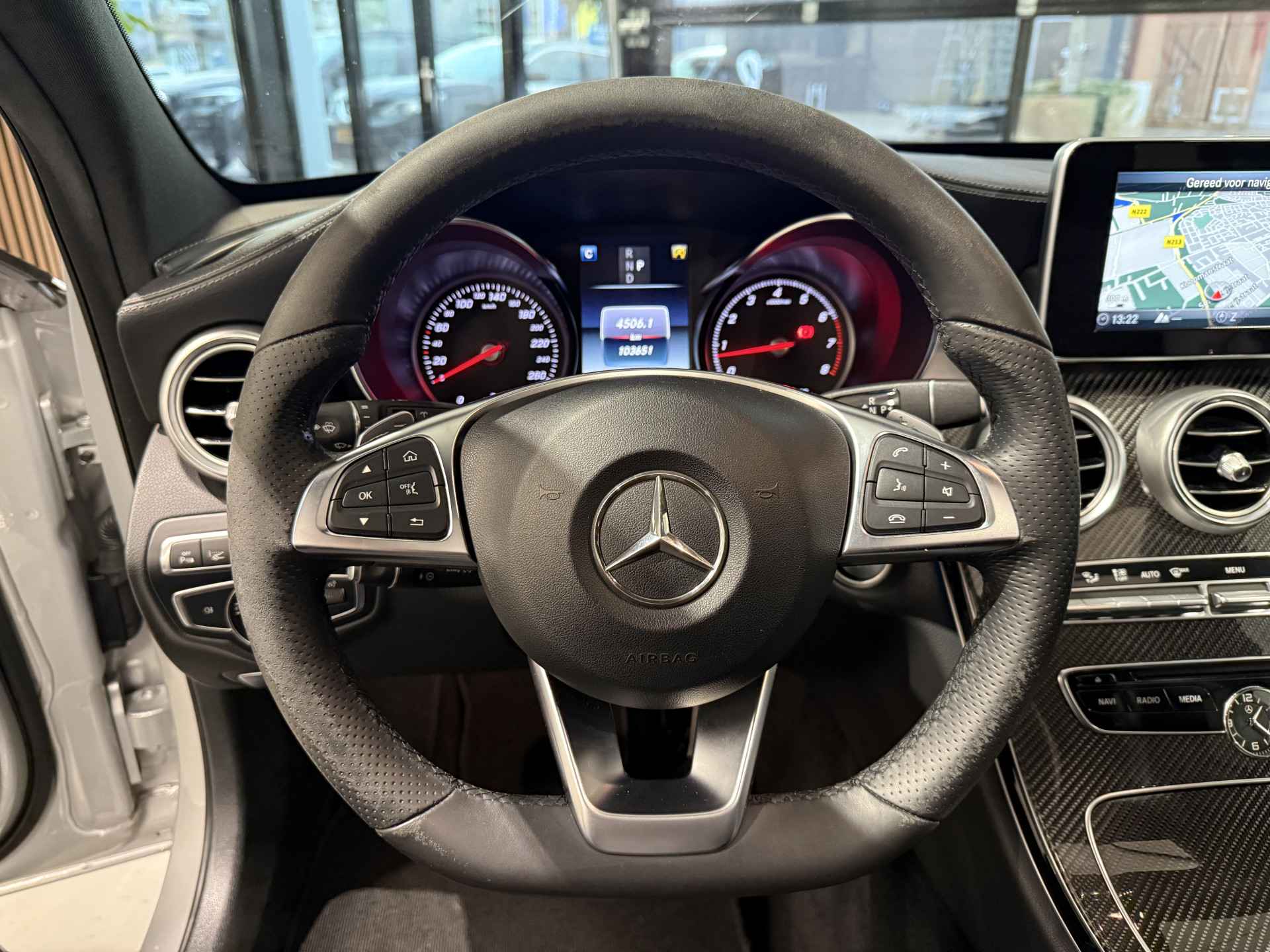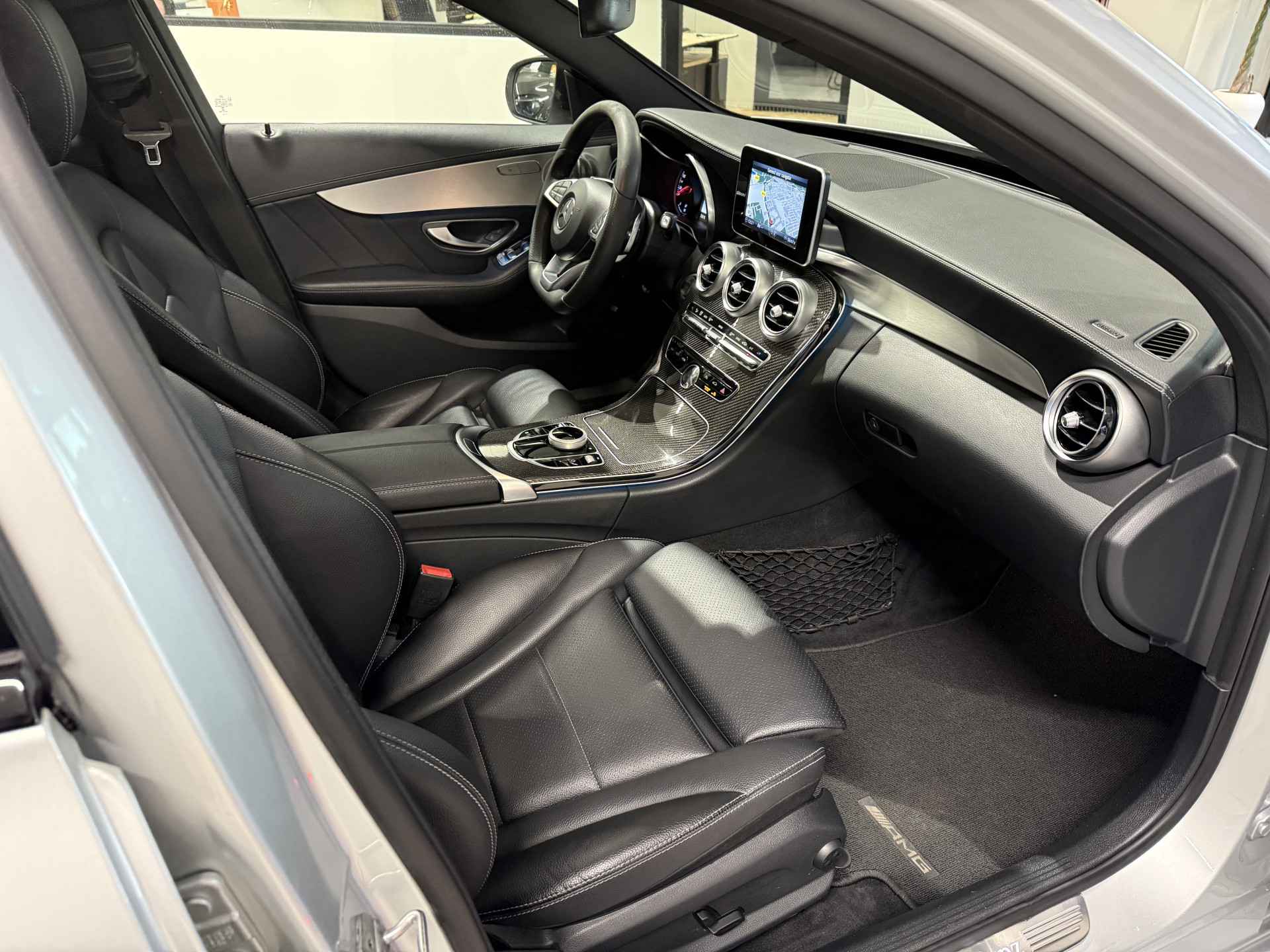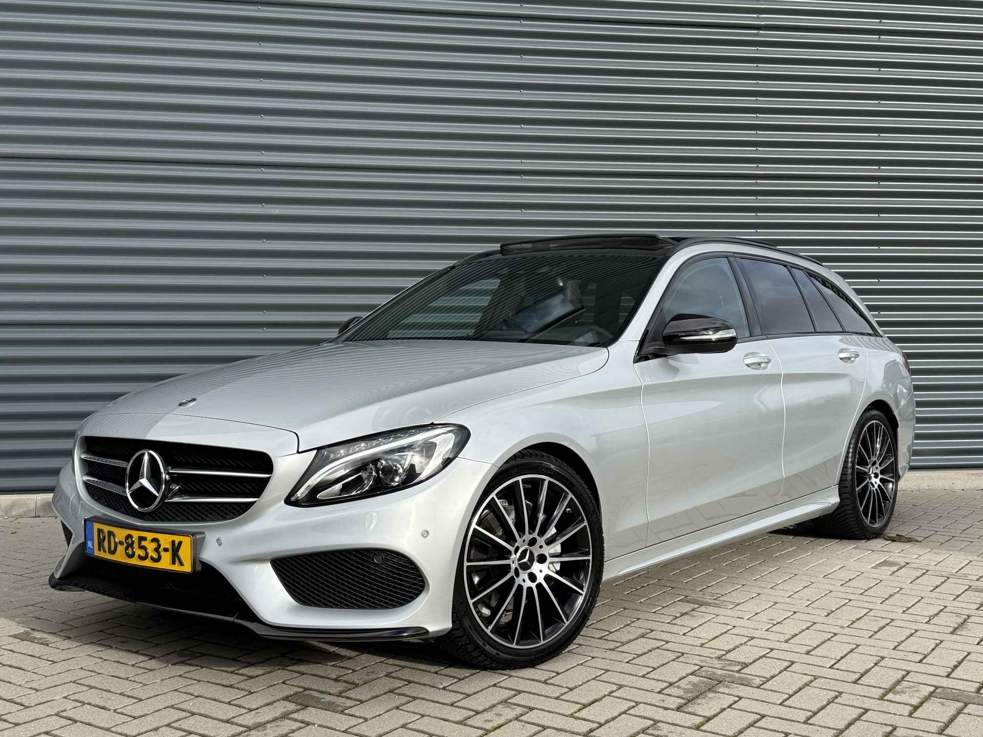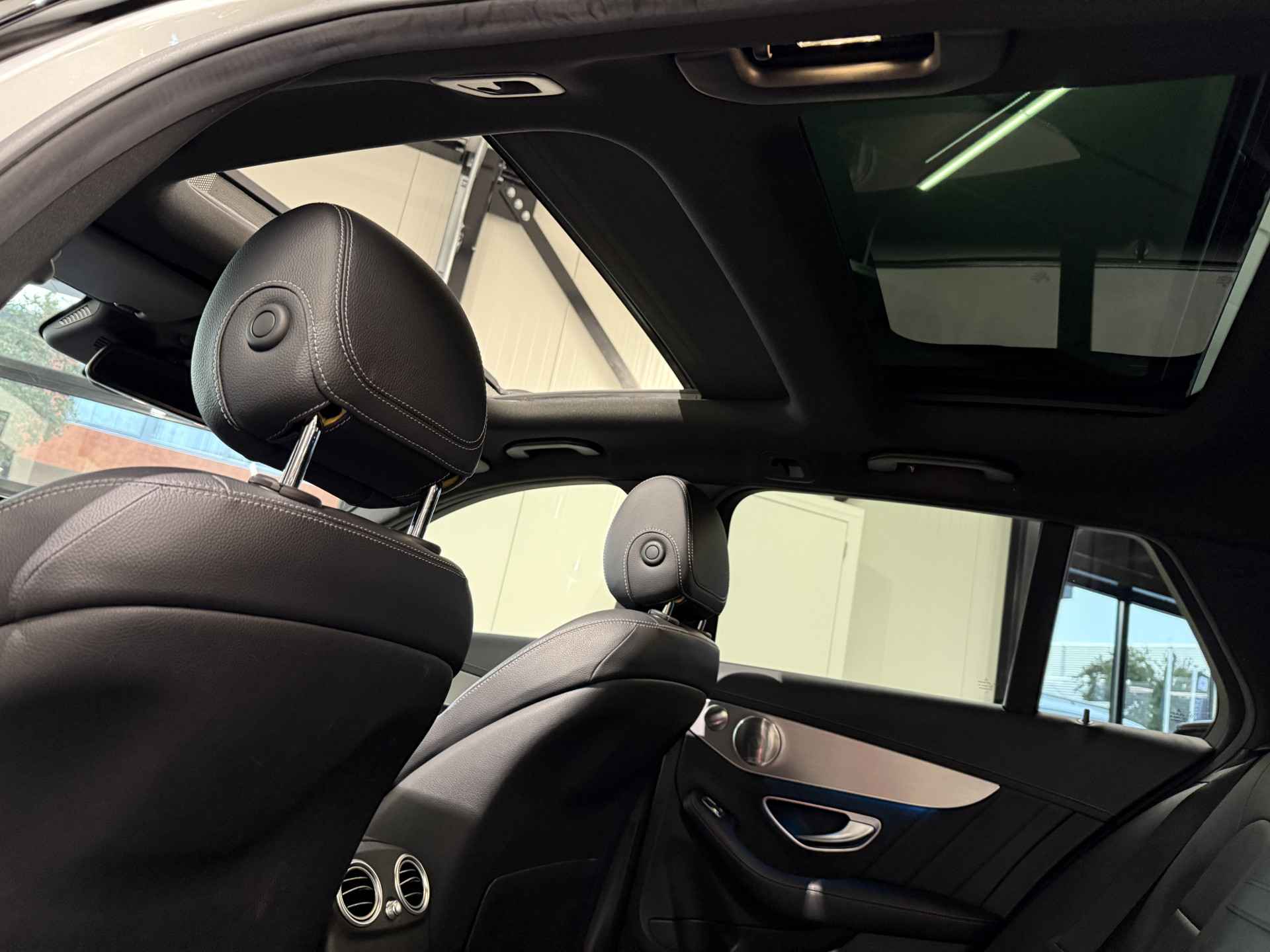Schitterende Mercedes Benz C180 Estate AMG voorzien van bijzonder veel gave opties zoals: Burmester Audio, Head Up display, Panorama dak, Carbon inleg dashboard, 19 inch AMG velgen (Met nieuwe Michelin Cross Climate banden), achteruitrijcamera, interieur LED sfeerverlichting, lederen bekleding, stoelverwarming, lederen dashboard delen, PDC voor + achter, zwarte hemelbekleding, navigatie, Clifford alarmsysteem, etc..