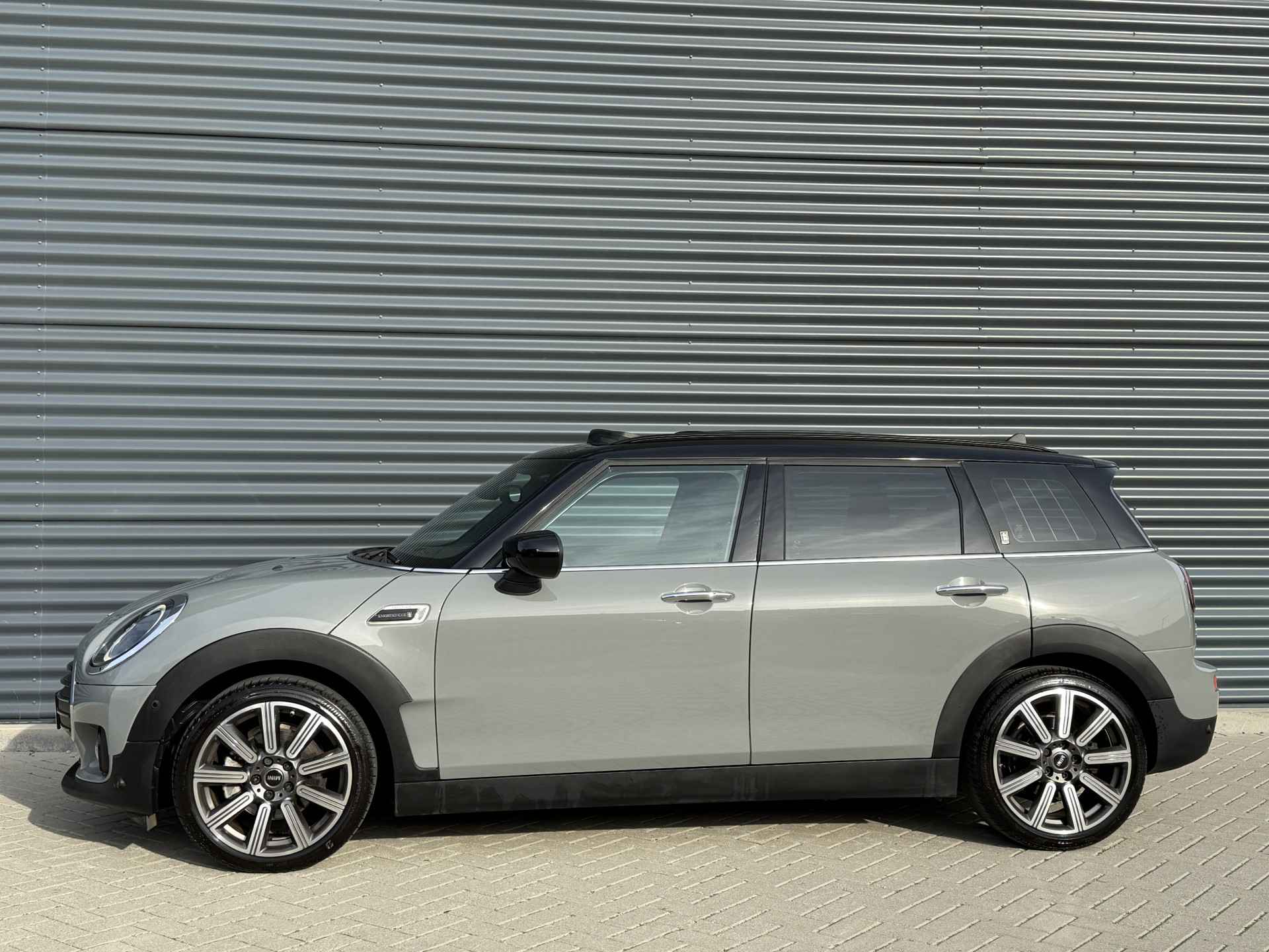 Schitterende Mini Clubman Cooper Knightsbridge in Moonwalk Grey metallic. Deze Clubman zit bomvol opties zoals: Panorama dak, achteruitrijcamera, cruise control, parkeersensoren voor + achter met parkeer assistent, draadloze telefoonlader, Apple Carplay, navigatie, virtuele cockpit, keyless entry and start, 18 inch licht metalen velgen, lederen bekleding, sport-comfortstoelen, etc..