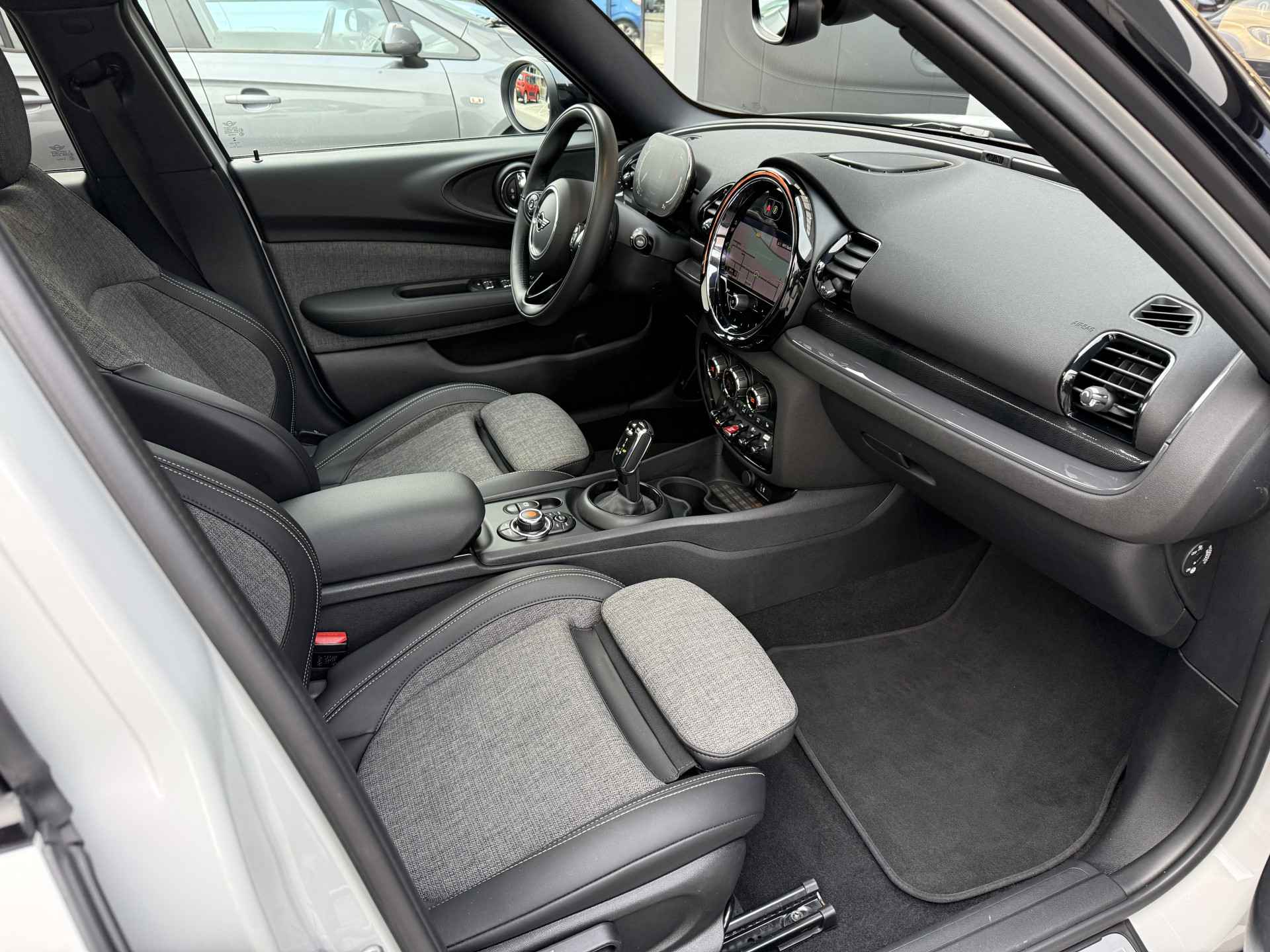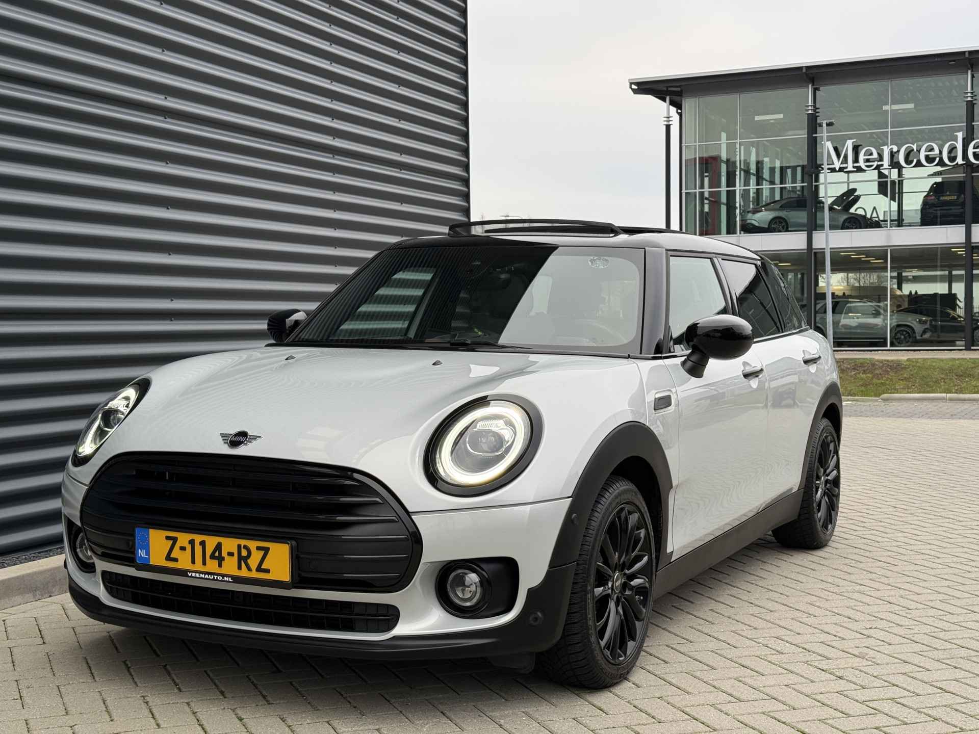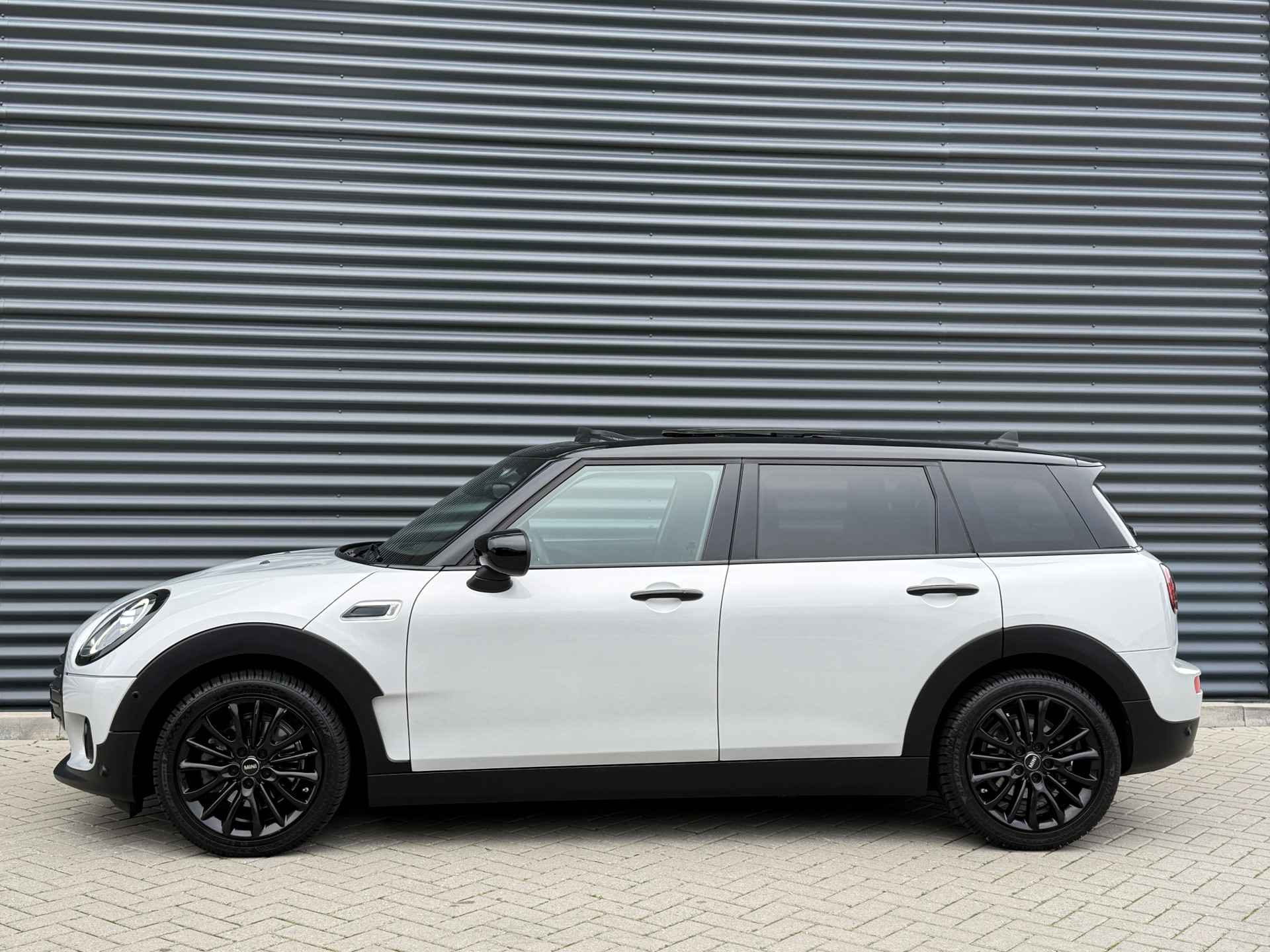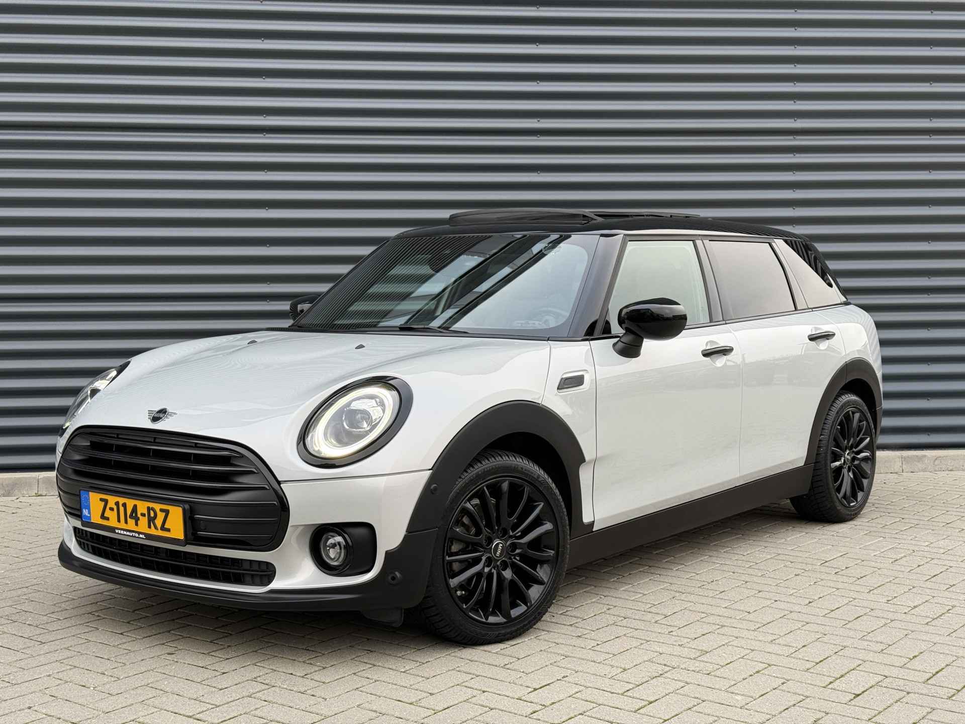 Schitterende Mini Clubman 1.5 Cooper automaat in White Silver metallic met hoogglans zwarte licht metalen velgen en Black Optic pakket. De Mini is voorzien van veel mooie opties zoals: Panorama dak, navigatie, Apple Carplay. achteruitrijcamera, stoelverwarming, parkeersensoren voor + achter met parkeer assistent, keyless entry and start, etc..