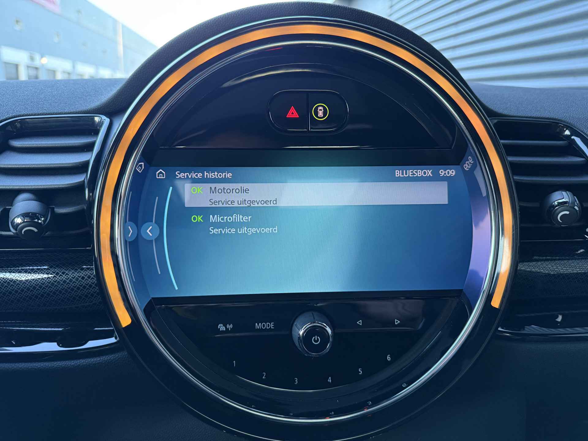 Deze Clubman zit bomvol opties zoals: Panorama dak, achteruitrijcamera, cruise control, parkeersensoren voor + achter met parkeer assistent, draadloze telefoonlader, Apple Carplay, navigatie, virtuele cockpit, etc..
