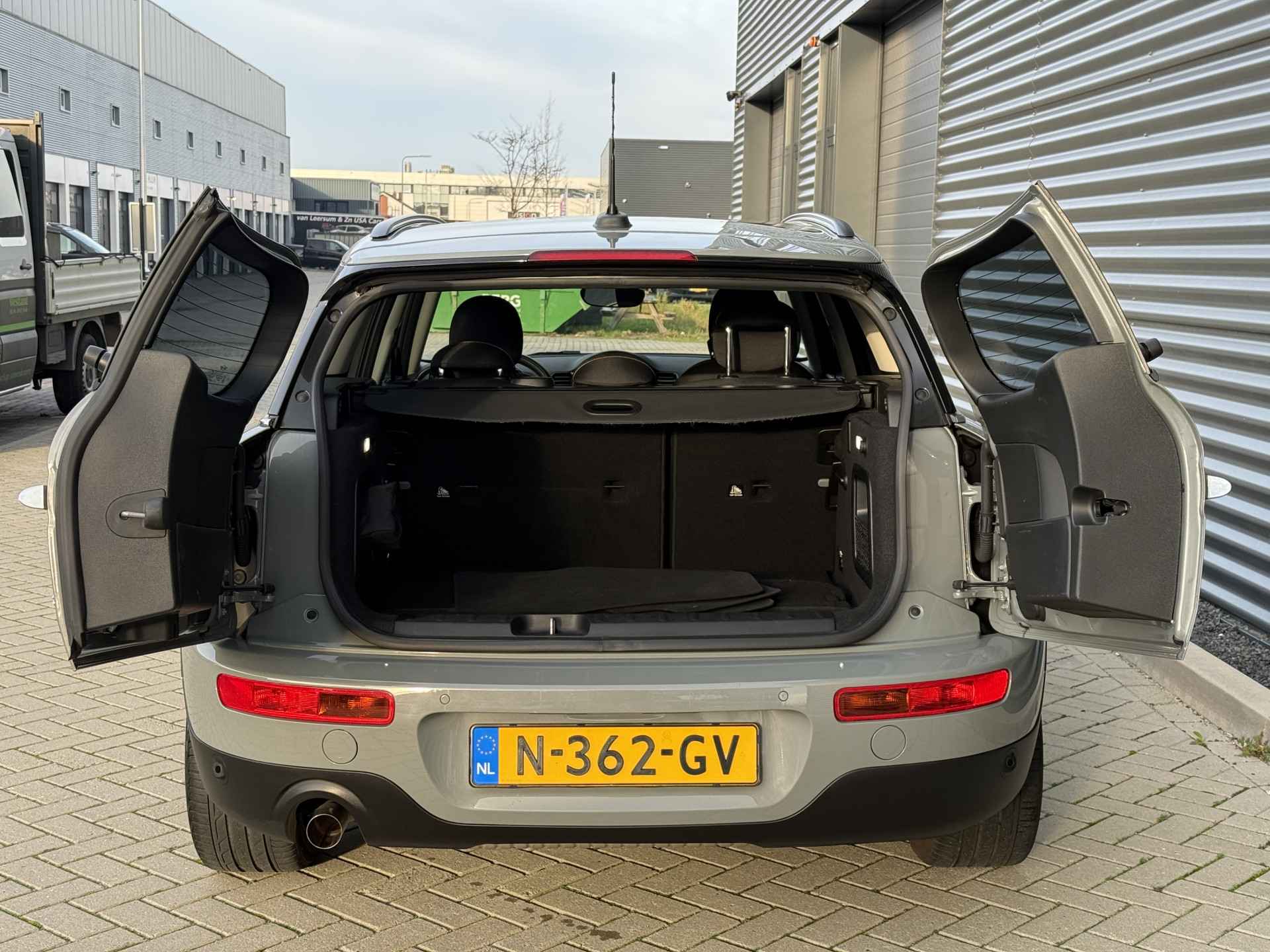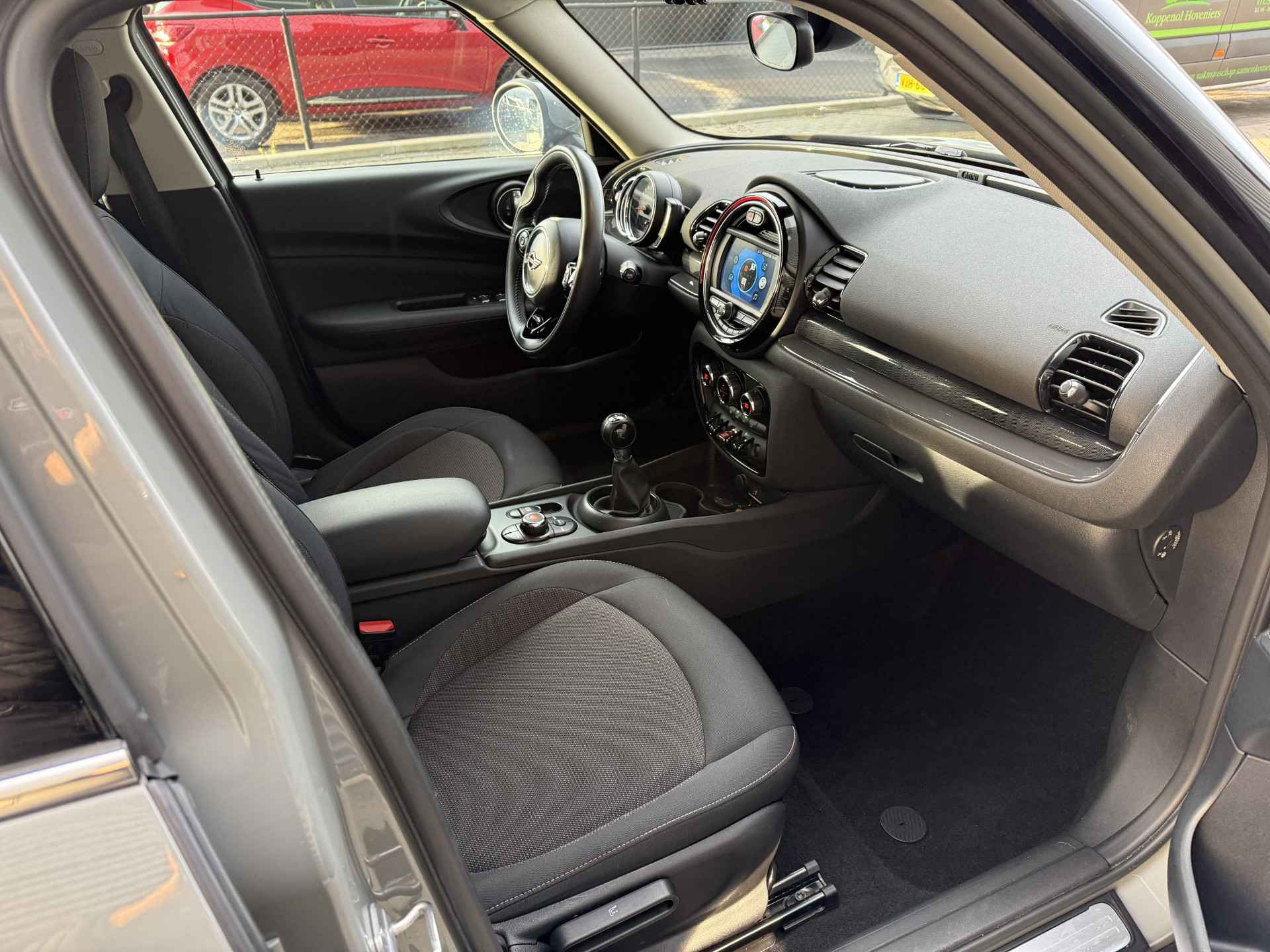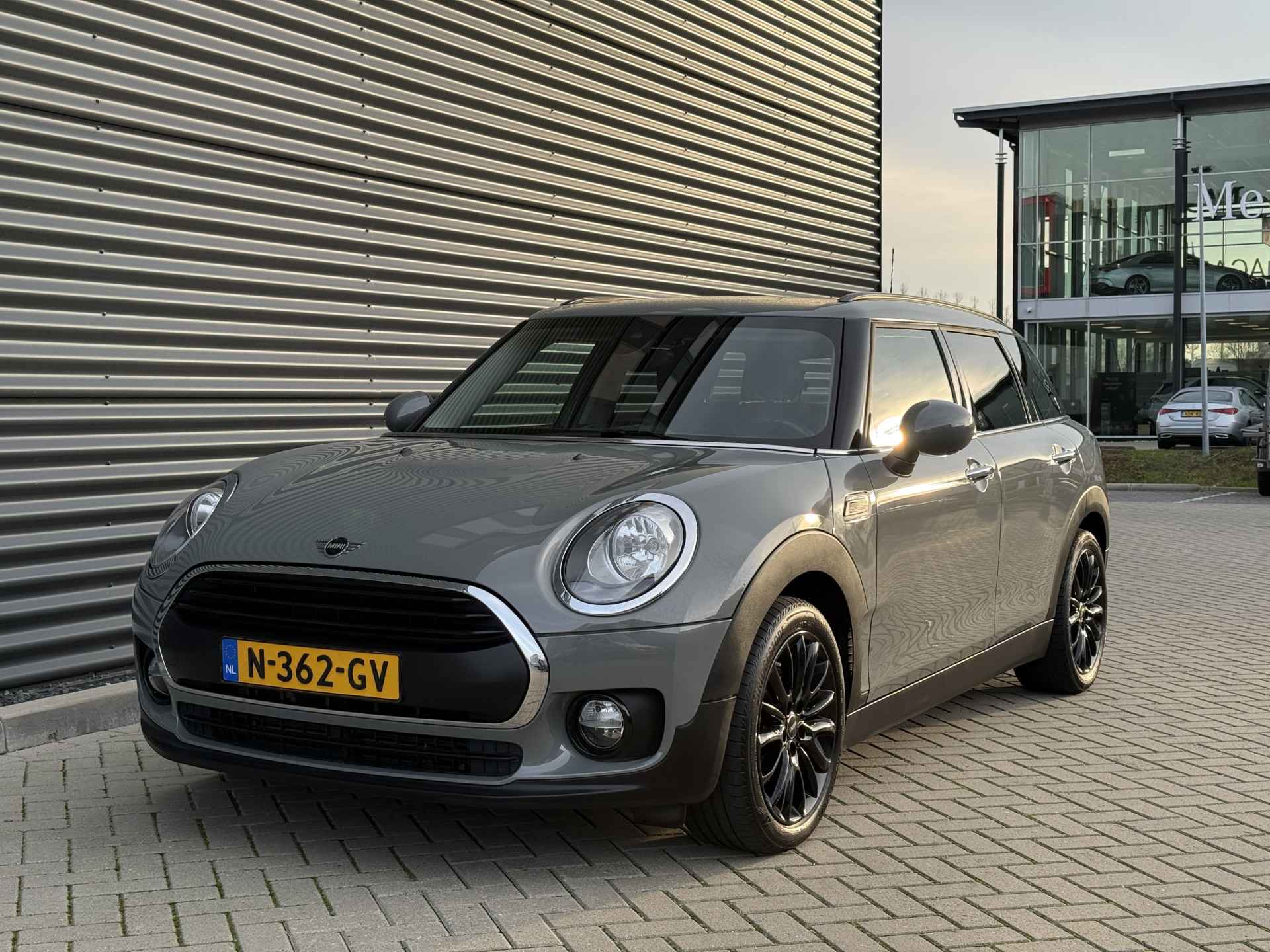 Schitterende Mini Clubman in Moonwalk Grey metallic met hoogglans zwarte licht metalen velgen. De Mini is voorzien van climate control, cruise control, parkeersensoren, keyless entry and start, etc..