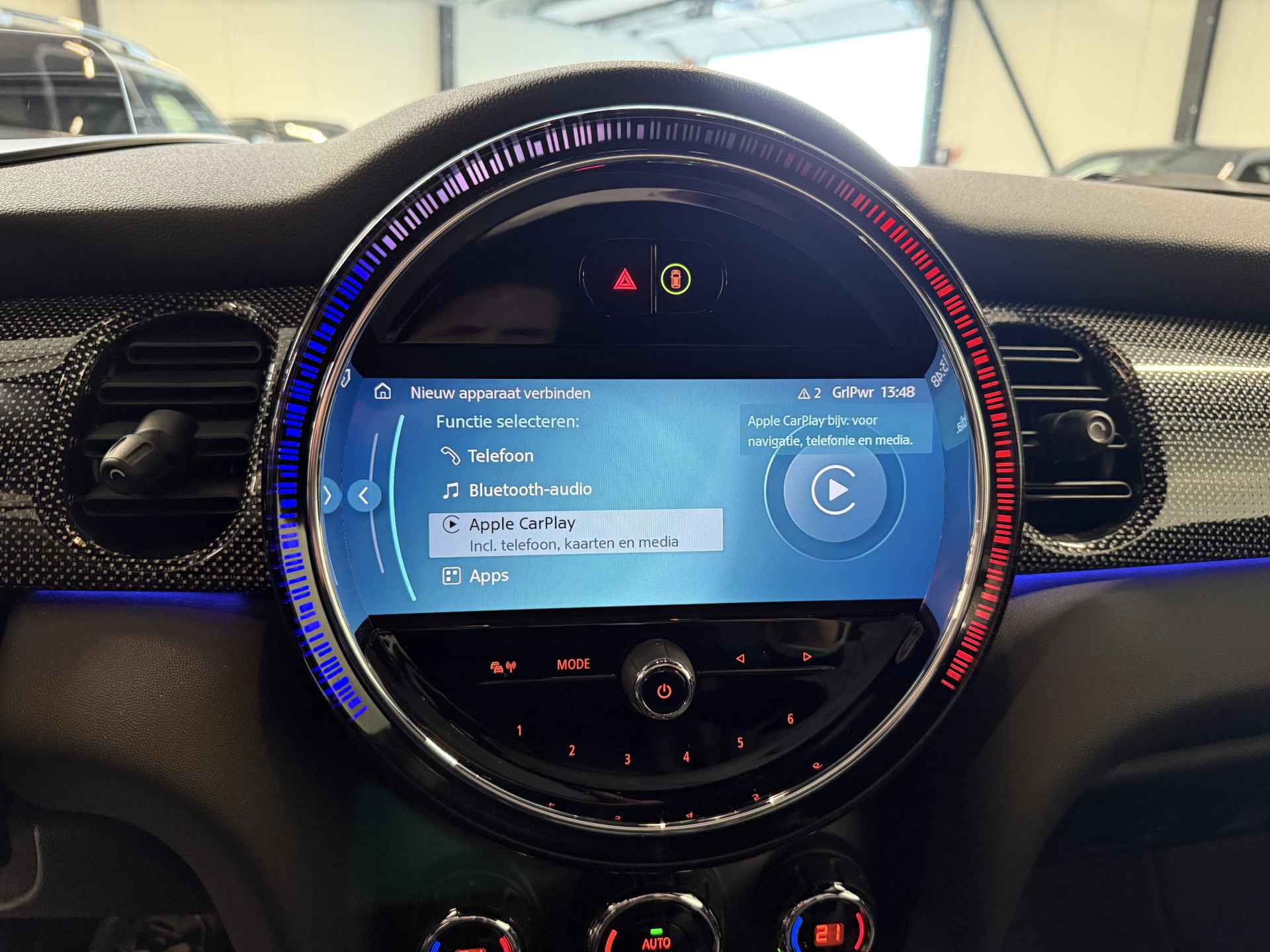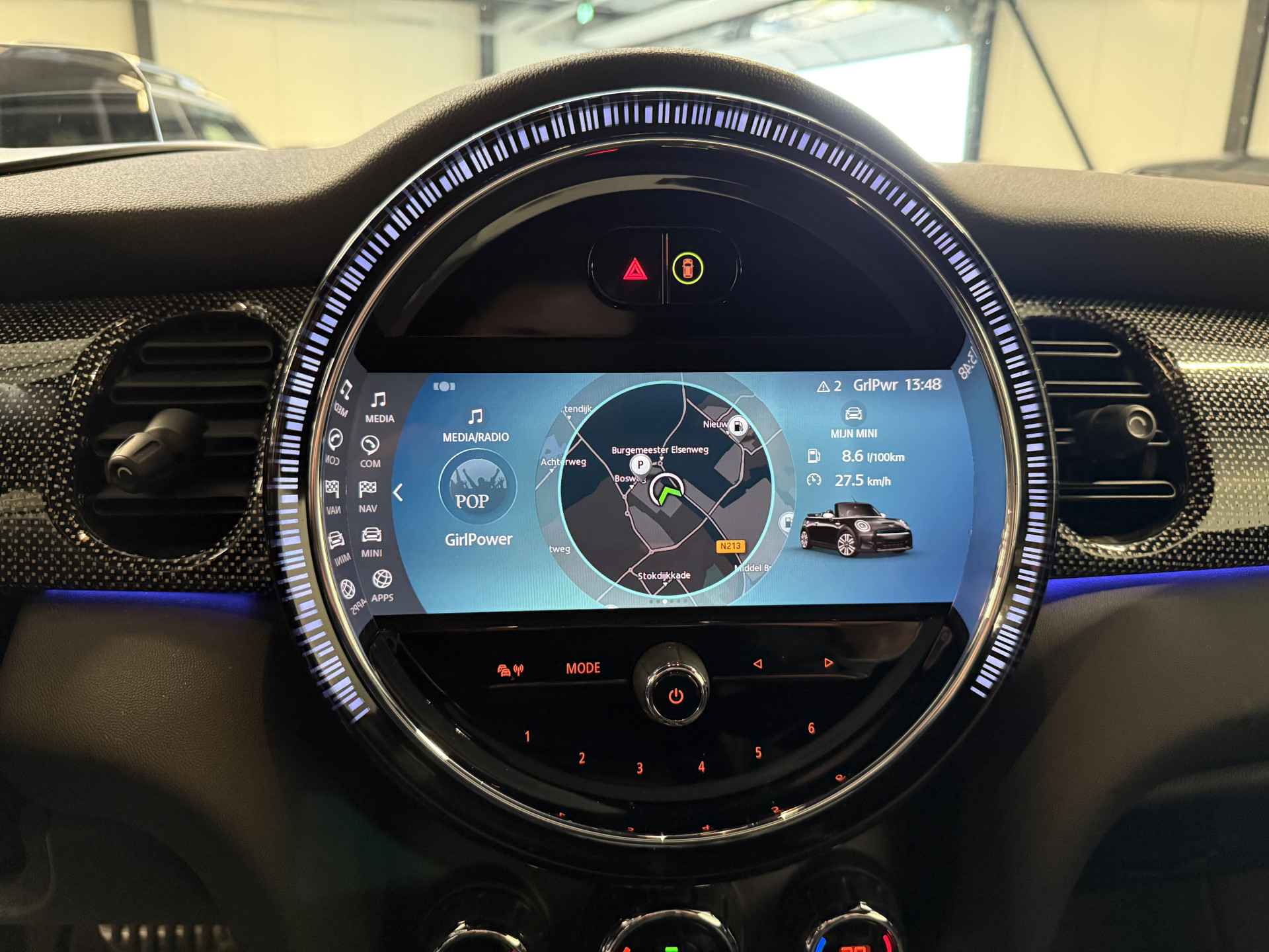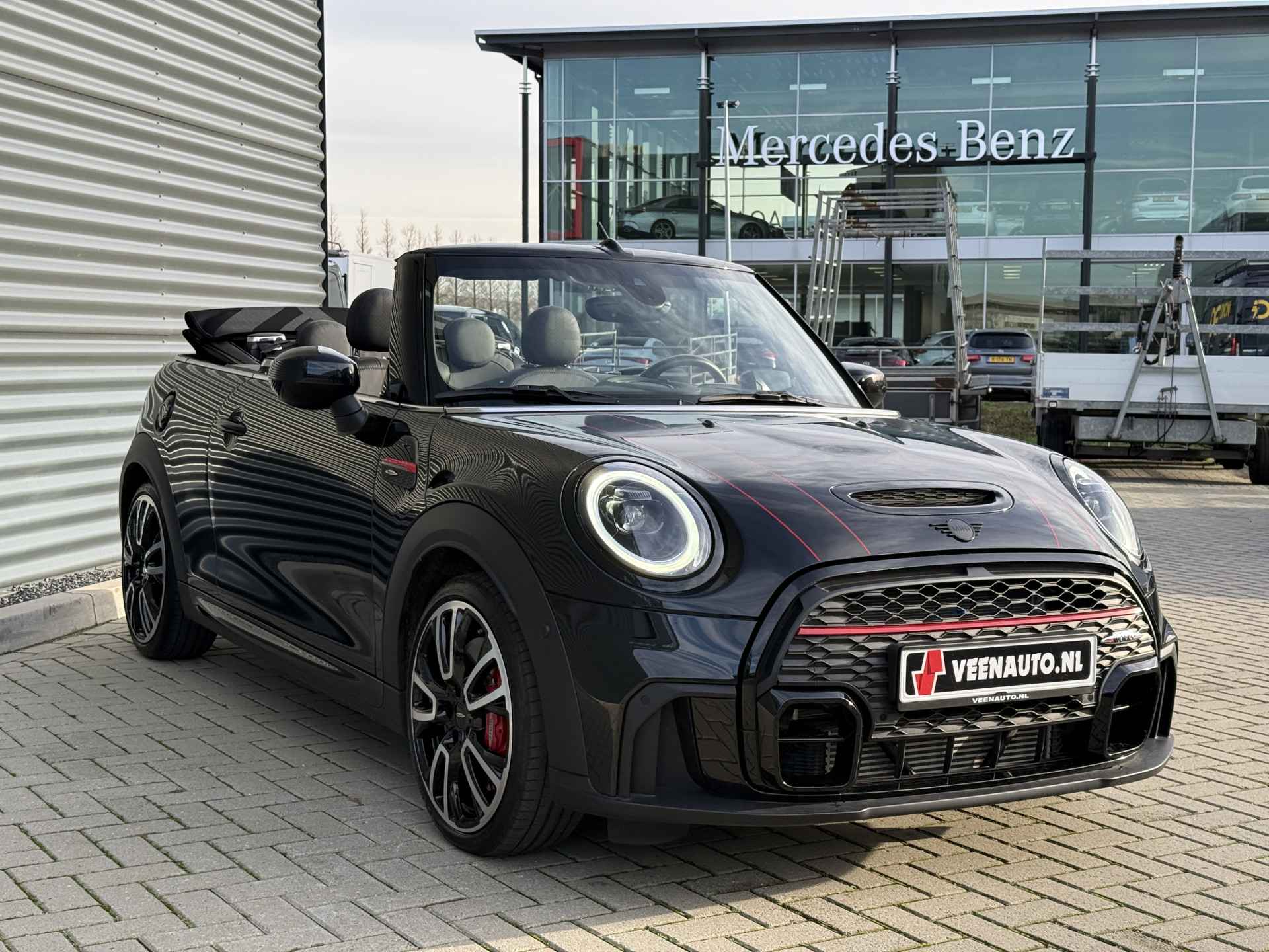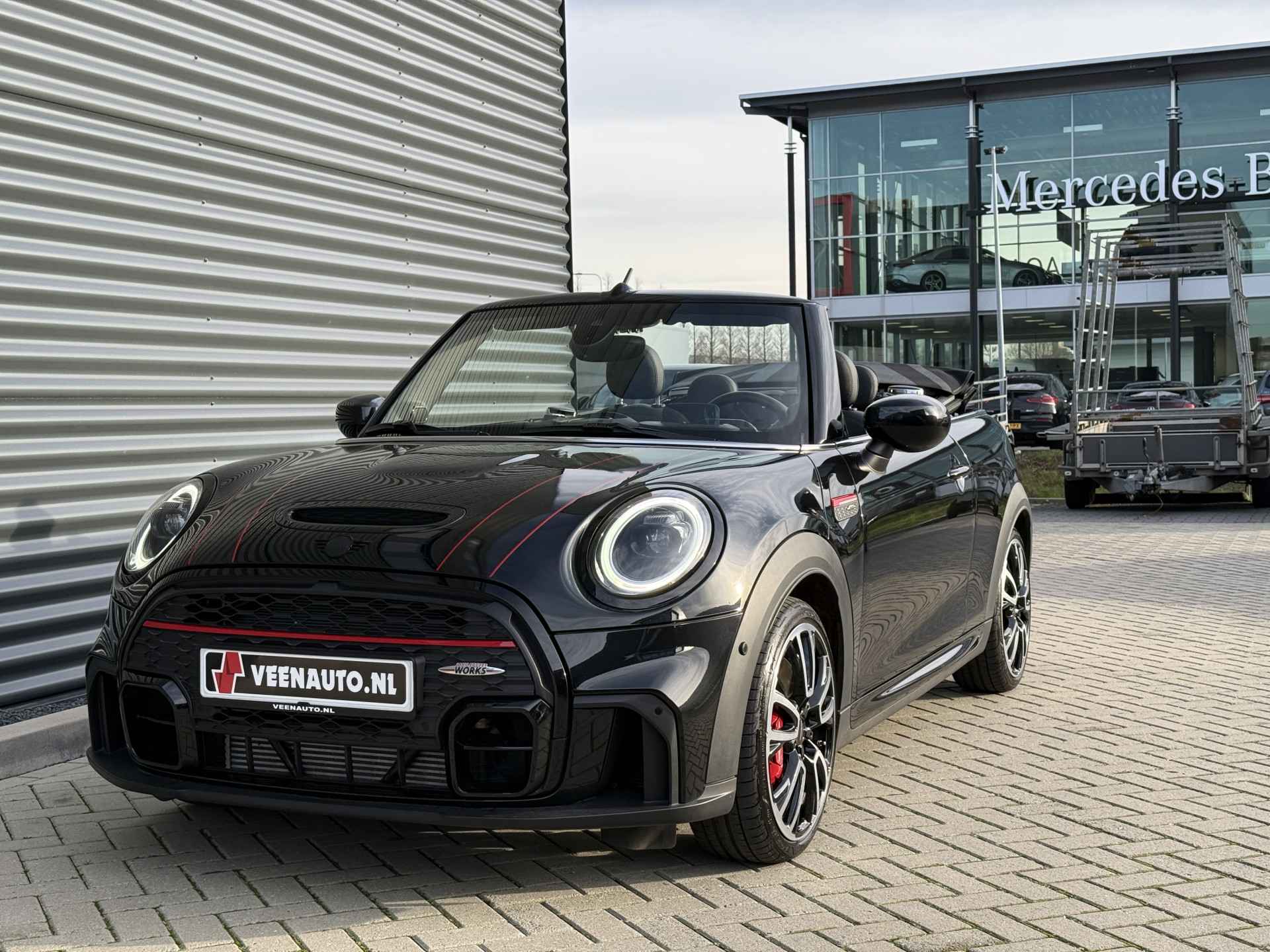 Schitterende Mini Cabrio 2.0 John Cooper Works 232PK in Midnight Black metallic met pas 14.564KM gereden. De Mini is uitgerust met bijzonder veel opties zoals: Harman kardon Audio, lederen bekleding, stoelverwarming, achteruitrijcamera, navigatie, Apple Carplay, Head Up display, windscherm, keyless entry and start, virtuele cockpit, PDC voor + achter met parkeer assistent, draadloze telefoonlader, etc..