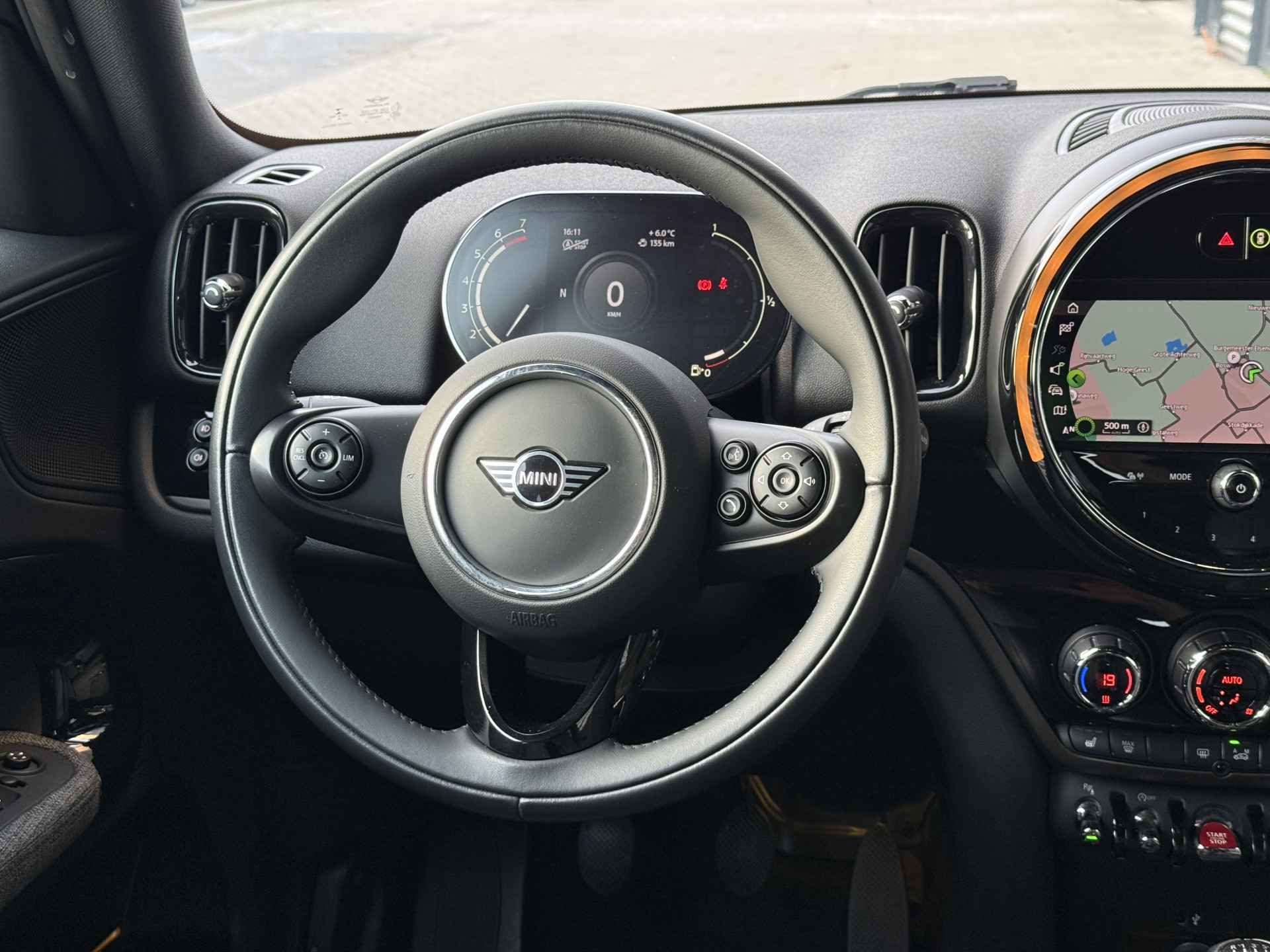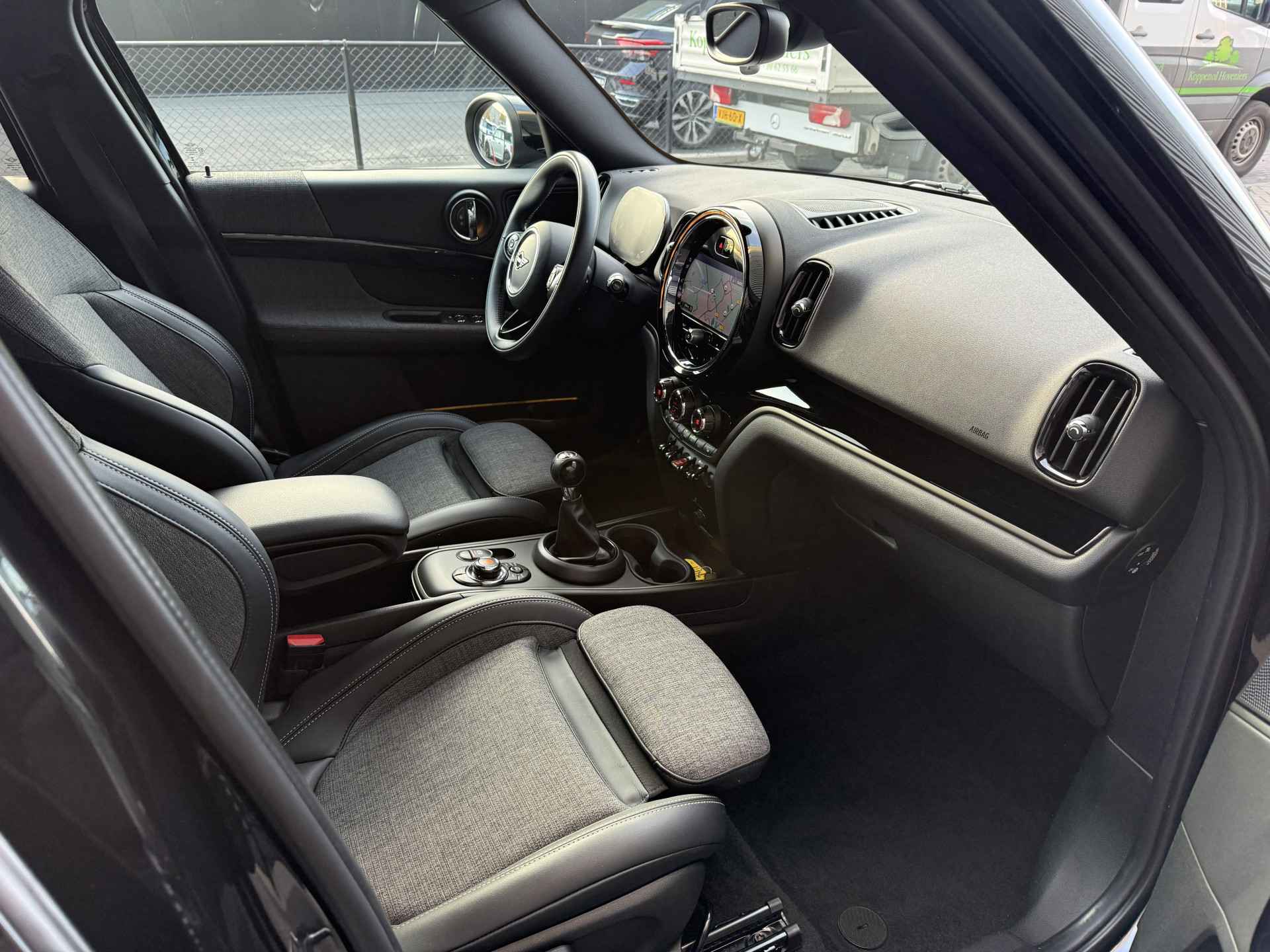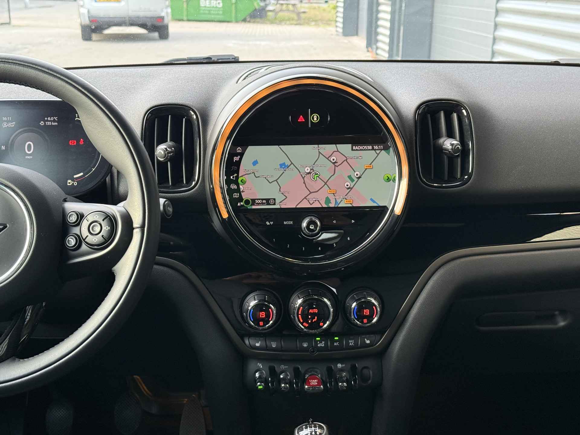 Schitterende Mini Countryman in Midnight Black metallic met hoogglans zwarte licht metalen velgen. De Mini is voorzien van veel gave opties zoals: Apple Carplay, navigatie, keyless entry and start, cruise control, climate control, half lederen sport-comfort stoelen, stoelverwarming, parkeersensoren voor + achter met parkeer assistent, etc..