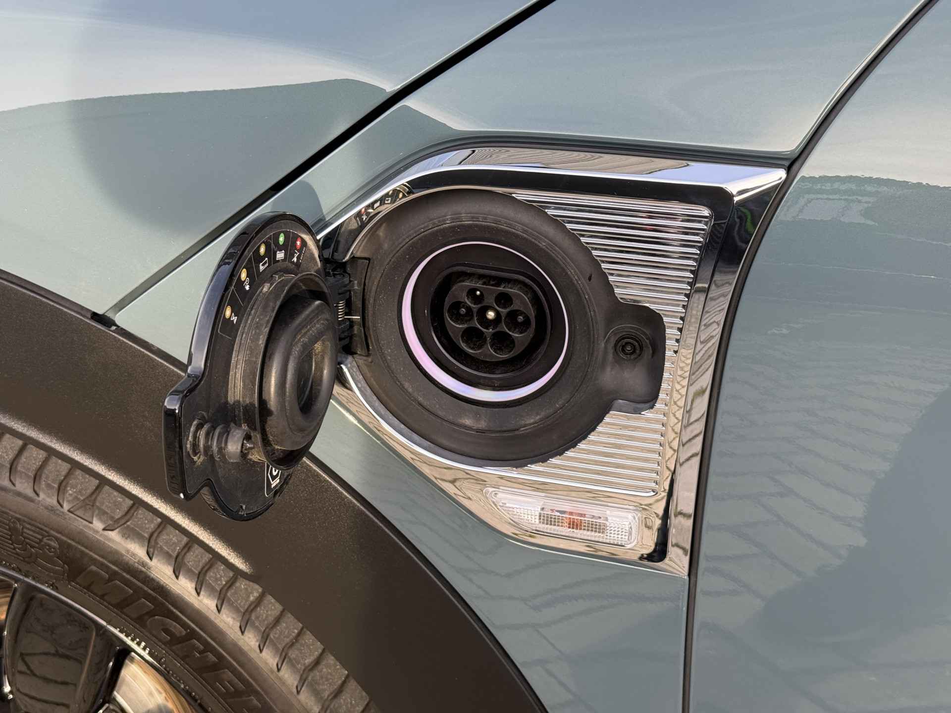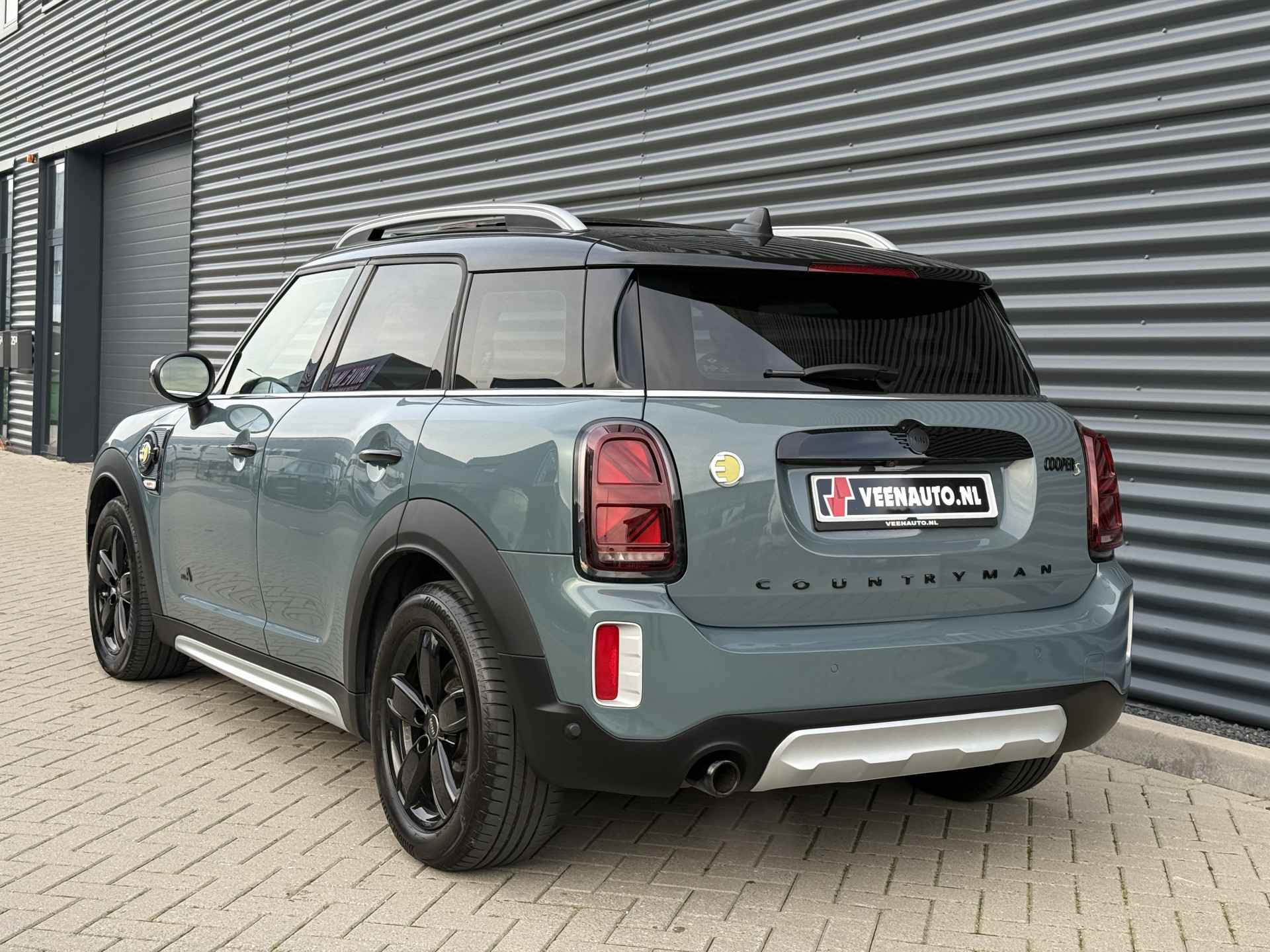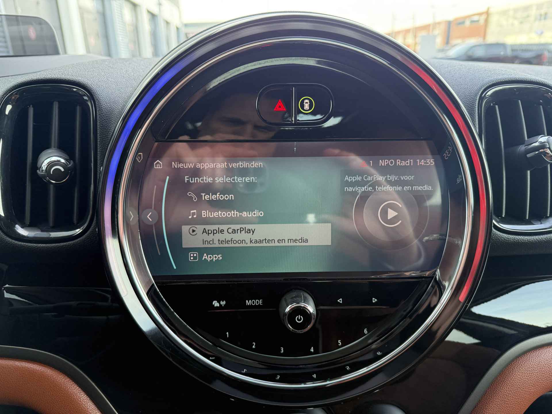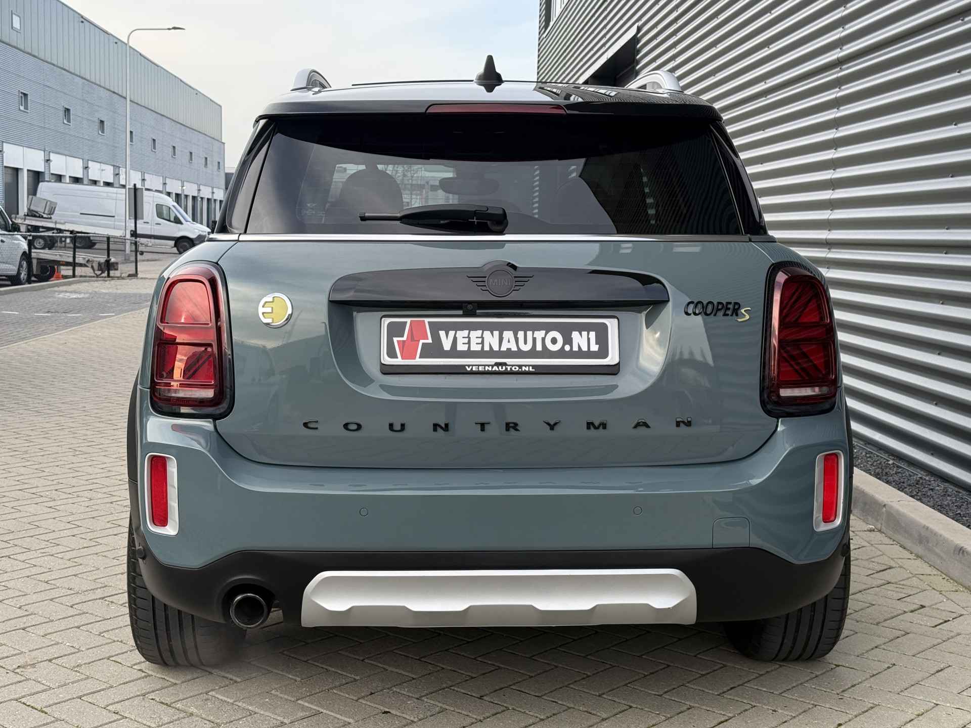 Schitterende Mini Countryman 2.0 Cooper SE ALL4 Plug in Hybrid in Sage Green metallic met hoogglans zwarte licht metalen velgen. Deze Mini is bijzonder compleet uitgerust met onder andere de volgende opties: Panorama dak, Harman Kardon Audio, stoelverwarming, Chester Malt lederen sport-comfort stoelen elektrisch bedienbaar met memory, Apple Carplay, achteruitrijcamera, navigatie, virtuele cockpit, Head Up display, adaptieve cruise control, keyless entry, parkeersensoren voor + achter met parkeer assistent, etc..