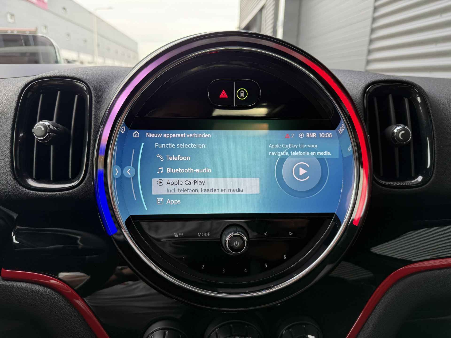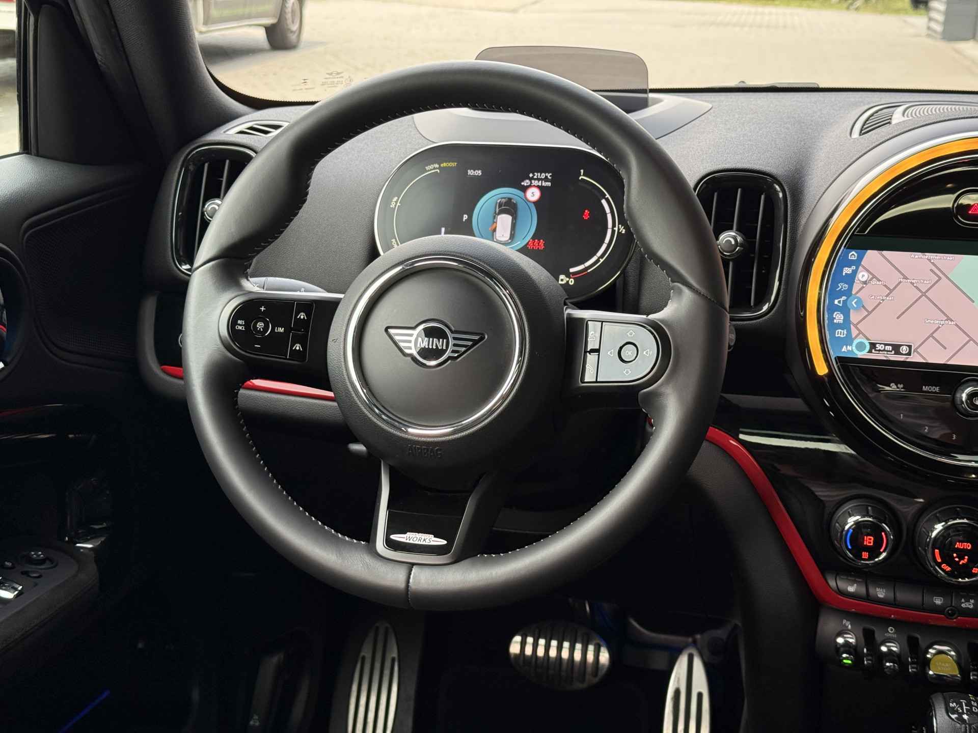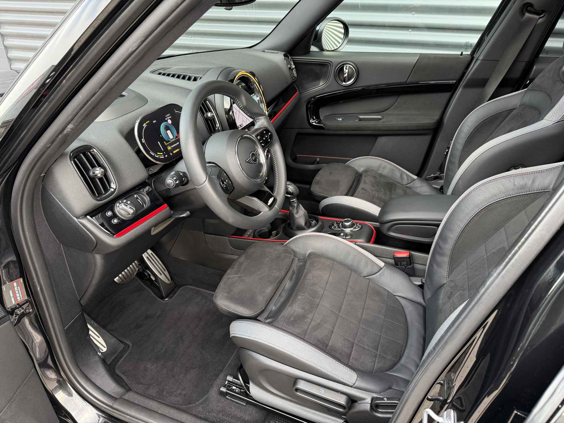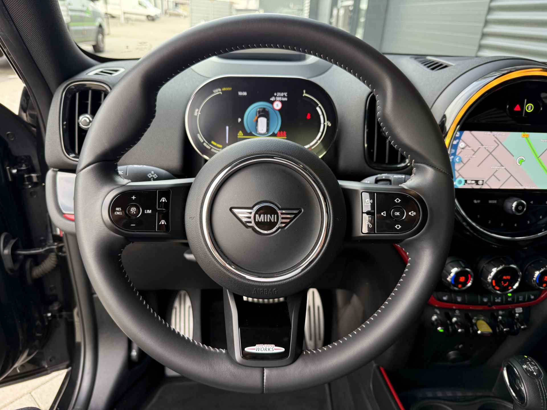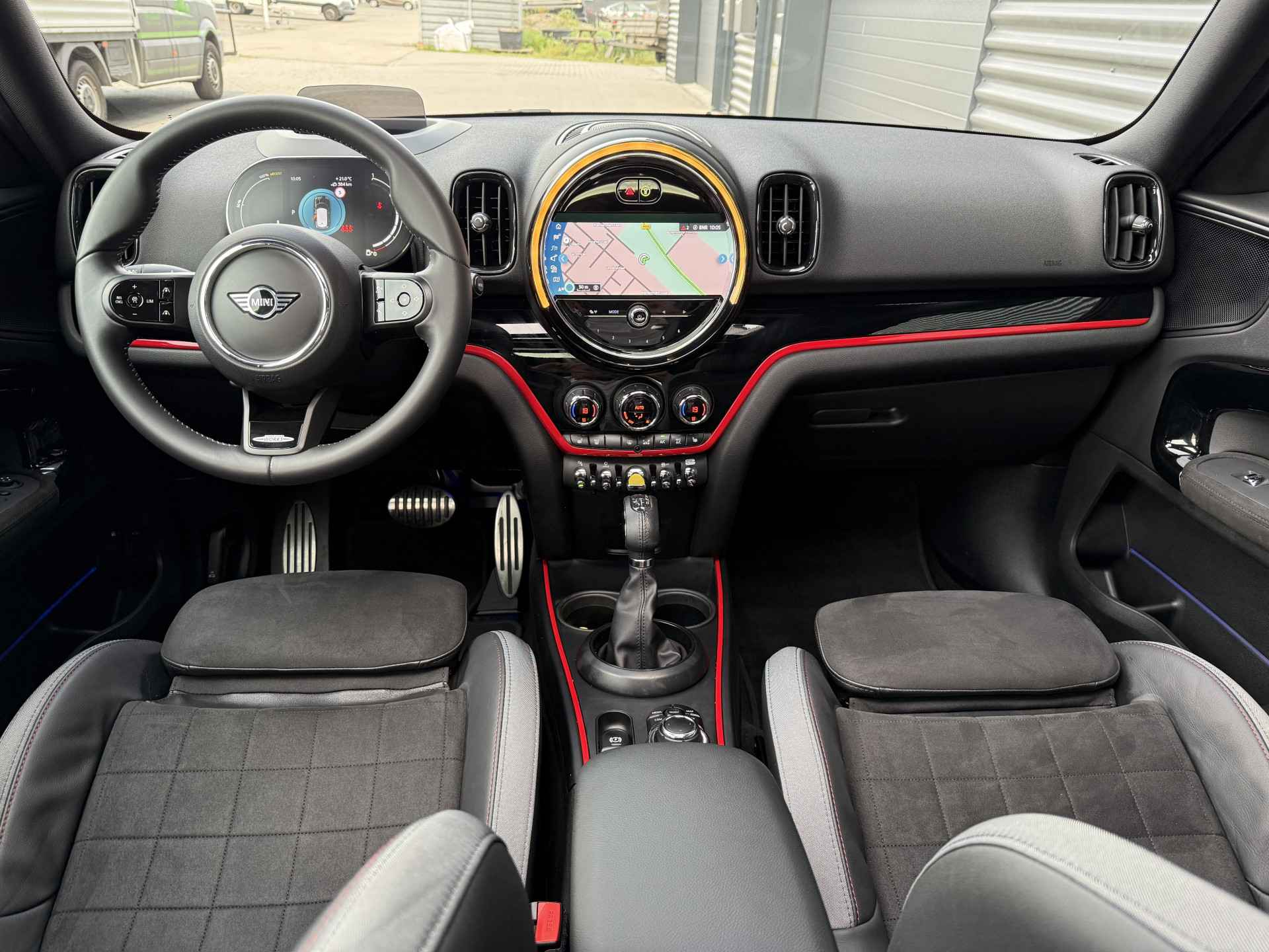 Schitterende Mini Countryman SE Plug in Hybride John Cooper Works in Midnight Black metallic met Black Optic pakket en 19 inch JCW licht metalen velgen. De Mini is voorzien van veel gave opties zoals: Panorama dak, Apple carplay, achteruitrijcamera, navigatie, head Up display, keyless entry, virtuele cockpit, stoelverwarming, parkeersensoren voor + achter met parkeer assistent , draadloze telefoonlader, LED sfeer interieur verlichting, cruise control, etc..
