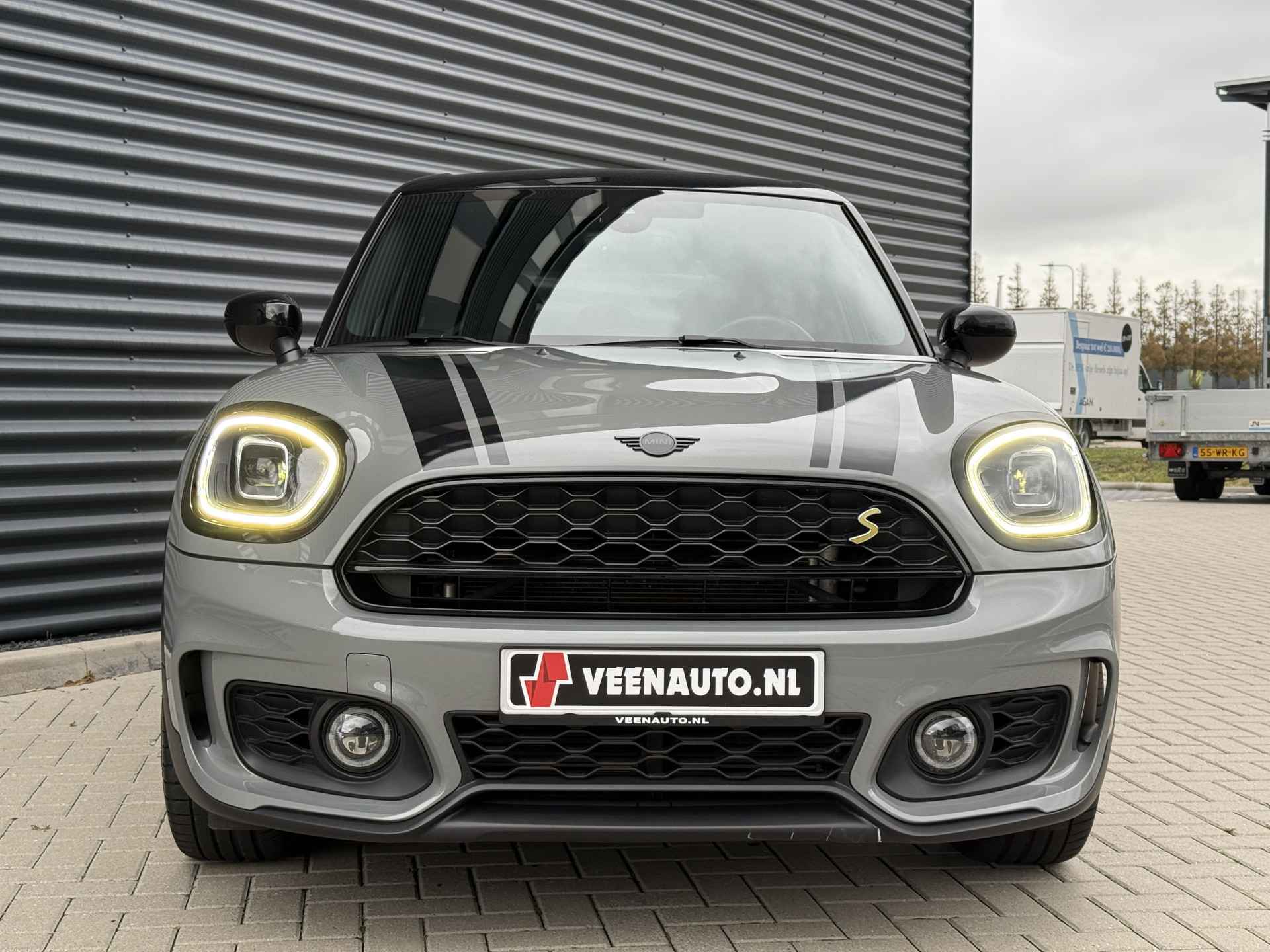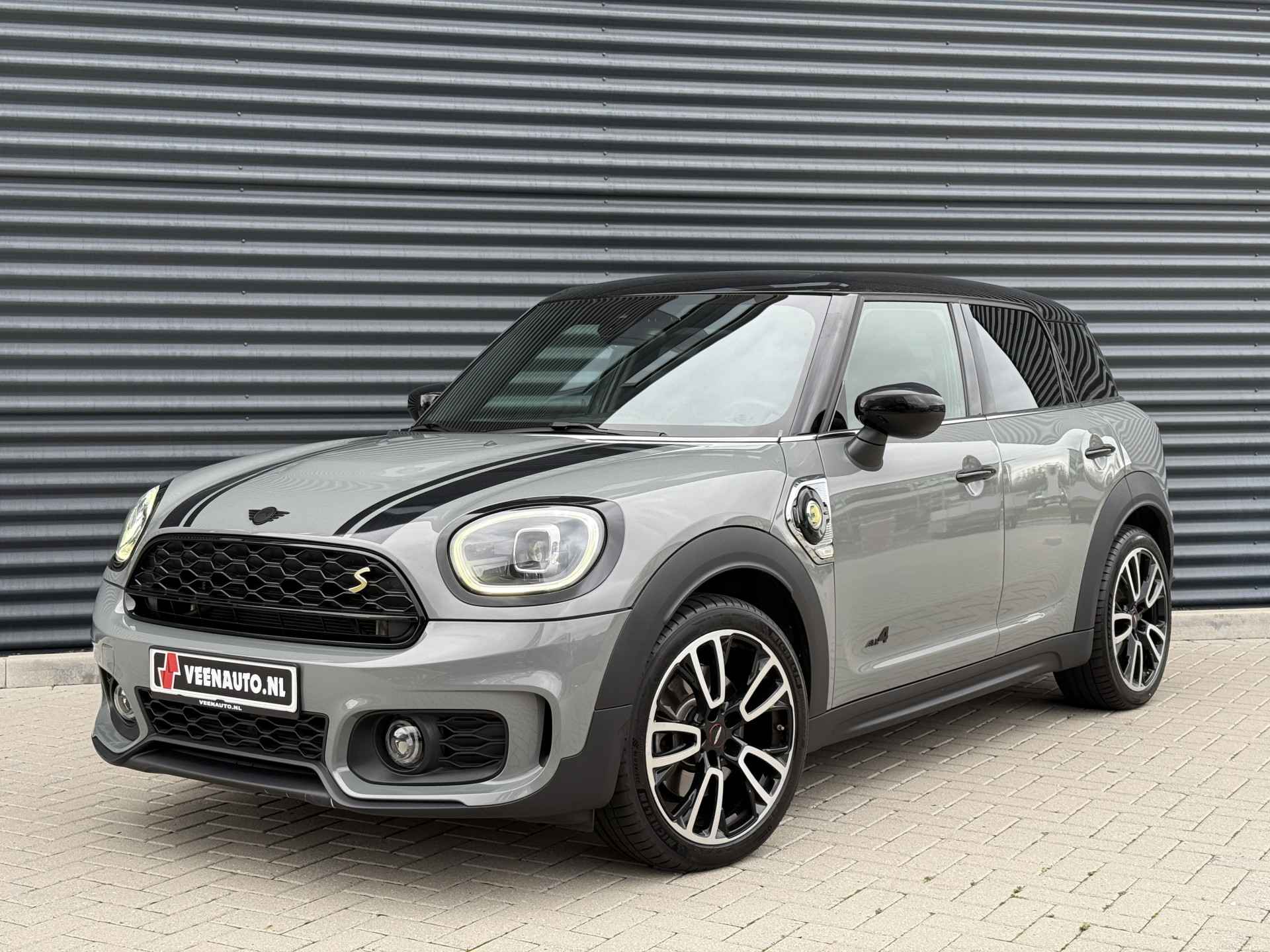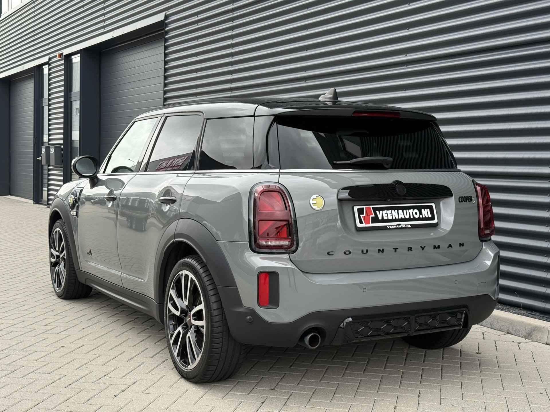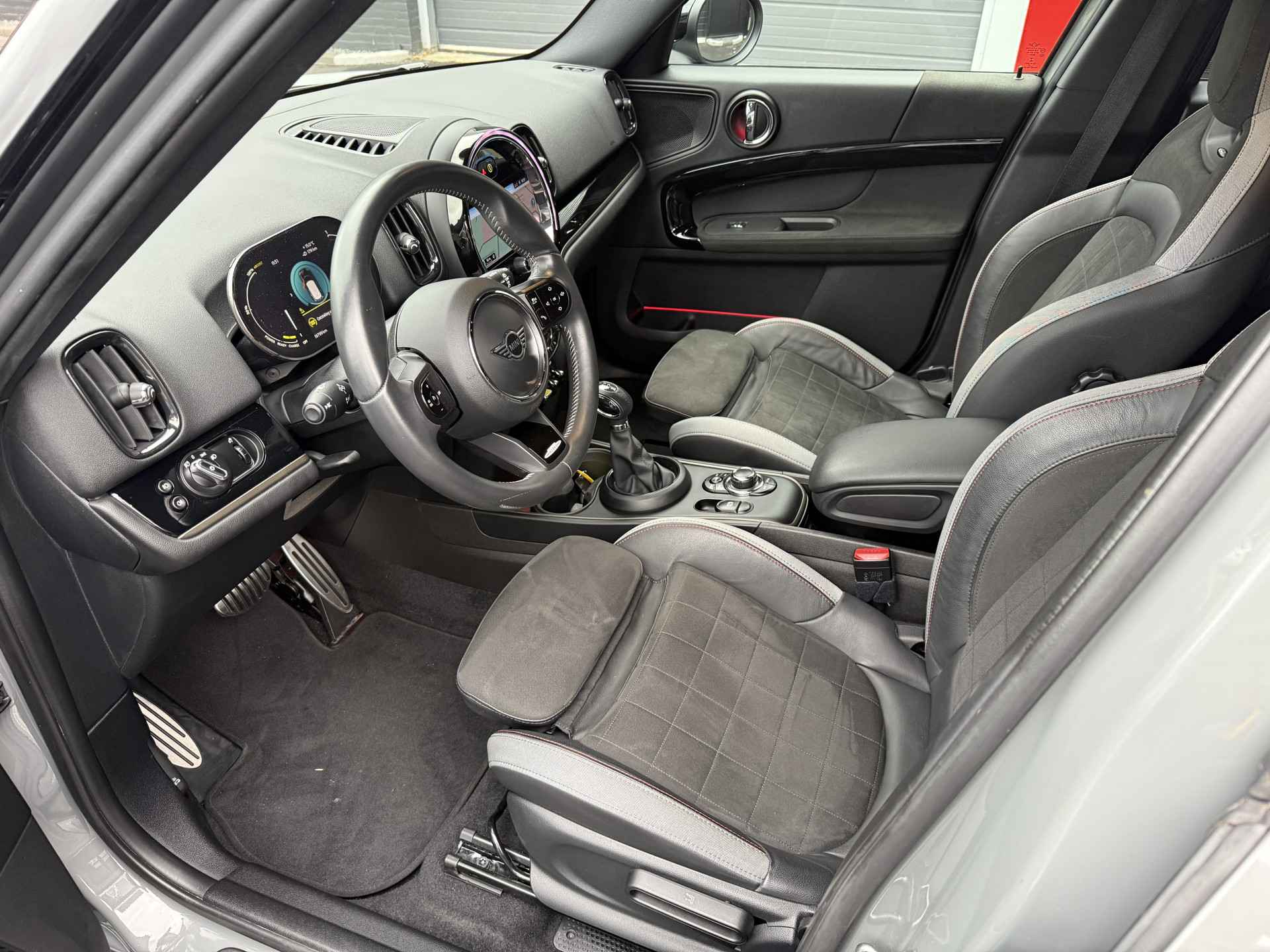 Schitterende Mini Countryman SE Plug in Hybride John Cooper Works in Moonwalk Grey metallic met Black Optic pakket en 19 inch JCW licht metalen velgen. De Mini is voorzien van veel gave opties zoals: Apple carplay, achteruitrijcamera, navigatie, keyless entry, virtuele cockpit, stoelverwarming, parkeersensoren , draadloze telefoonlader, LED sfeer interieur verlichting, cruise control, etc..