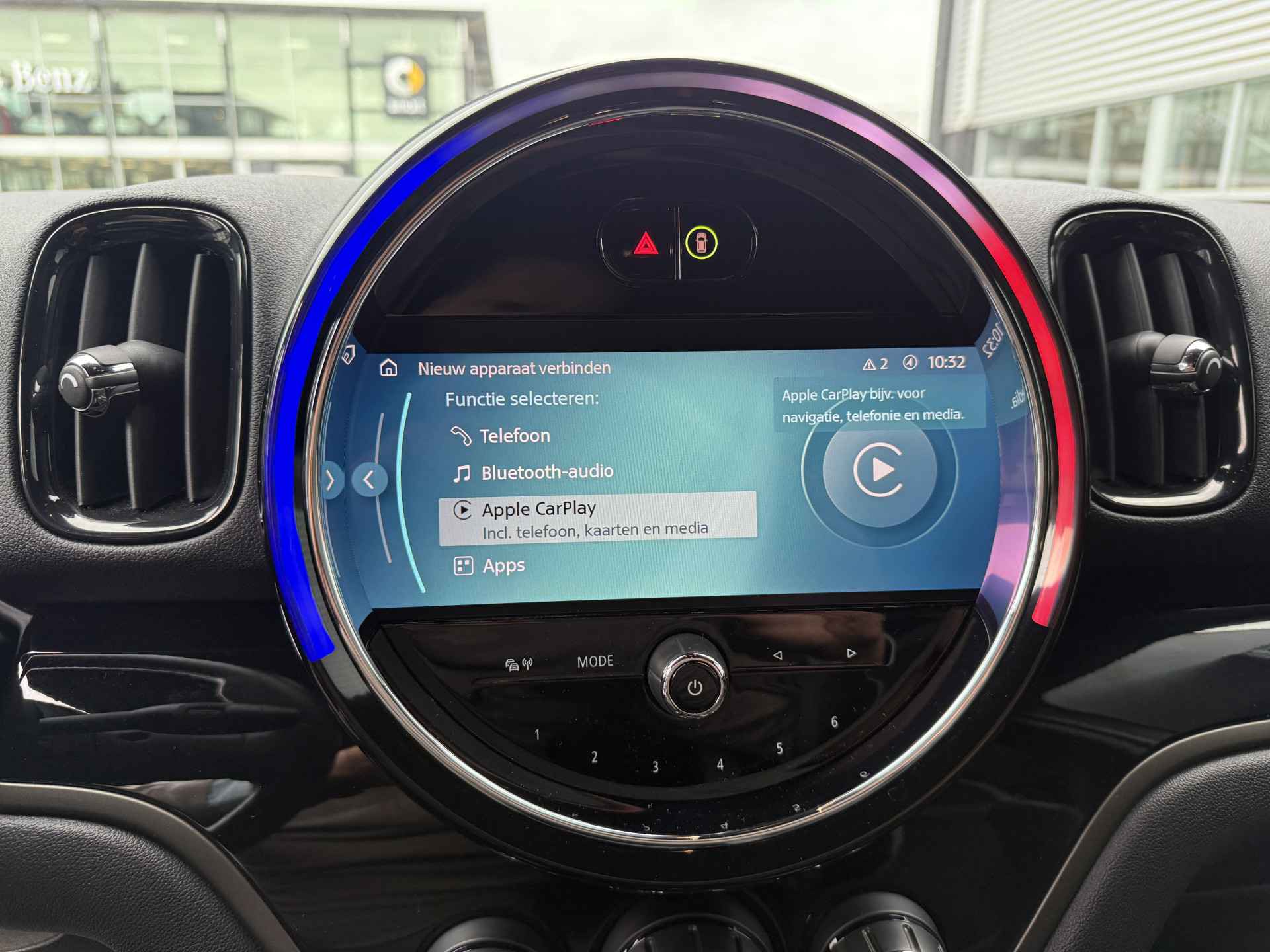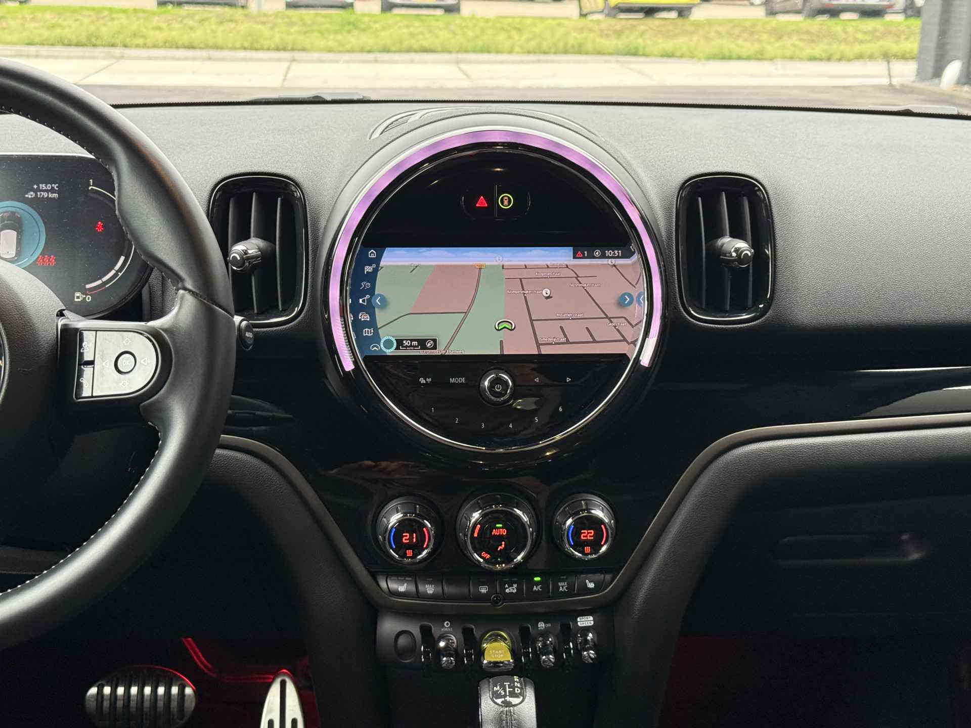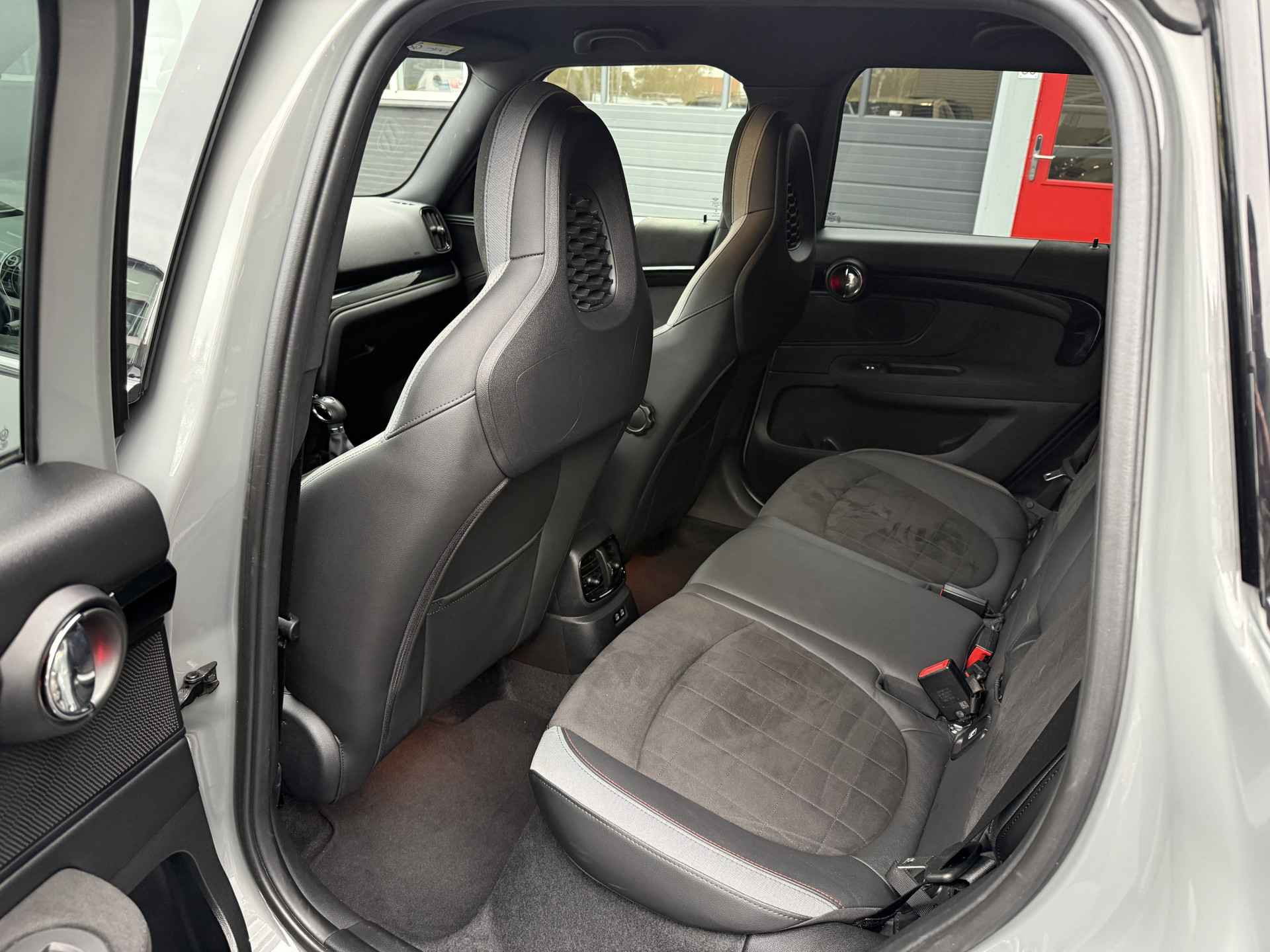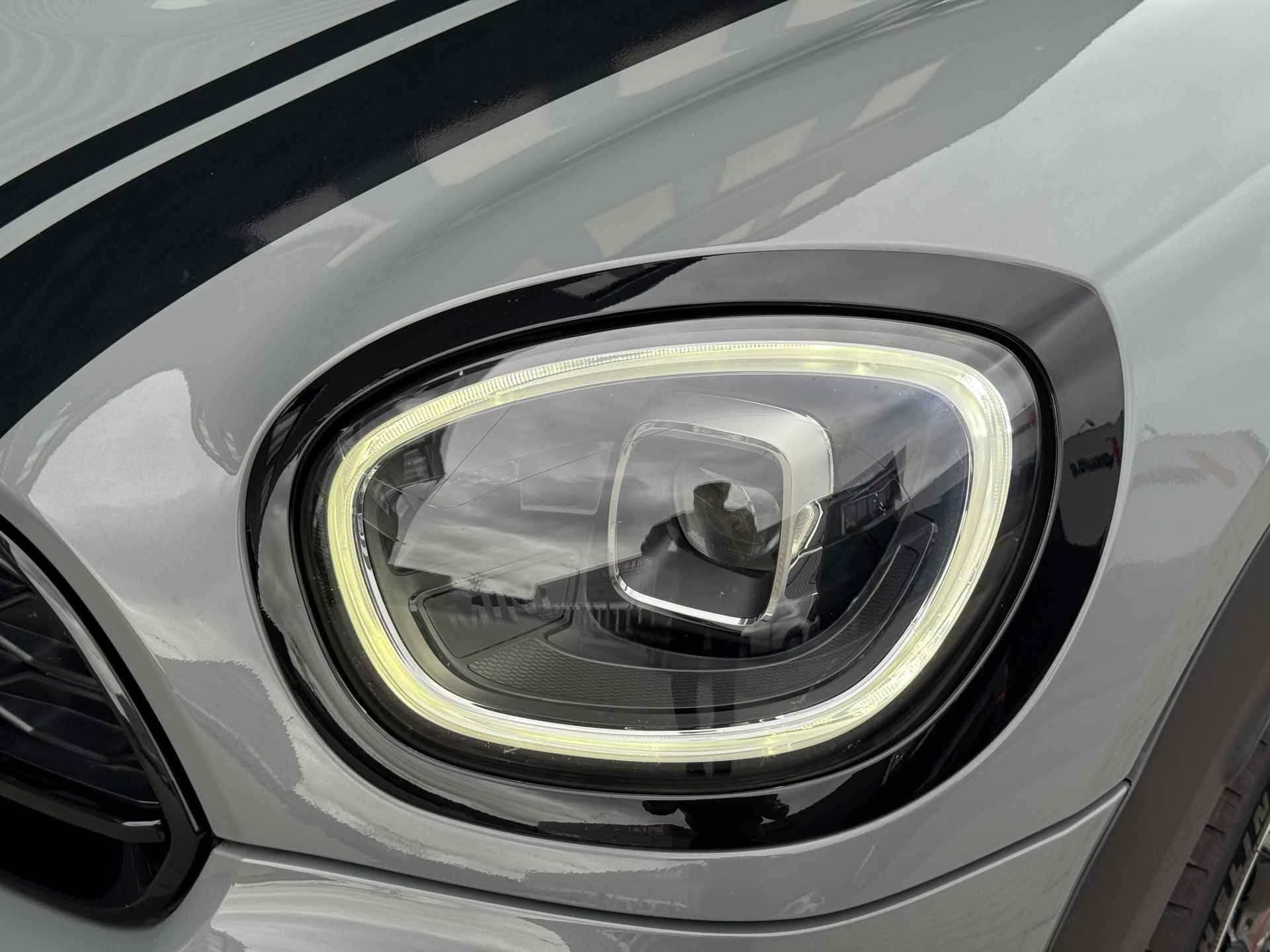 Schitterende Mini Countryman SE Plug in Hybride John Cooper Works in Moonwalk Grey metallic met Black Optic pakket en 19 inch JCW licht metalen velgen. De Mini is voorzien van veel gave opties zoals: Apple carplay, achteruitrijcamera, navigatie, keyless entry, virtuele cockpit, stoelverwarming, parkeersensoren , draadloze telefoonlader, LED sfeer interieur verlichting, cruise control, etc..
