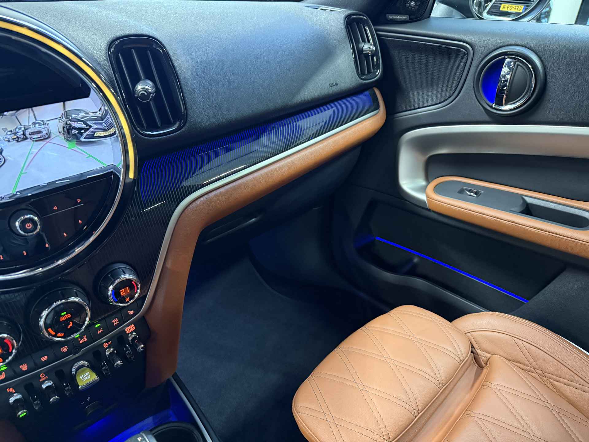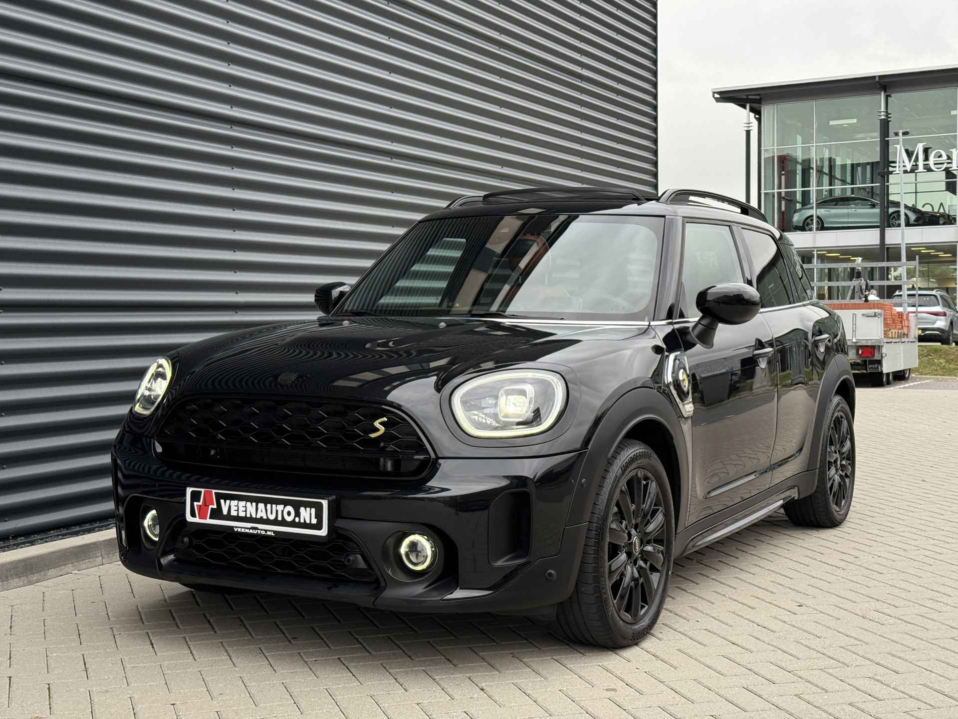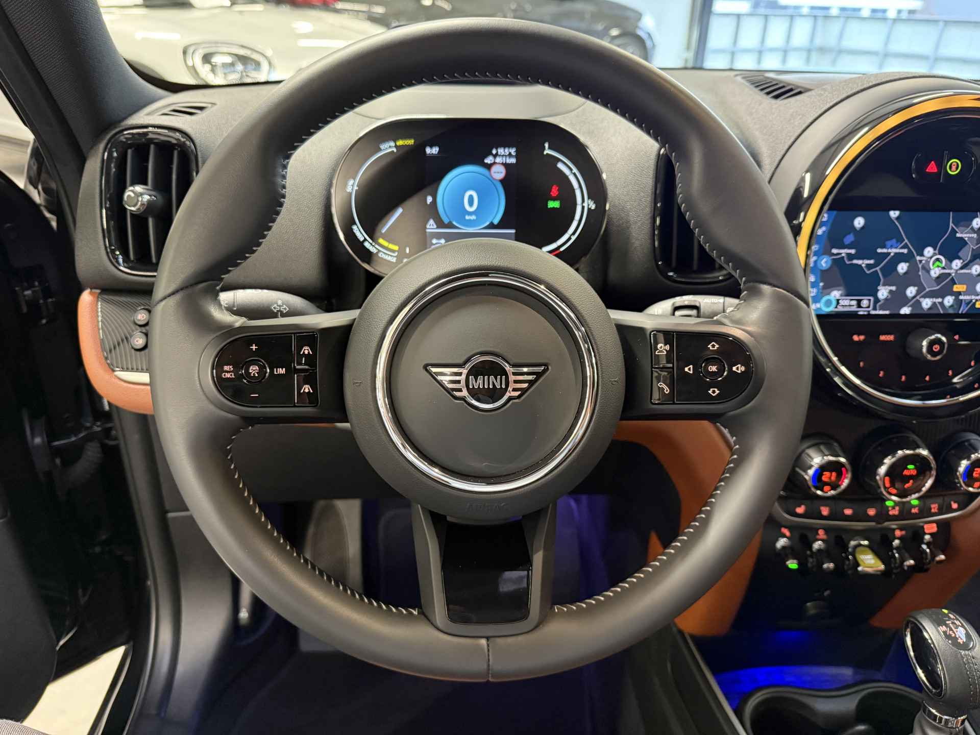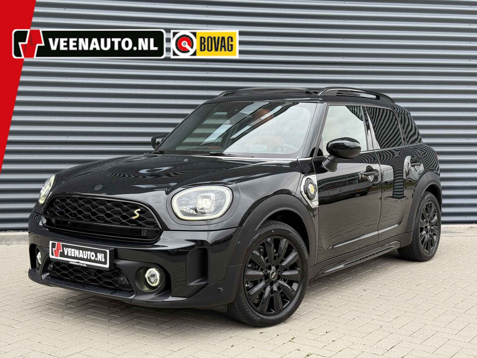 Schitterende Mini Countryman 2.0 Cooper SE ALL4 Plug in Hybrid in Midnight Black metallic met Black optic pakket en 18 inch hoogglans zwarte licht metalen velgen. Deze Mini is bijzonder compleet uitgerust met onder andere de volgende opties: Panorama dak, Harman Kardon Audio, elektrische bedienbare voorstoelen met memory, stoelverwarming, Chester Malt lederen bekleding, LED sfeer interieur verlichtingspakket, Apple Carplay, achteruitrijcamera, navigatie, virtuele cockpit, Head Up display, adaptieve cruise control, keyless entry, parkeersensoren voor + achter met parkeer assistent, etc..