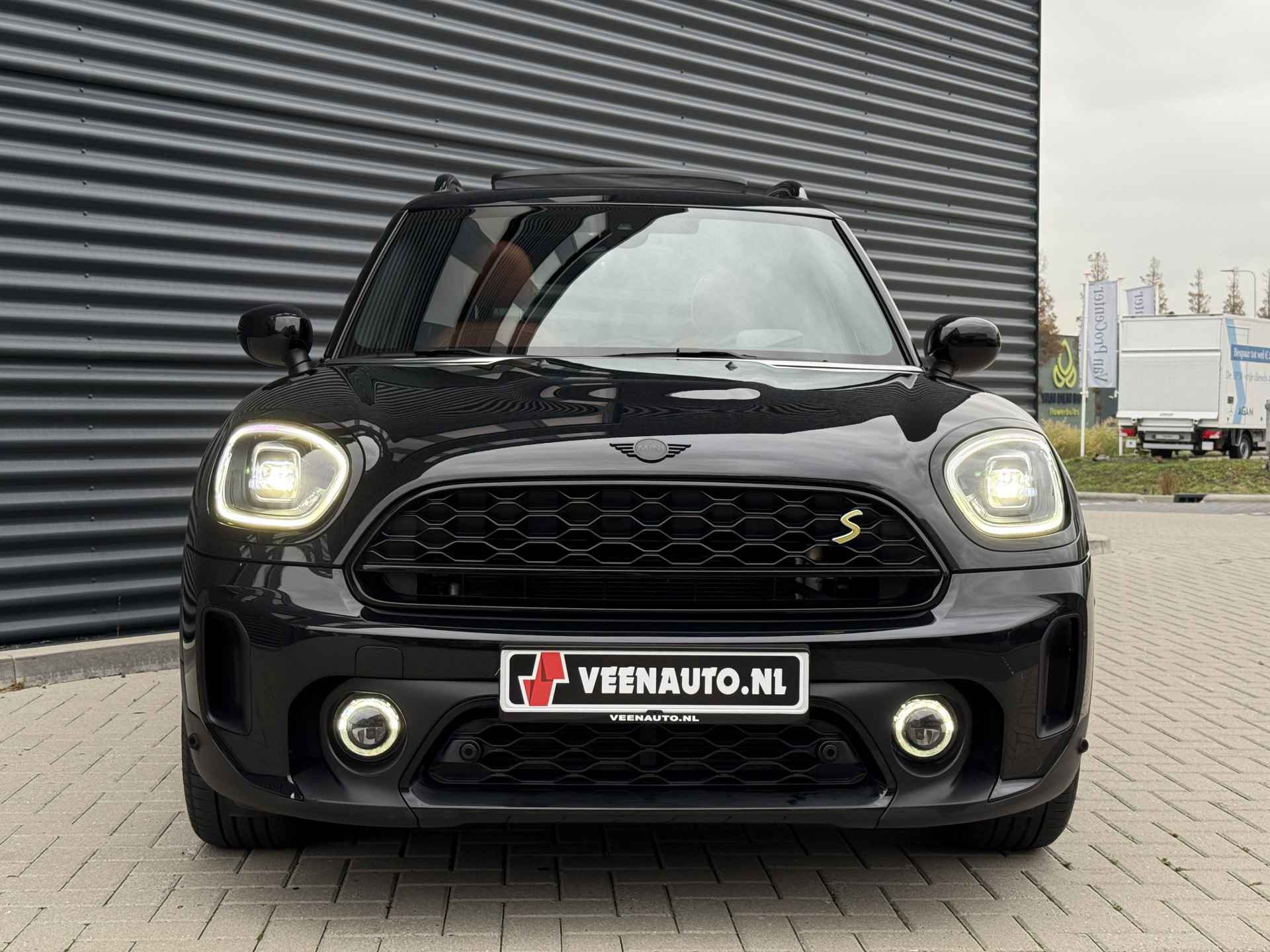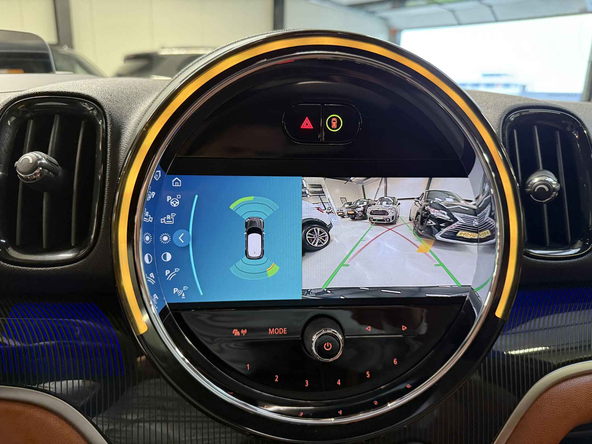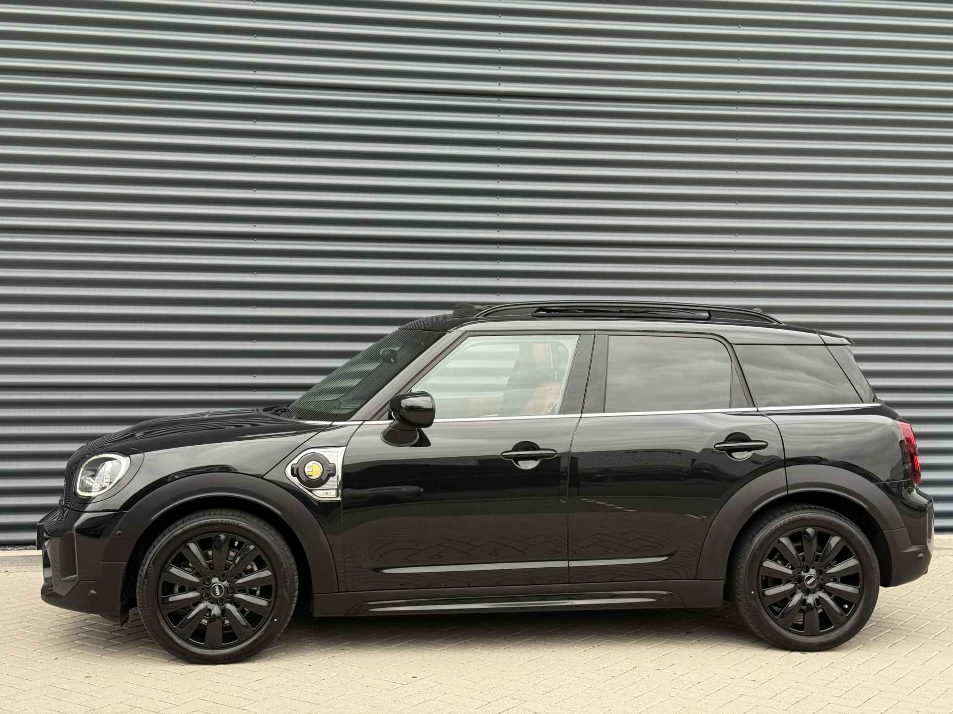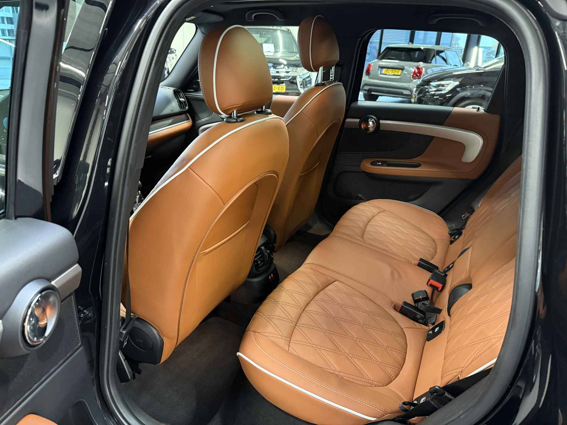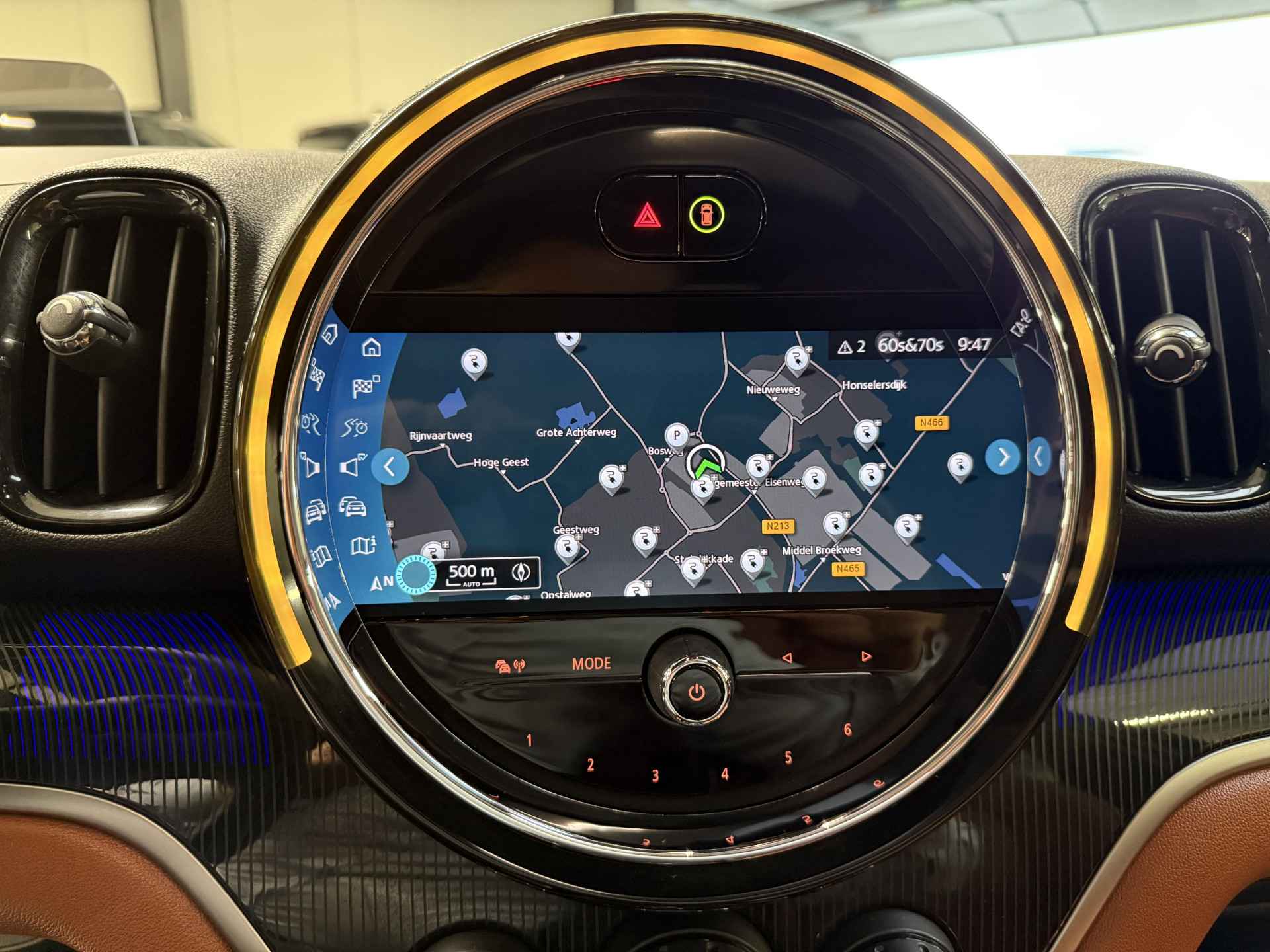 Schitterende Mini Countryman 2.0 Cooper SE ALL4 Plug in Hybrid in Midnight Black metallic met Black optic pakket en 18 inch hoogglans zwarte licht metalen velgen. Deze Mini is bijzonder compleet uitgerust met onder andere de volgende opties: Panorama dak, Harman Kardon Audio, elektrische bedienbare voorstoelen met memory, stoelverwarming, Chester Malt lederen bekleding, LED sfeer interieur verlichtingspakket, Apple Carplay, achteruitrijcamera, navigatie, virtuele cockpit, Head Up display, adaptieve cruise control, keyless entry, parkeersensoren voor + achter met parkeer assistent, etc..