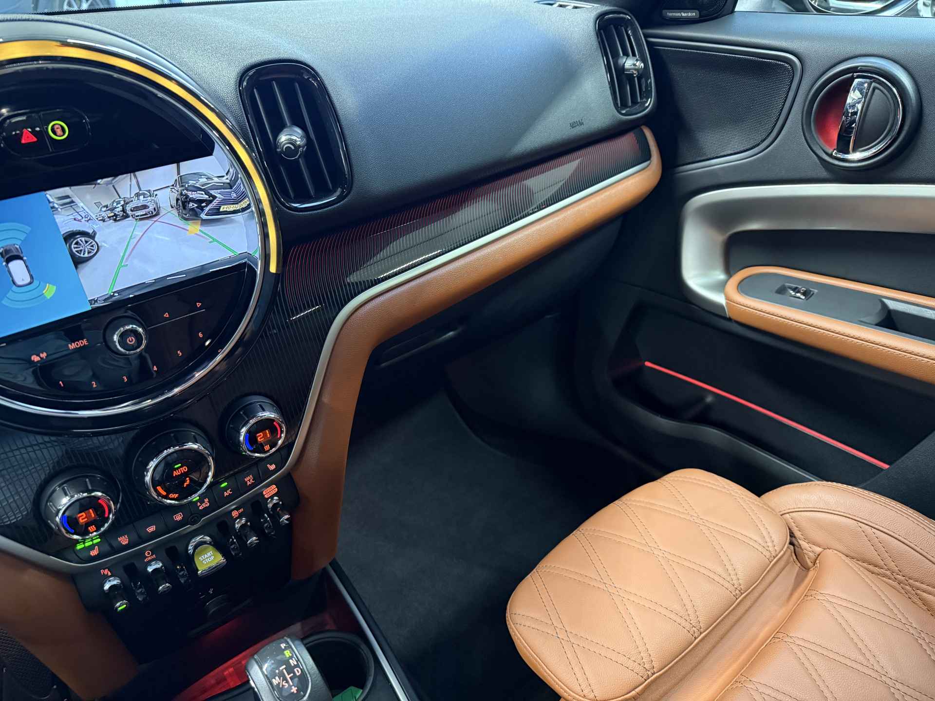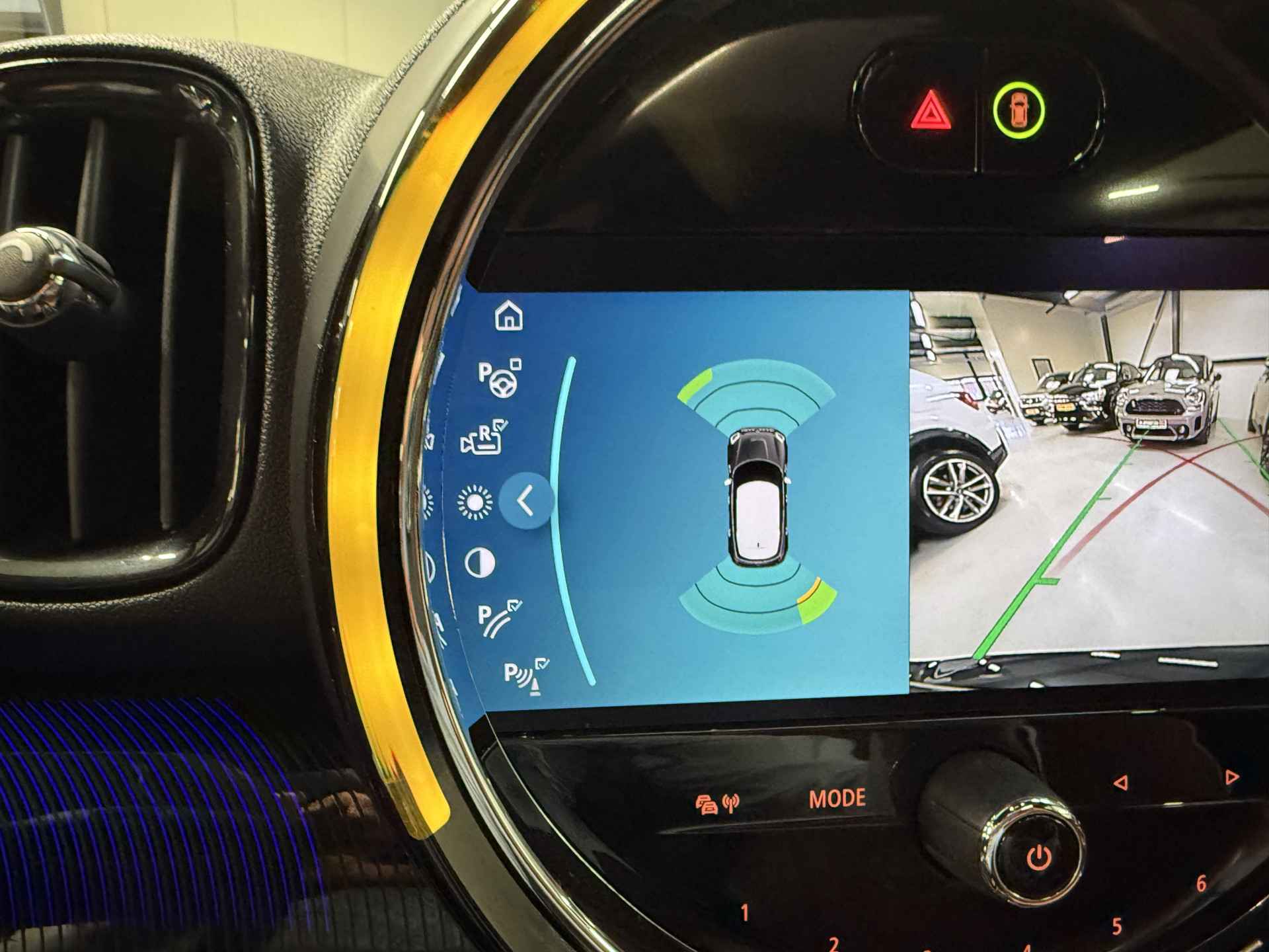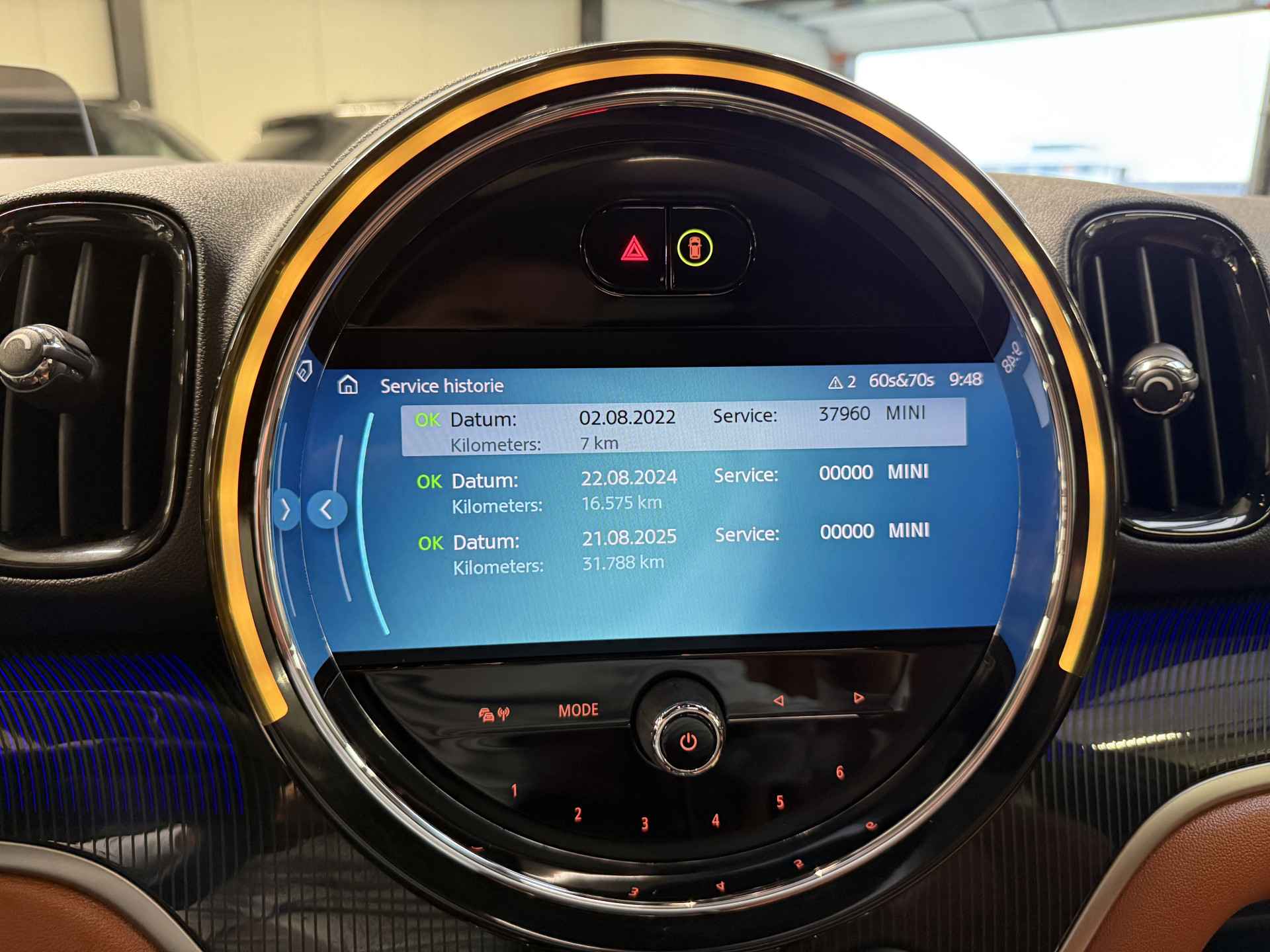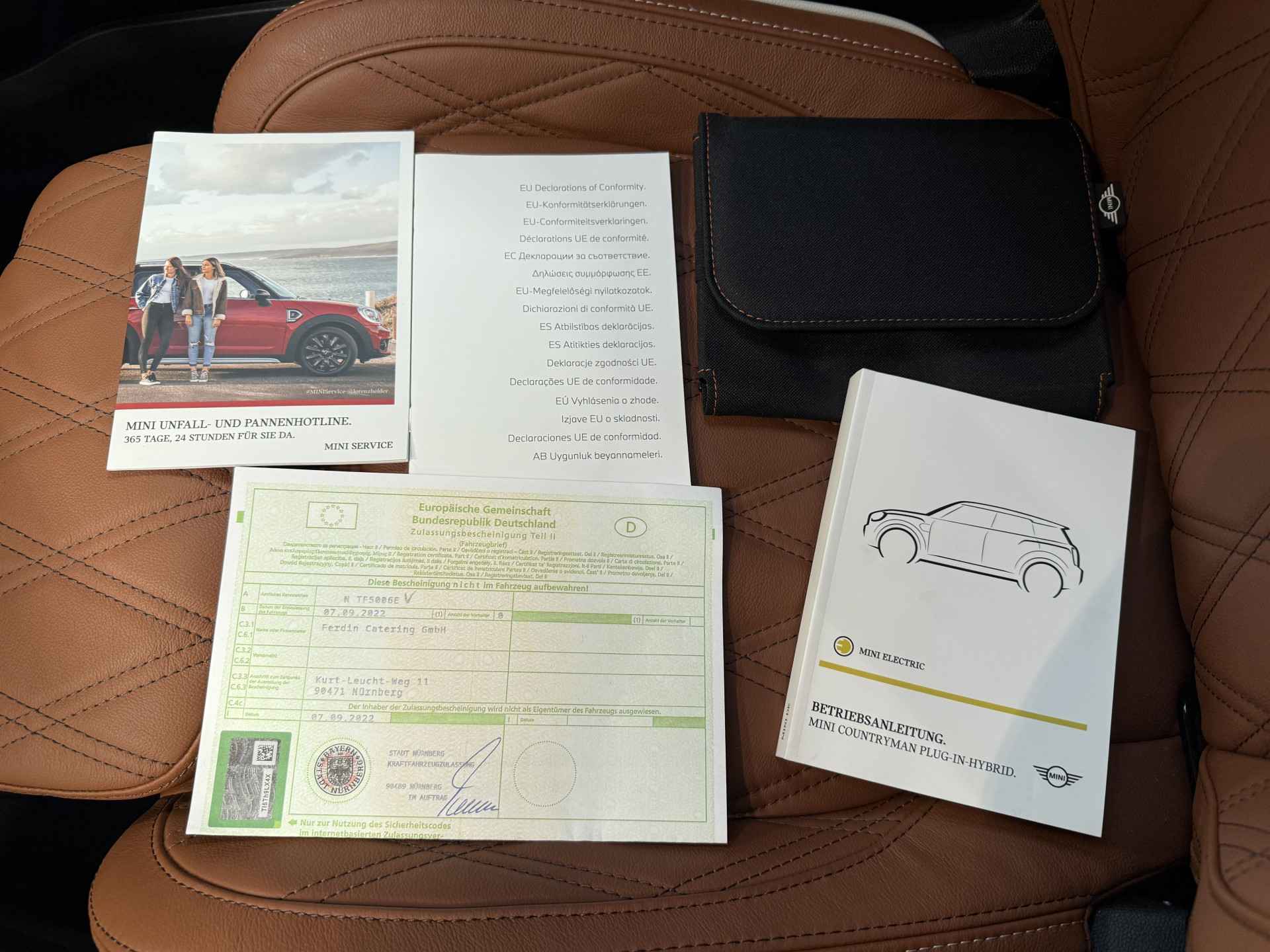 Schitterende Mini Countryman 2.0 Cooper SE ALL4 Plug in Hybrid in Midnight Black metallic met Black optic pakket en 18 inch hoogglans zwarte licht metalen velgen. Deze Mini is bijzonder compleet uitgerust met onder andere de volgende opties: Panorama dak, Harman Kardon Audio, elektrische bedienbare voorstoelen met memory, stoelverwarming, Chester Malt lederen bekleding, LED sfeer interieur verlichtingspakket, Apple Carplay, achteruitrijcamera, navigatie, virtuele cockpit, Head Up display, adaptieve cruise control, keyless entry, parkeersensoren voor + achter met parkeer assistent, etc..