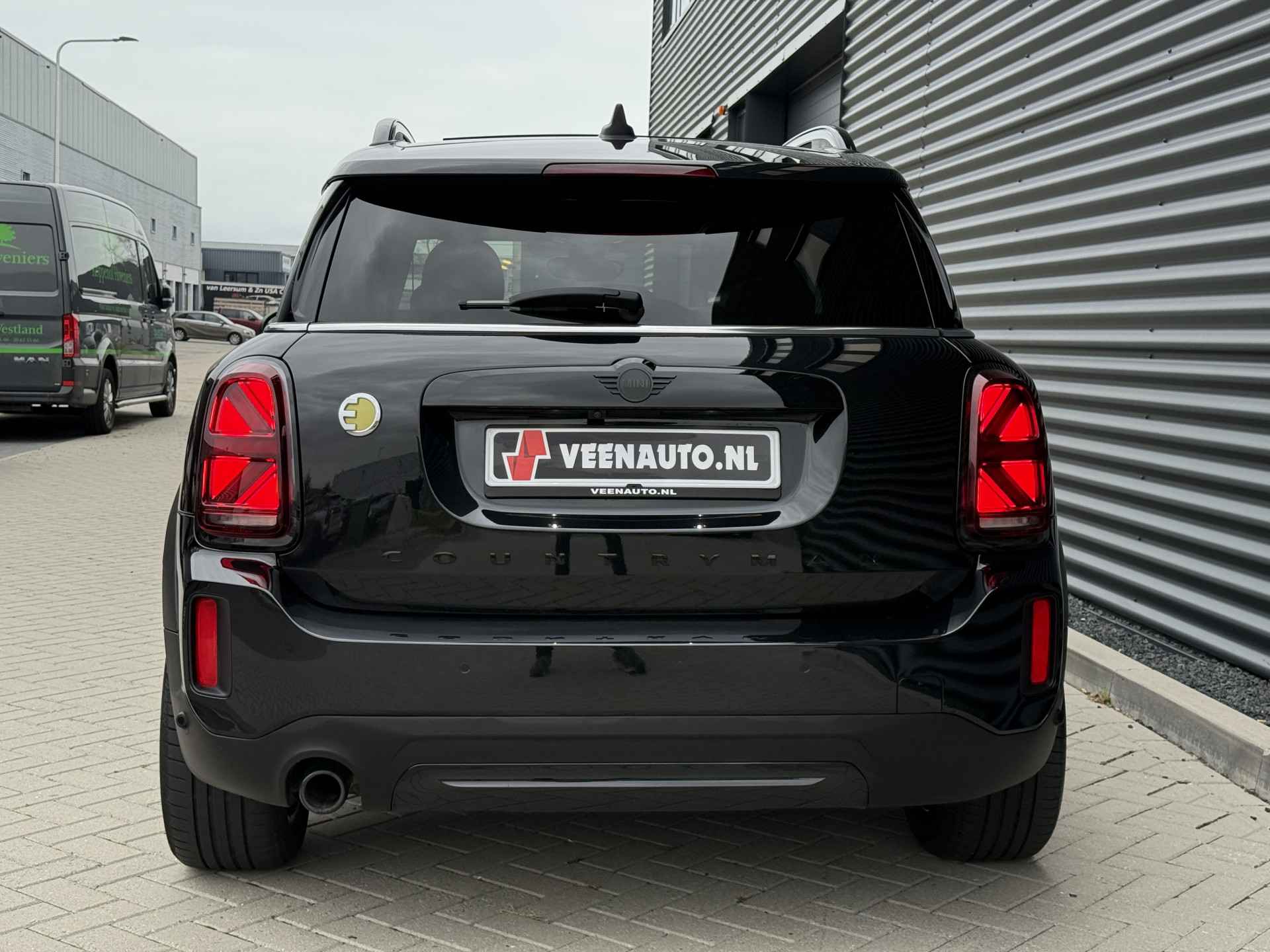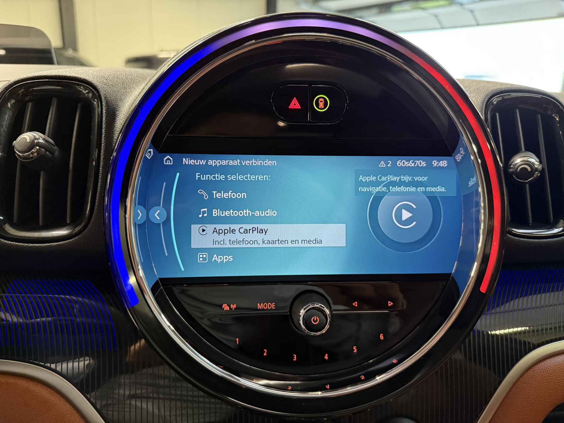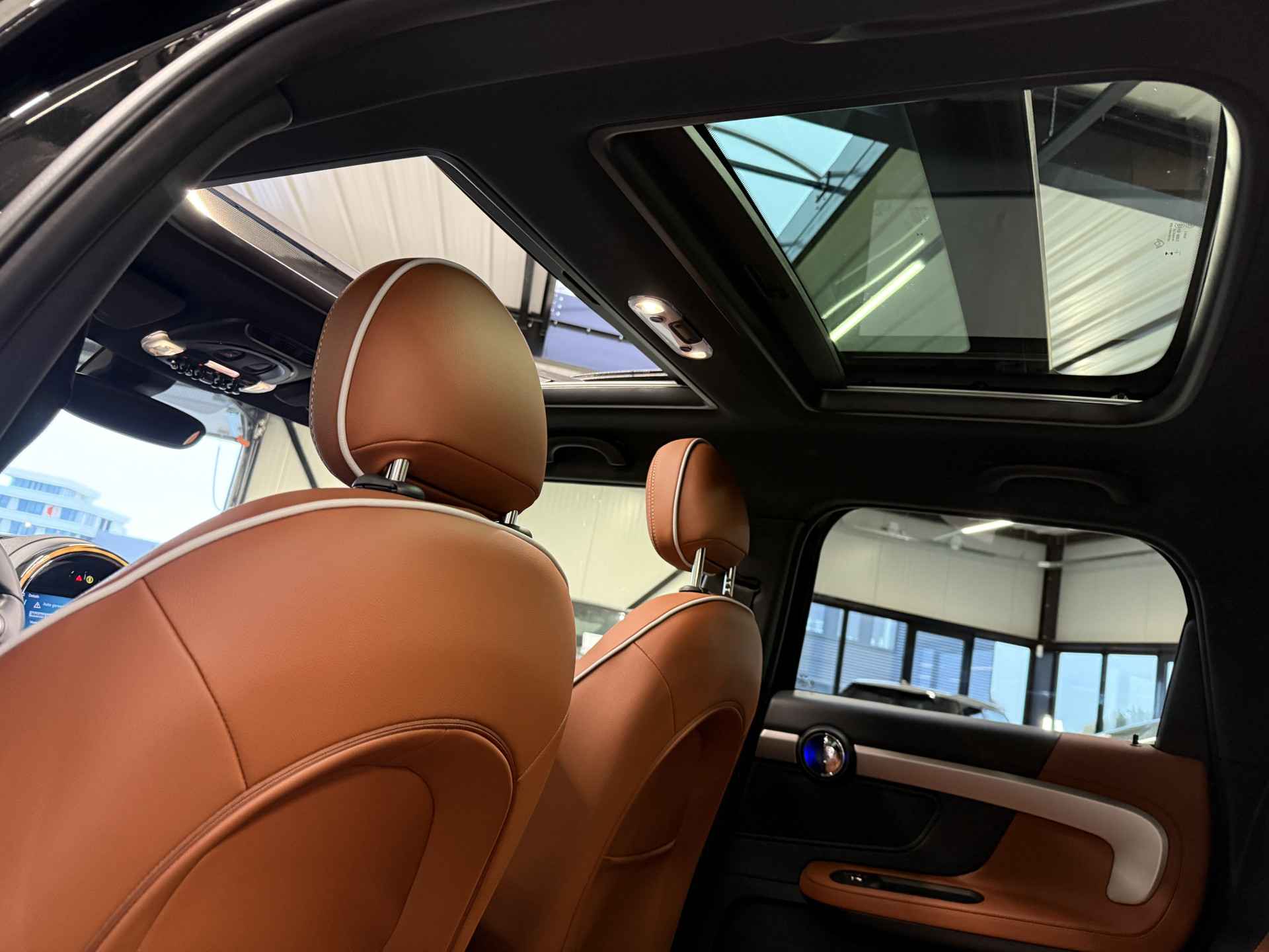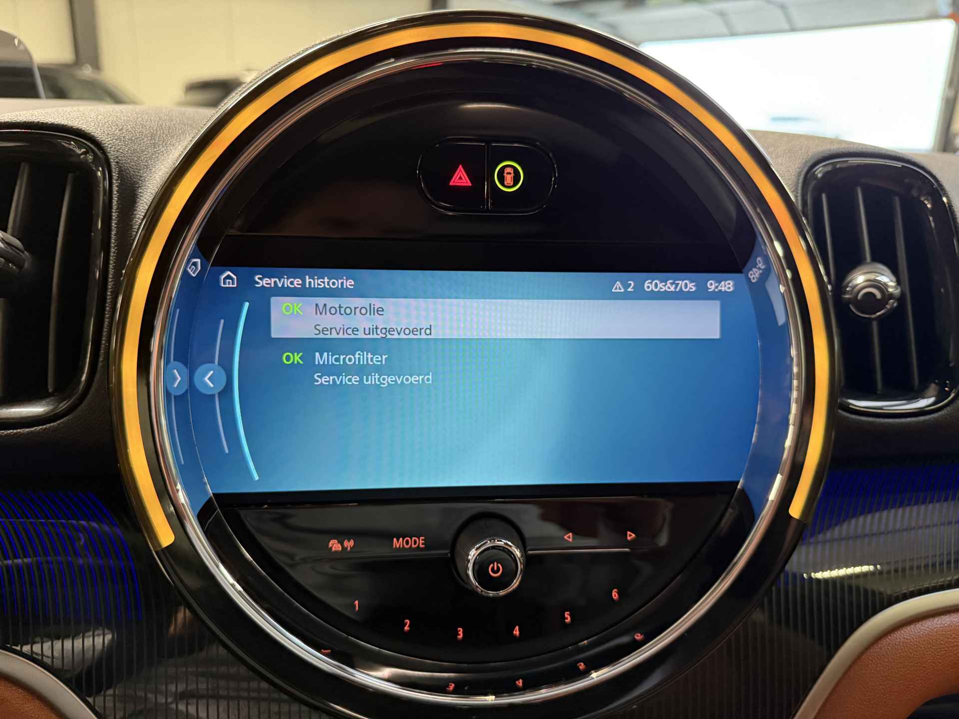 Schitterende Mini Countryman 2.0 Cooper SE ALL4 Plug in Hybrid in Midnight Black metallic met Black optic pakket en 18 inch hoogglans zwarte licht metalen velgen. Deze Mini is bijzonder compleet uitgerust met onder andere de volgende opties: Panorama dak, Harman Kardon Audio, elektrische bedienbare voorstoelen met memory, stoelverwarming, Chester Malt lederen bekleding, LED sfeer interieur verlichtingspakket, Apple Carplay, achteruitrijcamera, navigatie, virtuele cockpit, Head Up display, adaptieve cruise control, keyless entry, parkeersensoren voor + achter met parkeer assistent, etc..