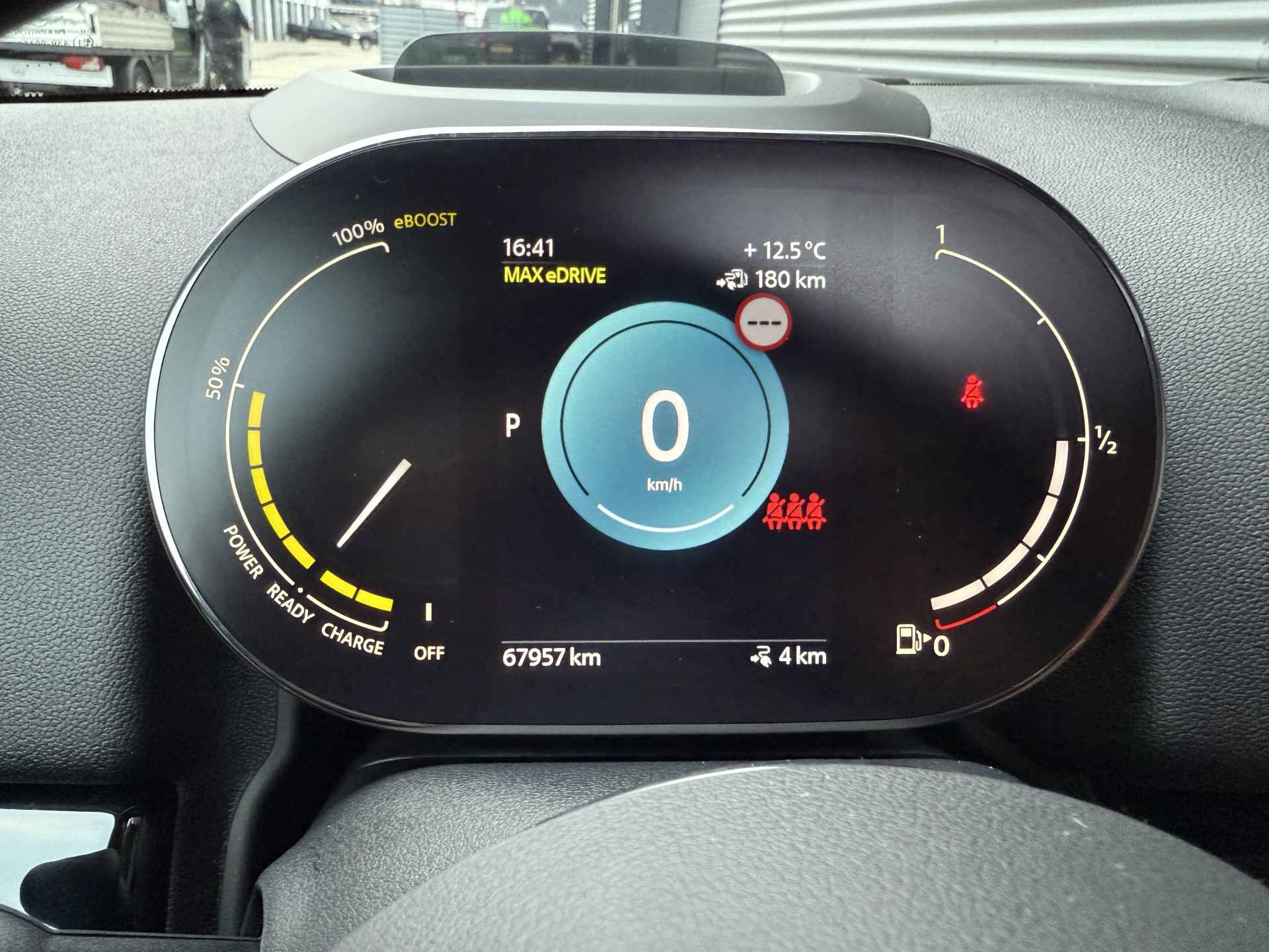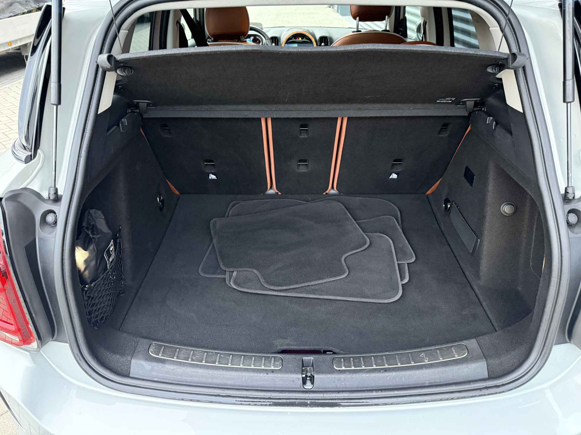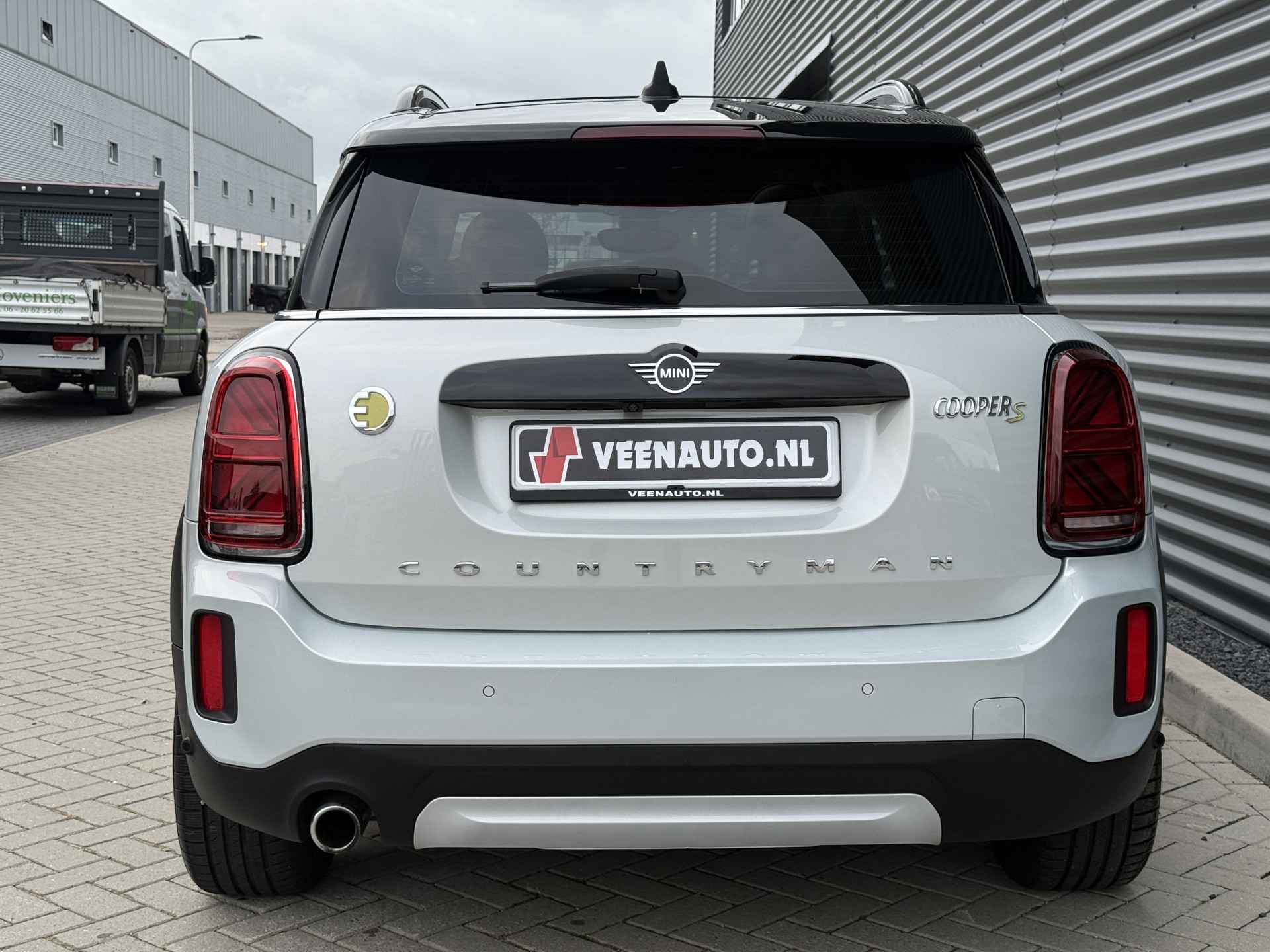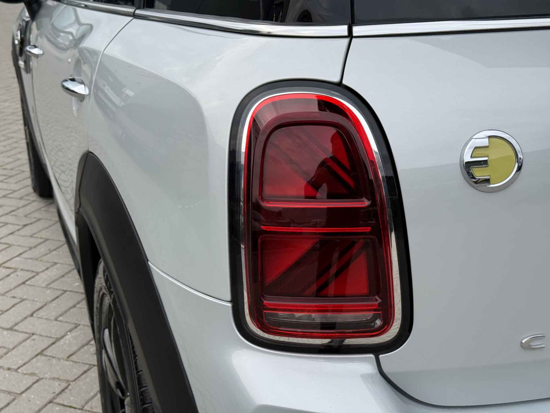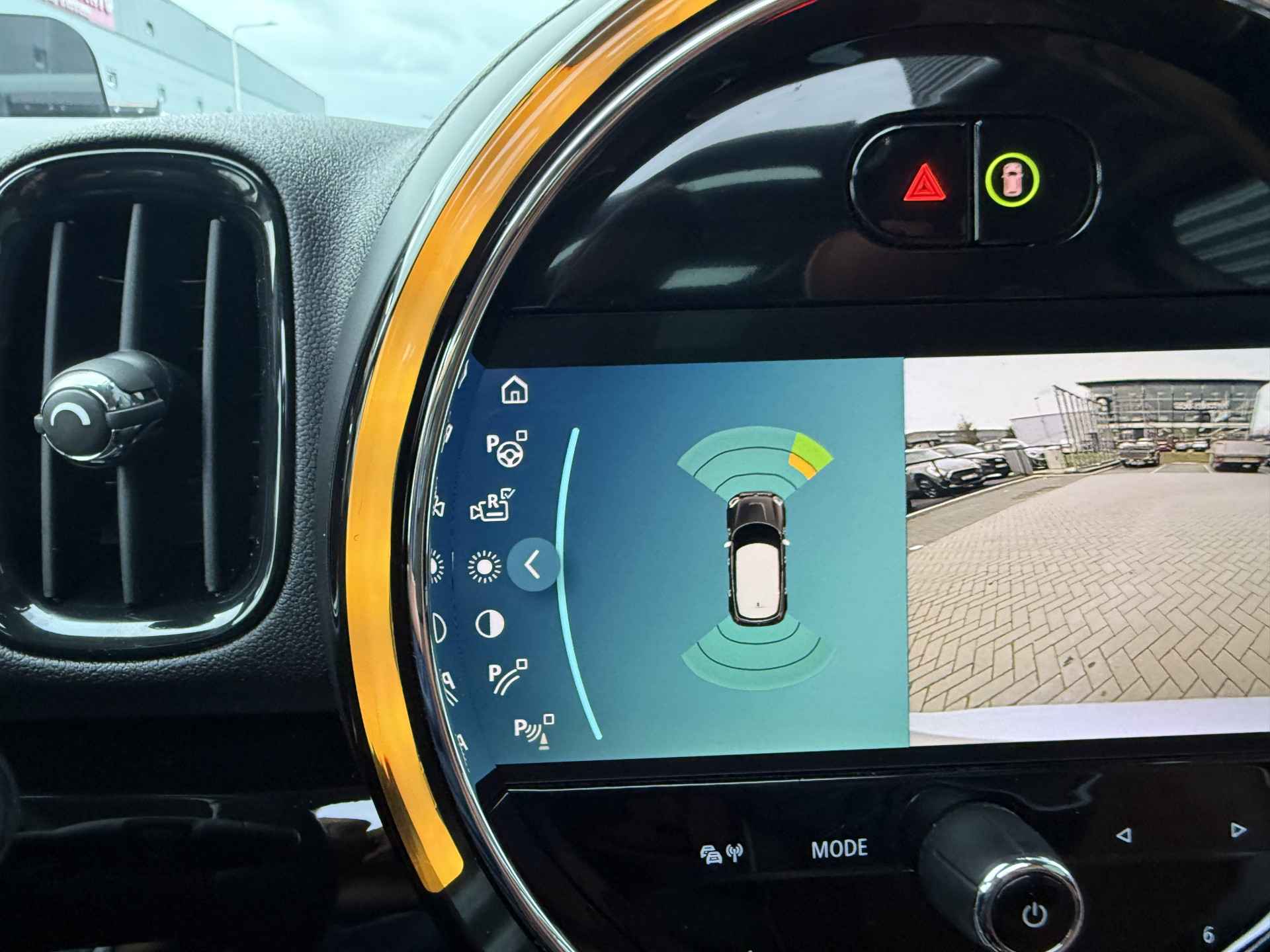 Schitterende Mini Countryman 2.0 Cooper SE ALL4 Plug in Hybrid in White Silver metallic met hoogglans zwarte licht metalen velgen. Deze Mini is bijzonder compleet uitgerust met onder andere de volgende opties: Panorama dak, Chester Malt lederen bekleding, elektrische verstelbare voorstoelen met geheugen,  Harman Kardon Audio, Apple Carplay, achteruitrijcamera, navigatie, virtuele cockpit, Head Up display, adaptieve cruise control, keyless entry, parkeersensoren voor + achter met parkeer assistent, climate control etc..