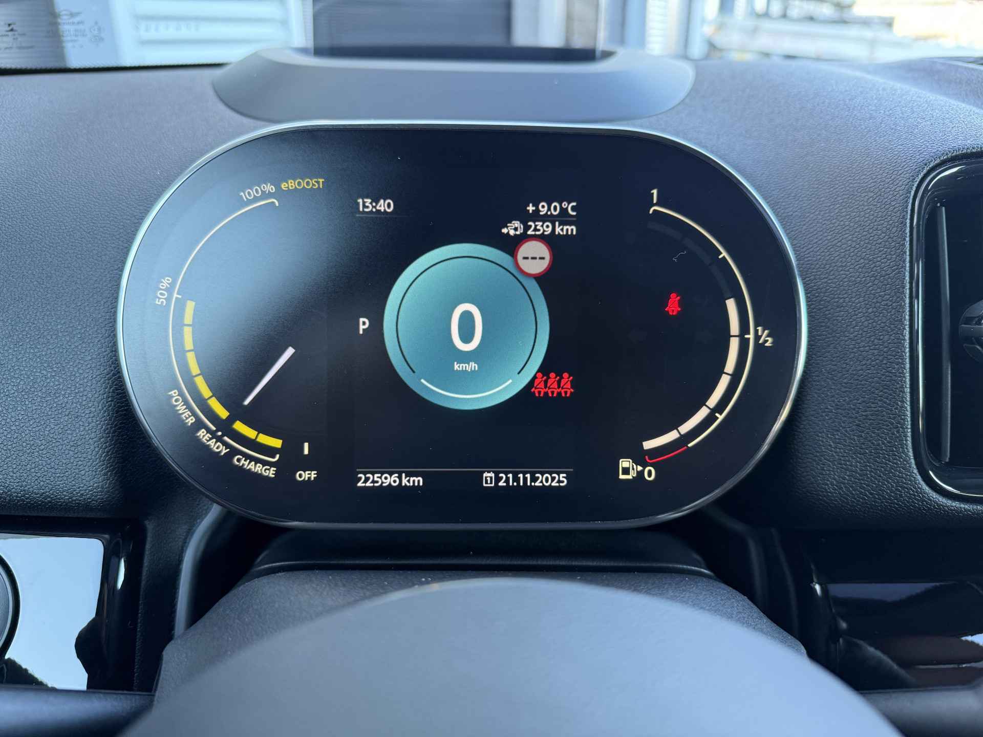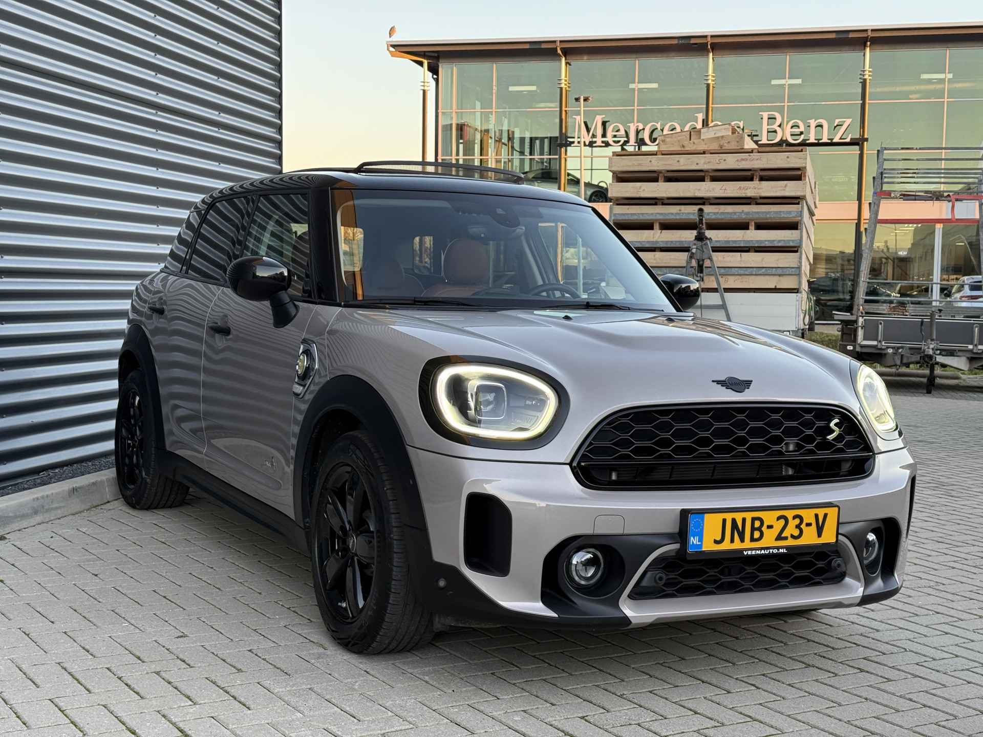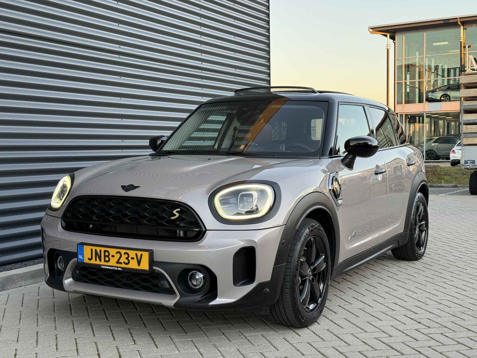 Schitterende Mini Countryman 2.0 Cooper SE ALL4 Plug in Hybrid in Rooftop Grey metallic met hoogglans zwarte licht metalen velgen en Black Optic pakket. Met pas 22-596 KM gereden.