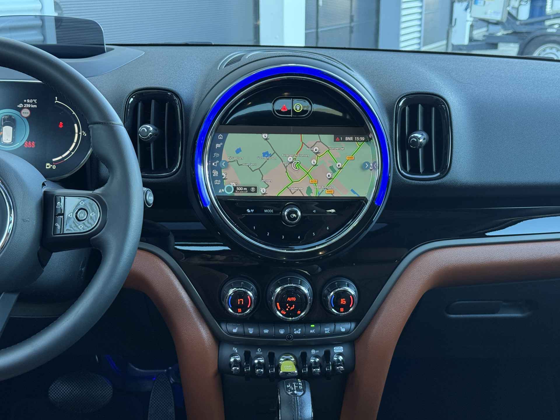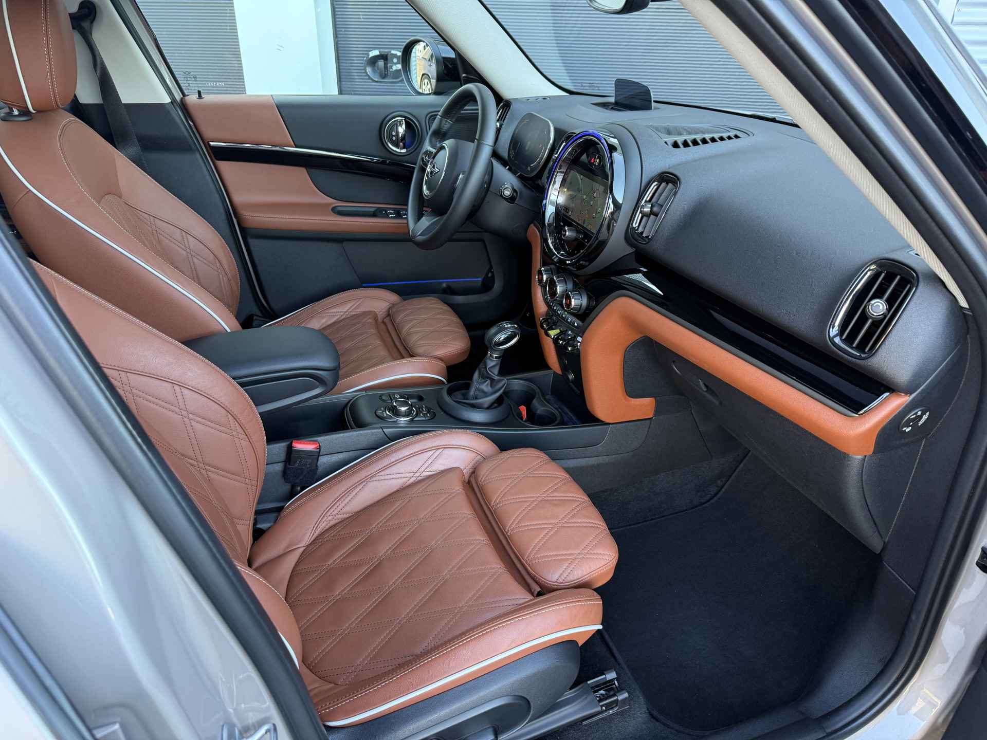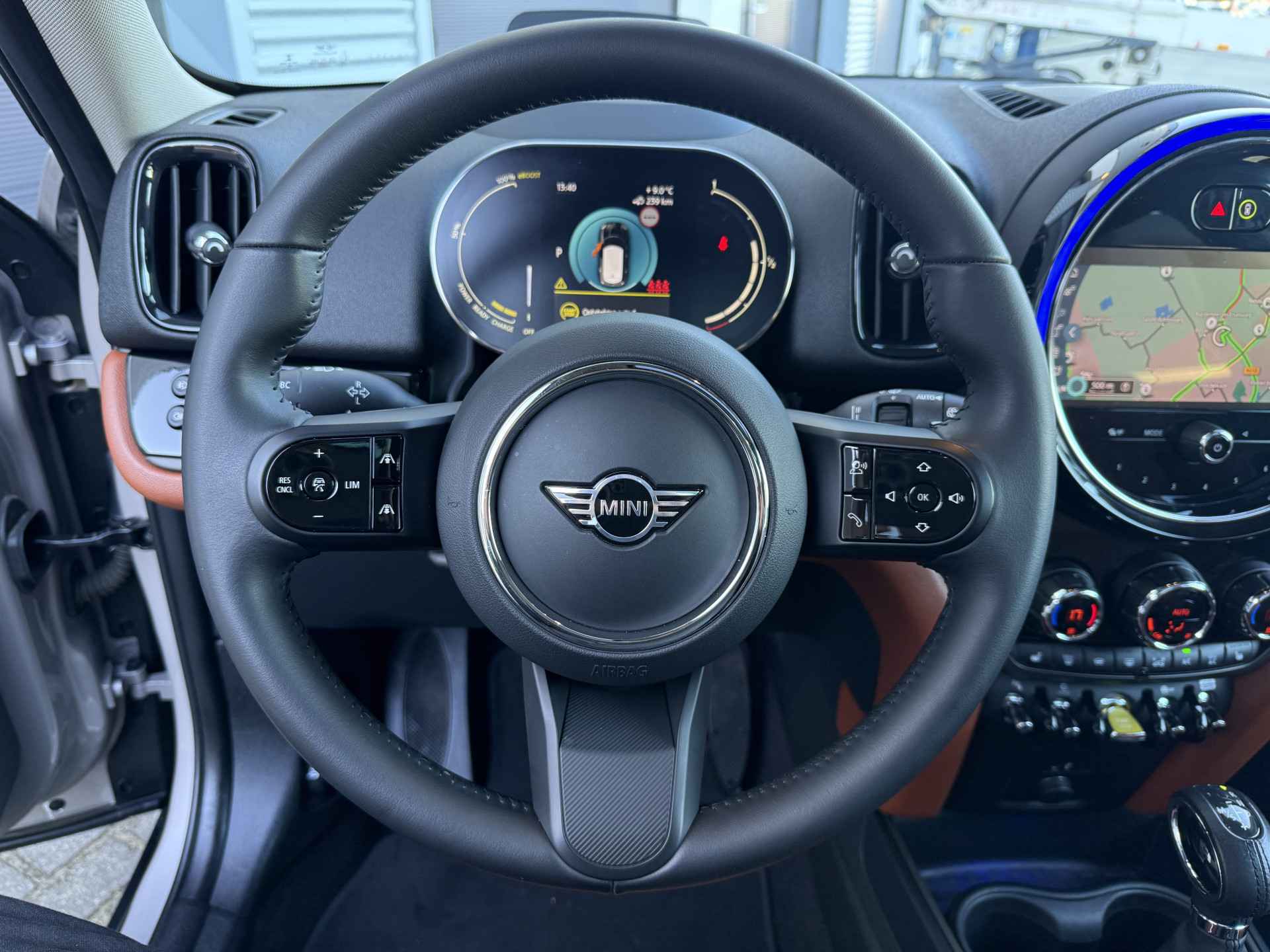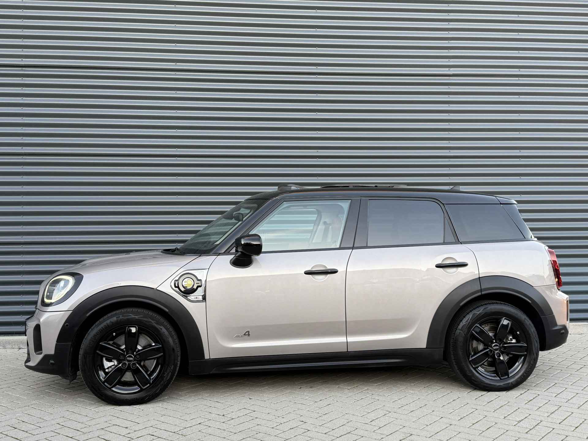 Schitterende Mini Countryman 2.0 Cooper SE ALL4 Plug in Hybrid in Rooftop Grey metallic met hoogglans zwarte licht metalen velgen en Black Optic pakket. Met pas 22-596 KM gereden.