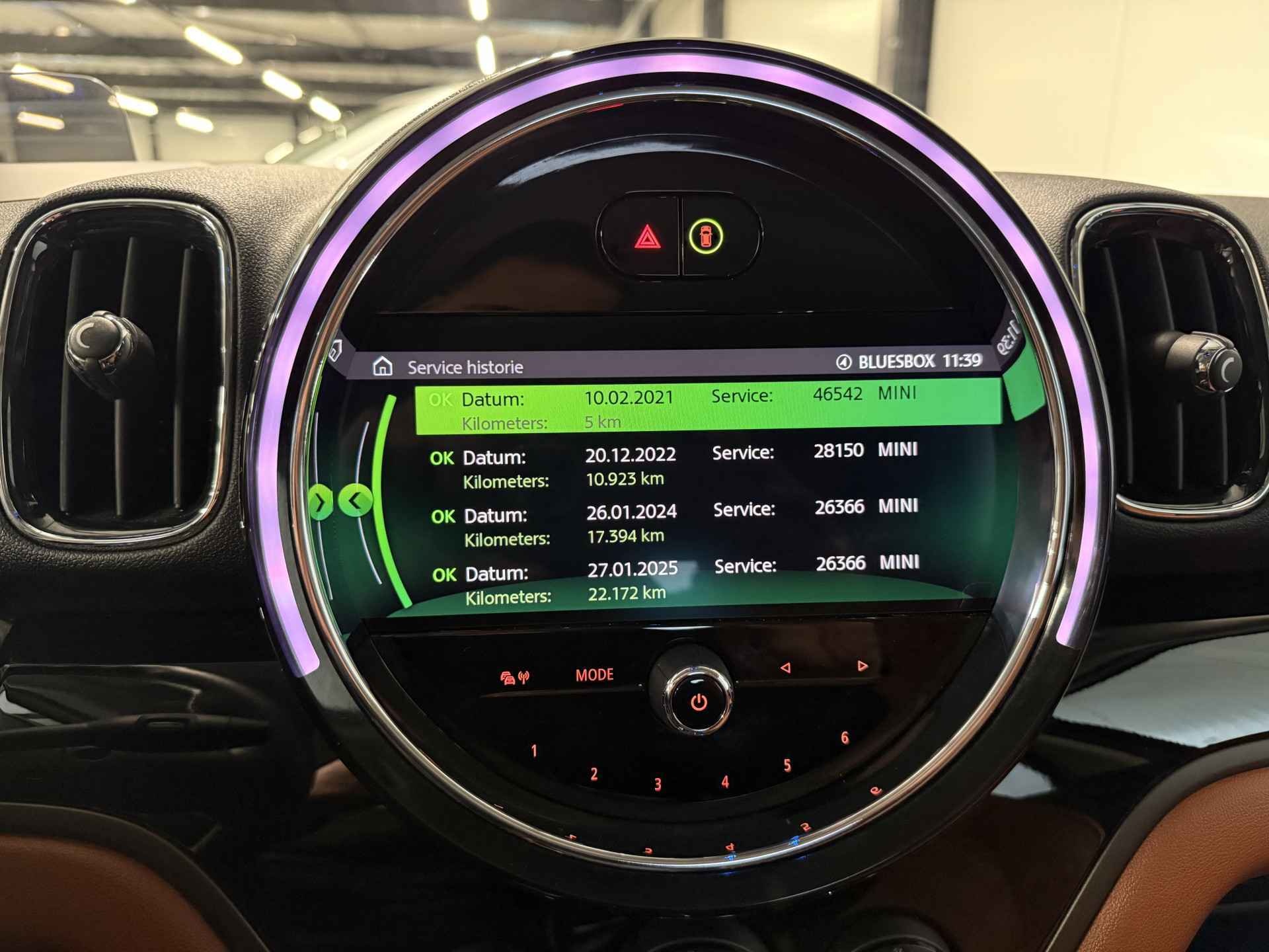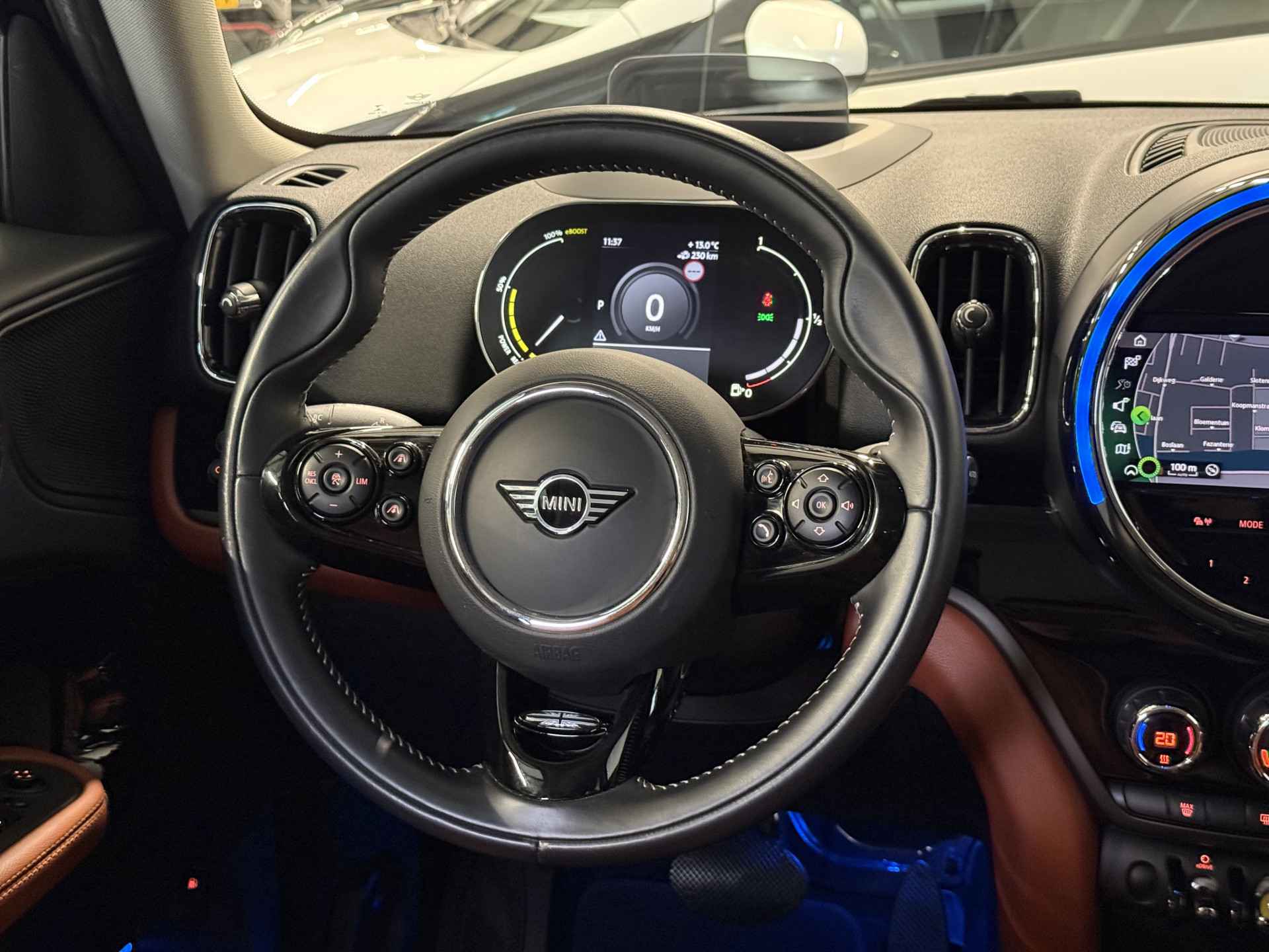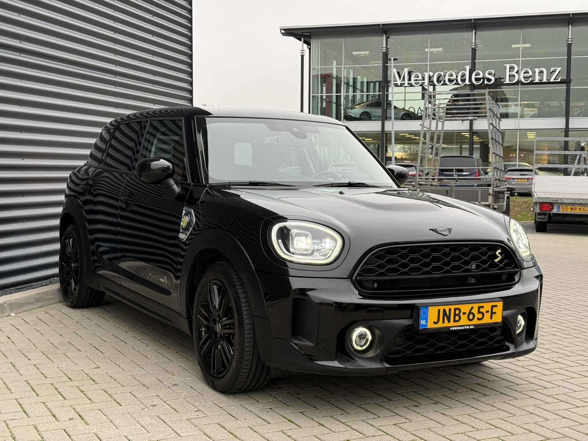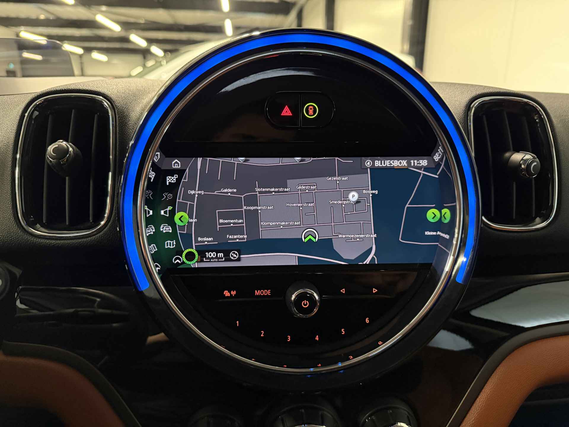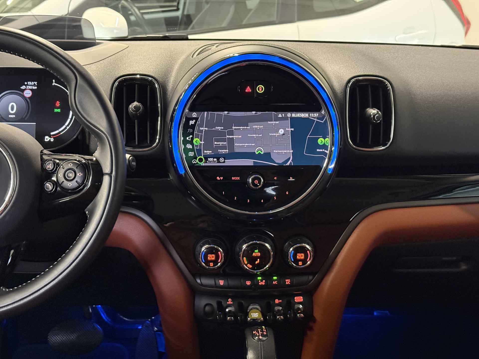 Schitterende Mini Countryman 2.0 Cooper SE ALL4 Plug in Hybrid in Midnight Black metallic met hoogglans zwarte 18 inch licht metalen velgen en Black Optic pakket. Deze Mini is bijzonder compleet uitgerust met onder andere de volgende opties: Chester Malt lederen sport-comfort stoelen, Apple Carplay, achteruitrijcamera, navigatie, virtuele cockpit, Head Up display, adaptieve cruise control, parkeersensoren, climate contol, LED sfeer interieur verlichting, etc..