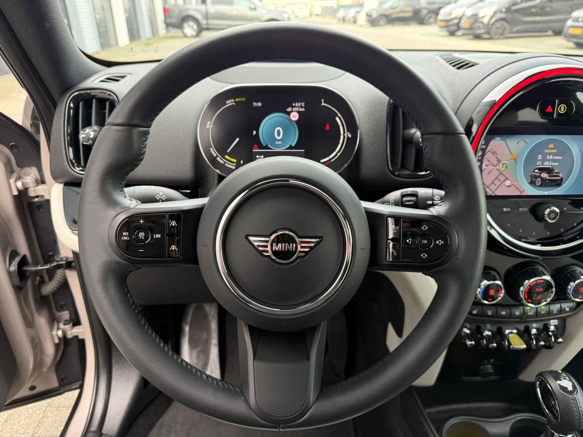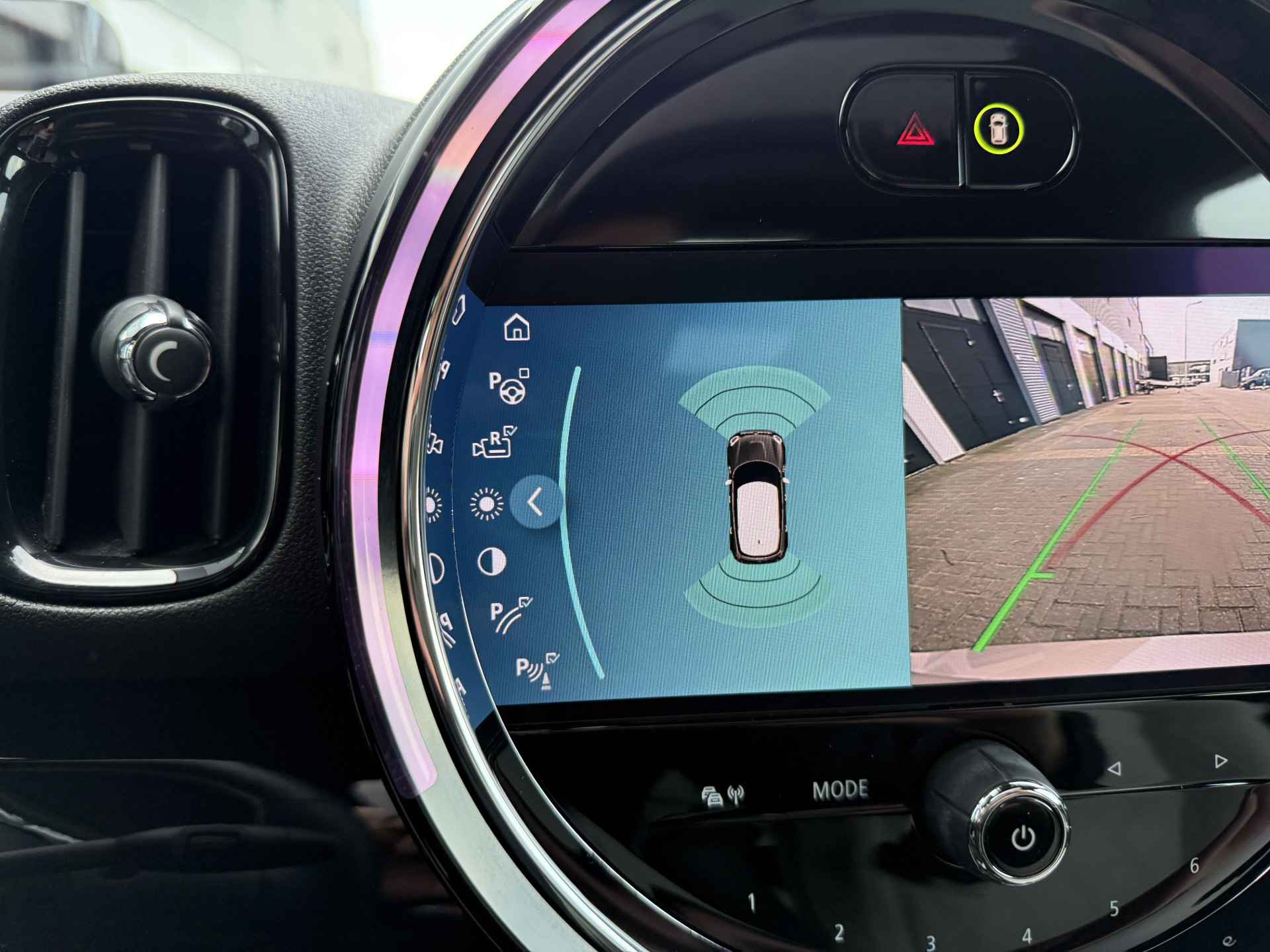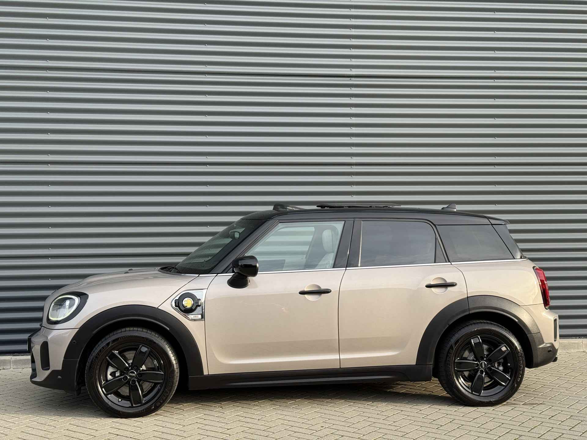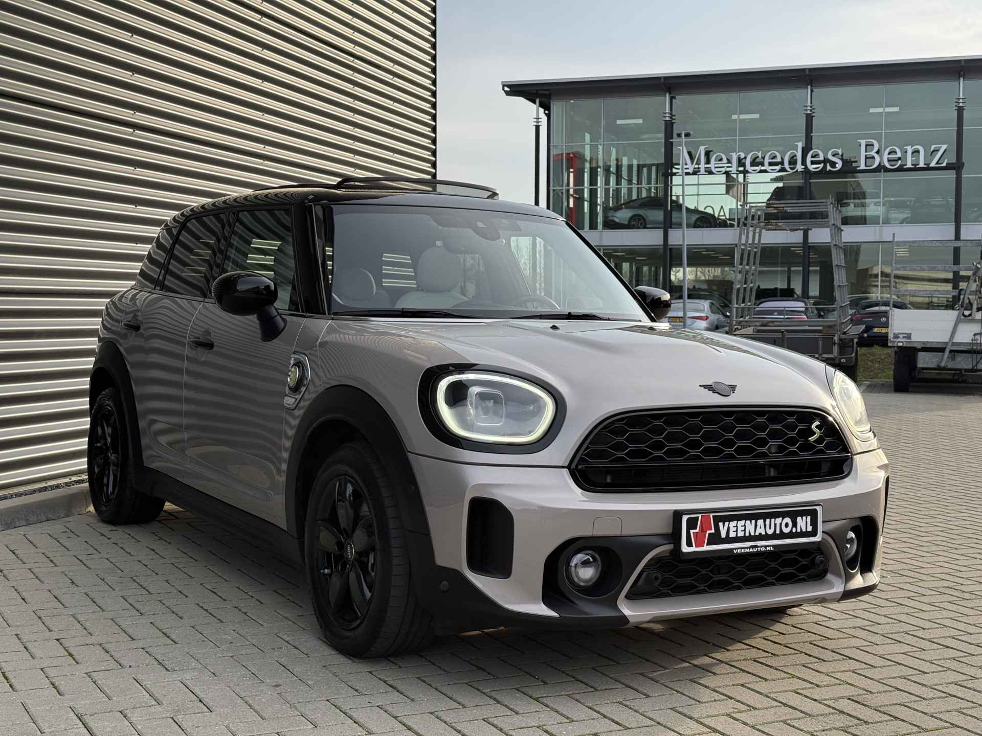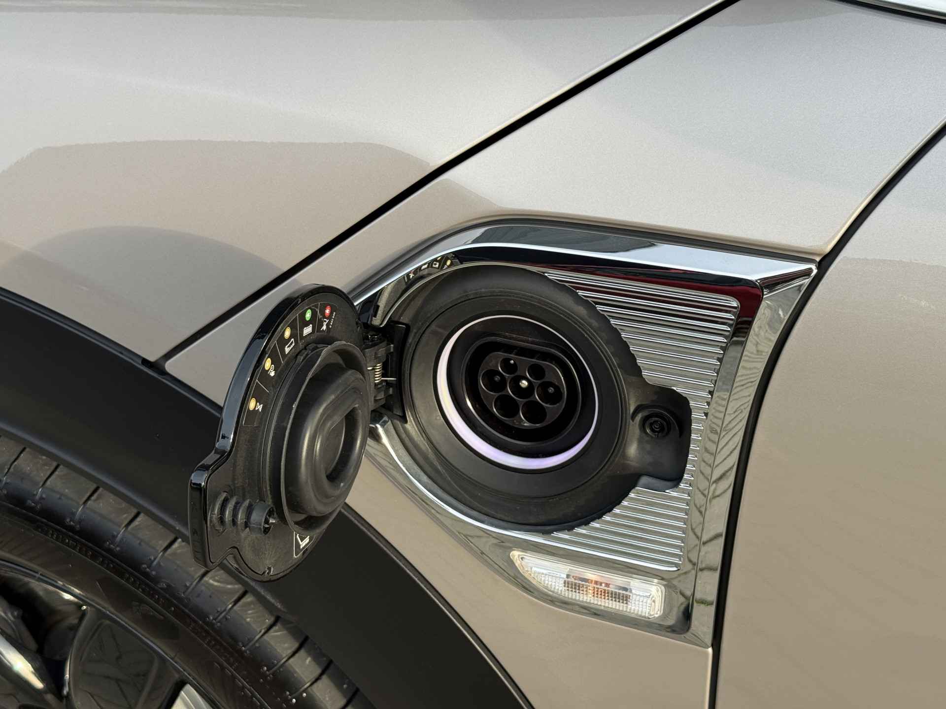 Schitterende Mini Countryman 2.0 Cooper SE ALL4 Plug in Hybrid in Rooftop Grey metallic met hoogglans zwarte licht metalen velgen. Deze Mini is bijzonder compleet uitgerust met onder andere de volgende opties: Panorama dak, elektrische bedienbare voorstoelen met memory, lederen bekleding, Harman Kardon Audio, LED interieur sfeer verlichtingspakket, Apple Carplay, achteruitrijcamera, navigatie, virtuele cockpit, Head Up display, adaptieve cruise control, keyless entry, parkeersensoren voor + achter met parkeer assistent, etc..