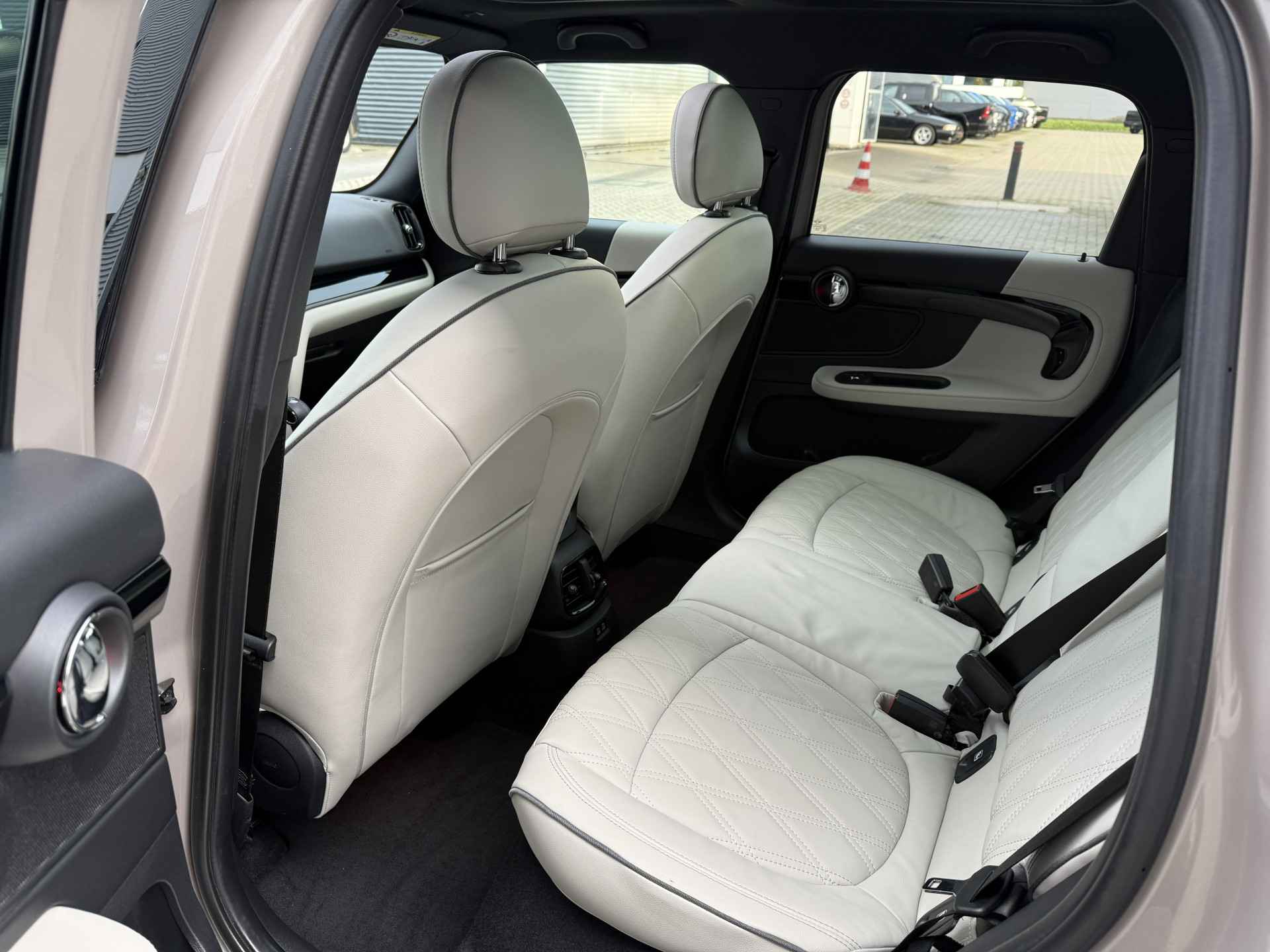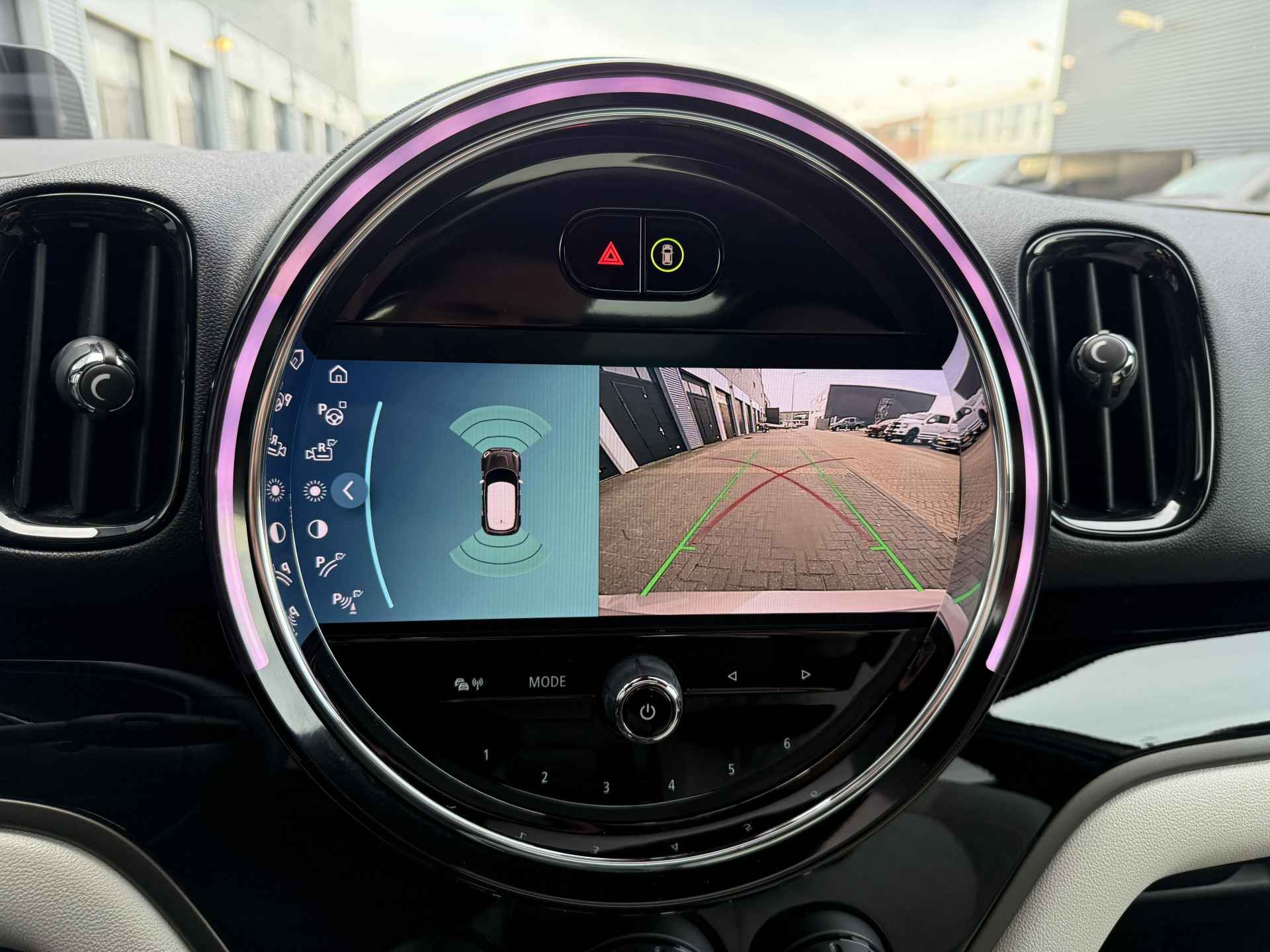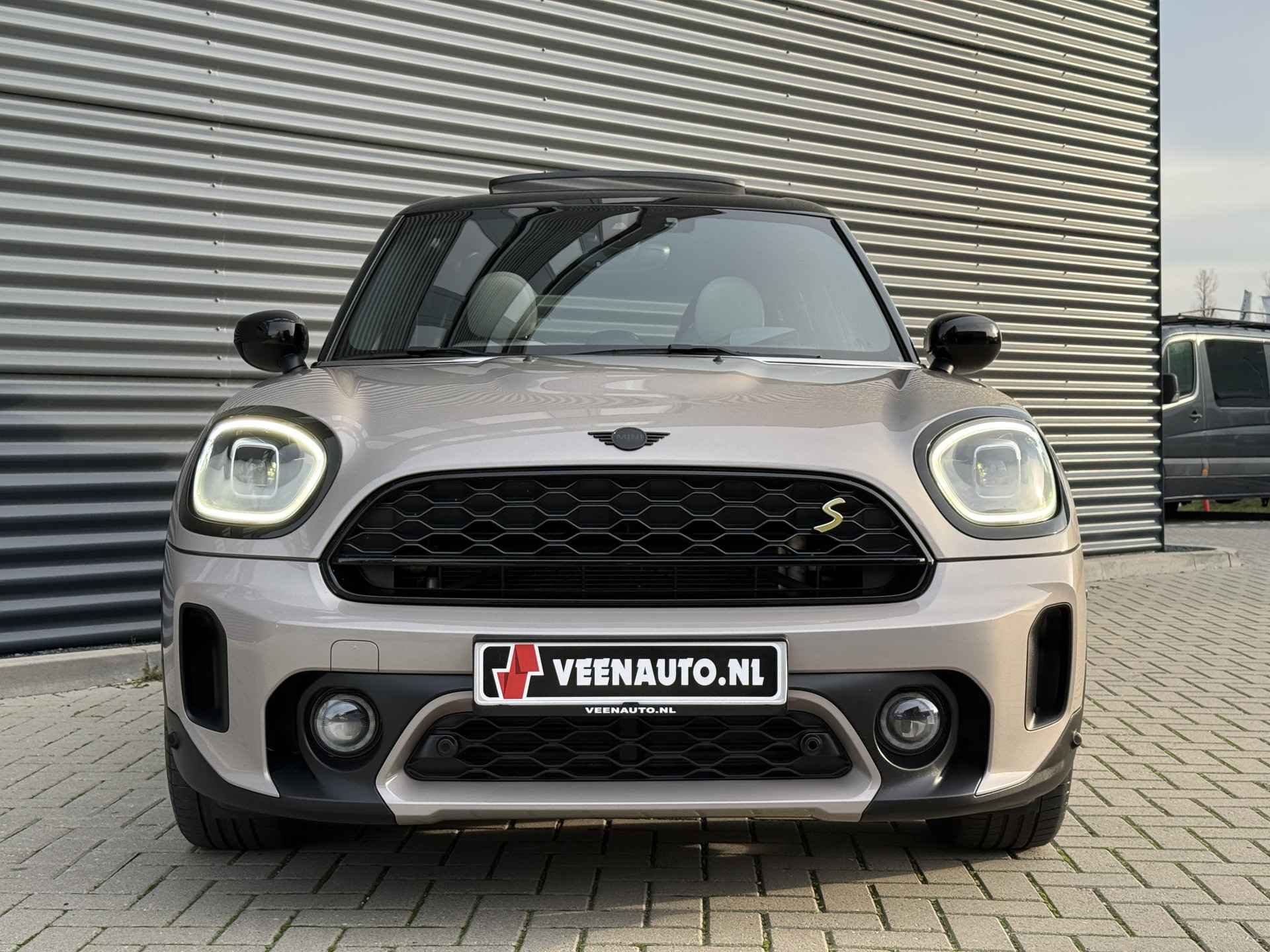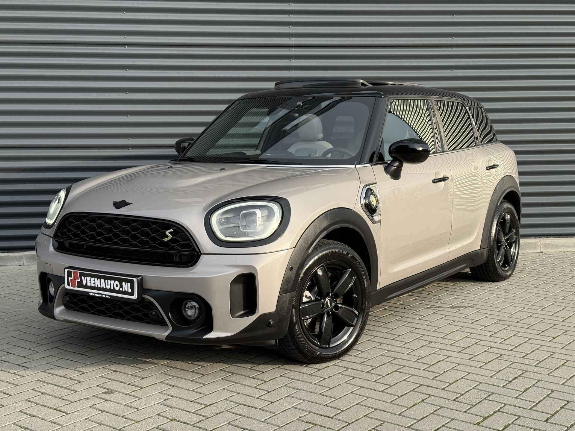 Schitterende Mini Countryman 2.0 Cooper SE ALL4 Plug in Hybrid in Rooftop Grey metallic met hoogglans zwarte licht metalen velgen. Deze Mini is bijzonder compleet uitgerust met onder andere de volgende opties: Panorama dak, elektrische bedienbare voorstoelen met memory, lederen bekleding, Harman Kardon Audio, LED interieur sfeer verlichtingspakket, Apple Carplay, achteruitrijcamera, navigatie, virtuele cockpit, Head Up display, adaptieve cruise control, keyless entry, parkeersensoren voor + achter met parkeer assistent, etc..