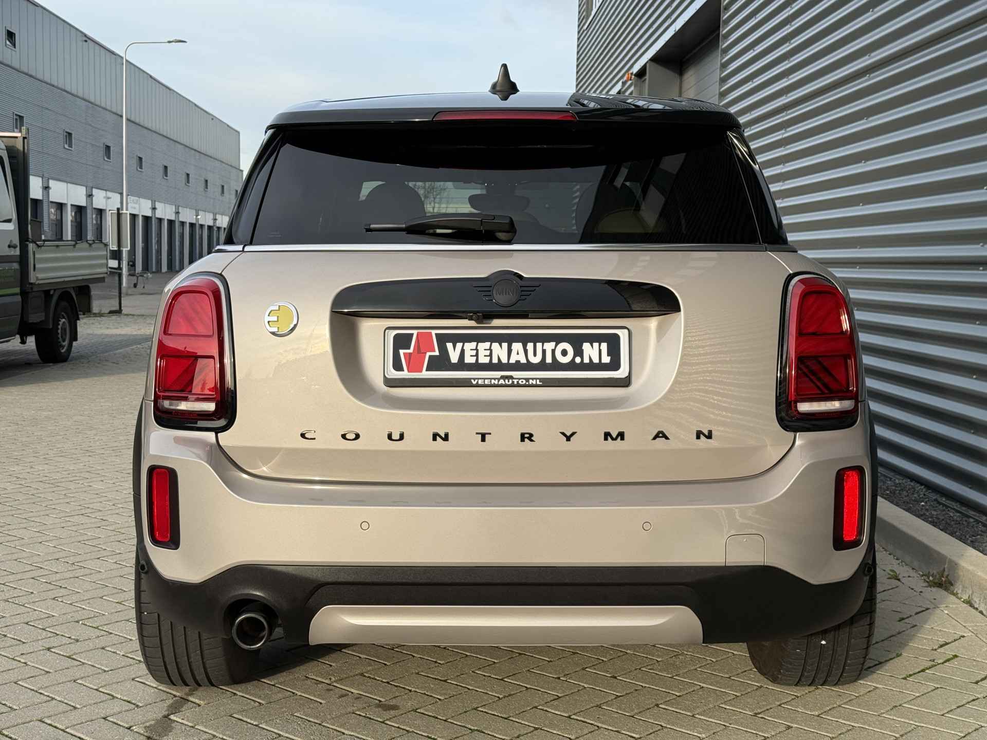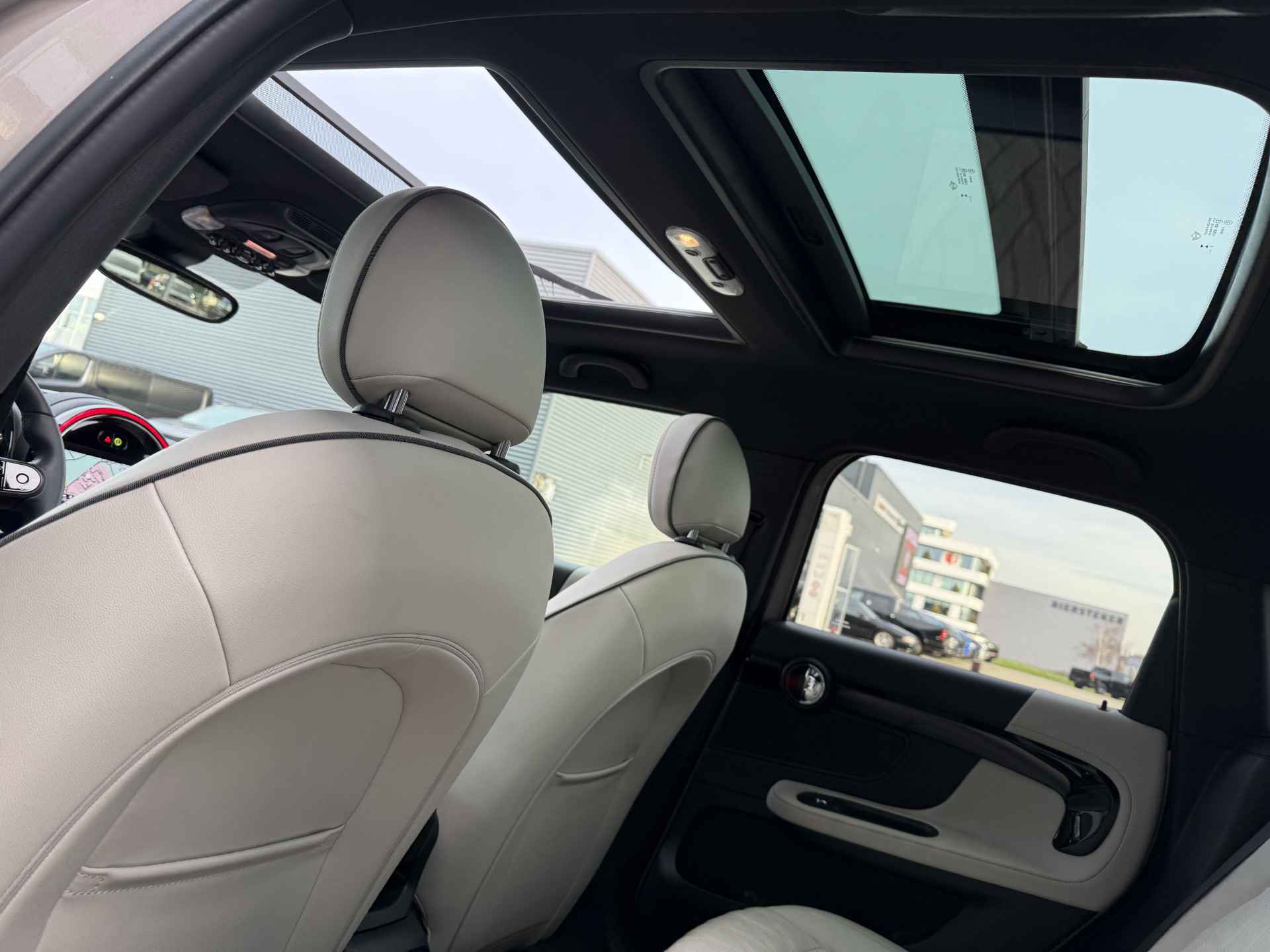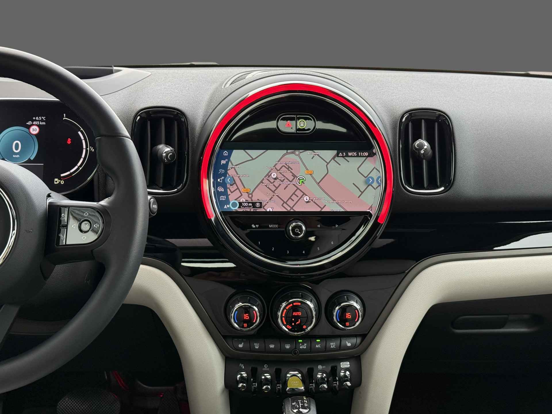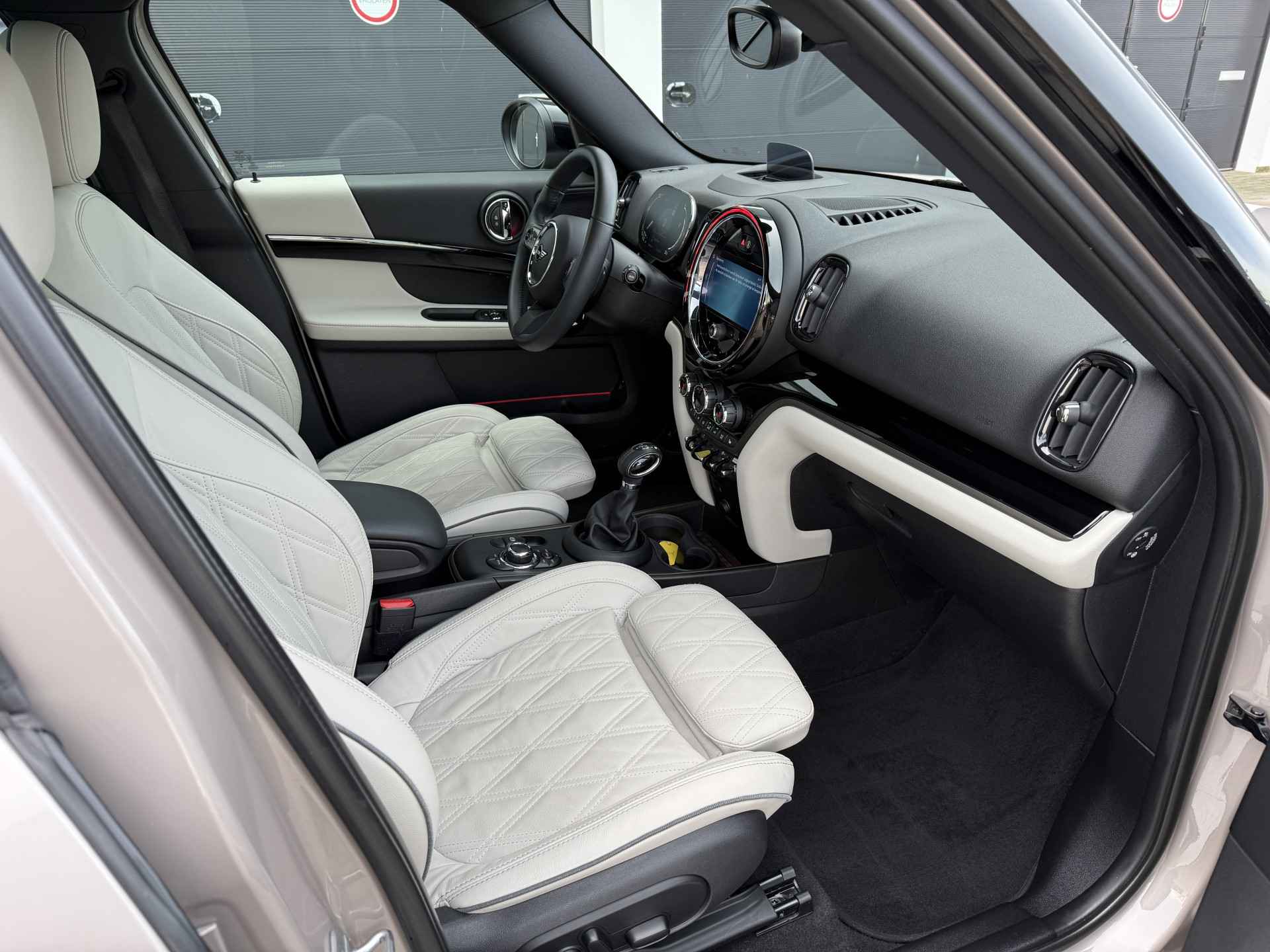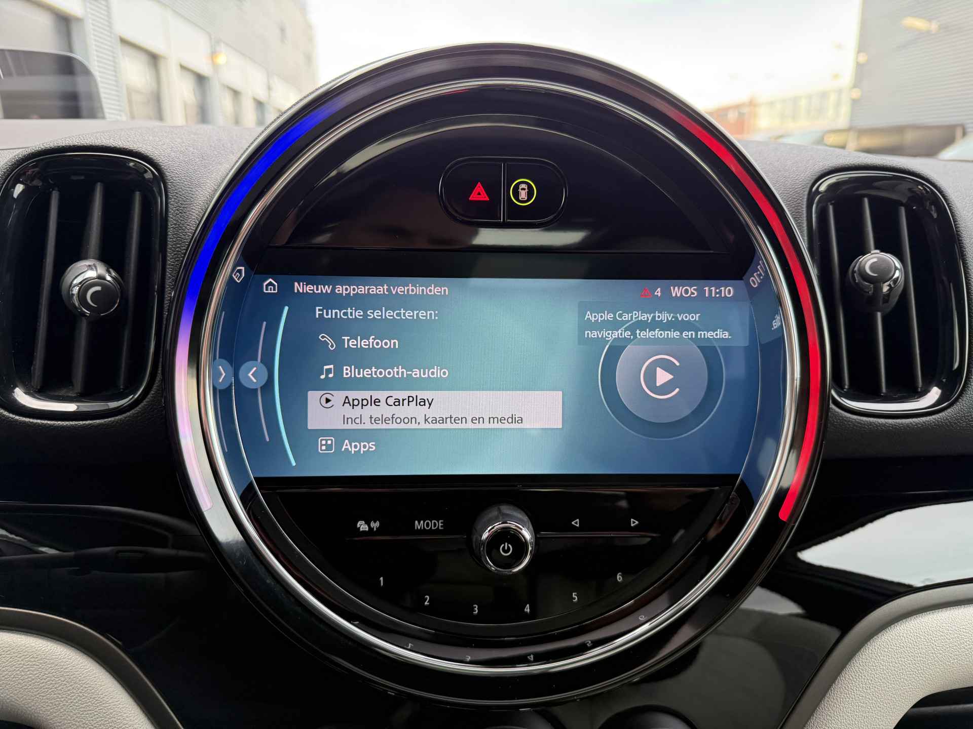 Schitterende Mini Countryman 2.0 Cooper SE ALL4 Plug in Hybrid in Rooftop Grey metallic met hoogglans zwarte licht metalen velgen. Deze Mini is bijzonder compleet uitgerust met onder andere de volgende opties: Panorama dak, elektrische bedienbare voorstoelen met memory, lederen bekleding, Harman Kardon Audio, LED interieur sfeer verlichtingspakket, Apple Carplay, achteruitrijcamera, navigatie, virtuele cockpit, Head Up display, adaptieve cruise control, keyless entry, parkeersensoren voor + achter met parkeer assistent, etc..