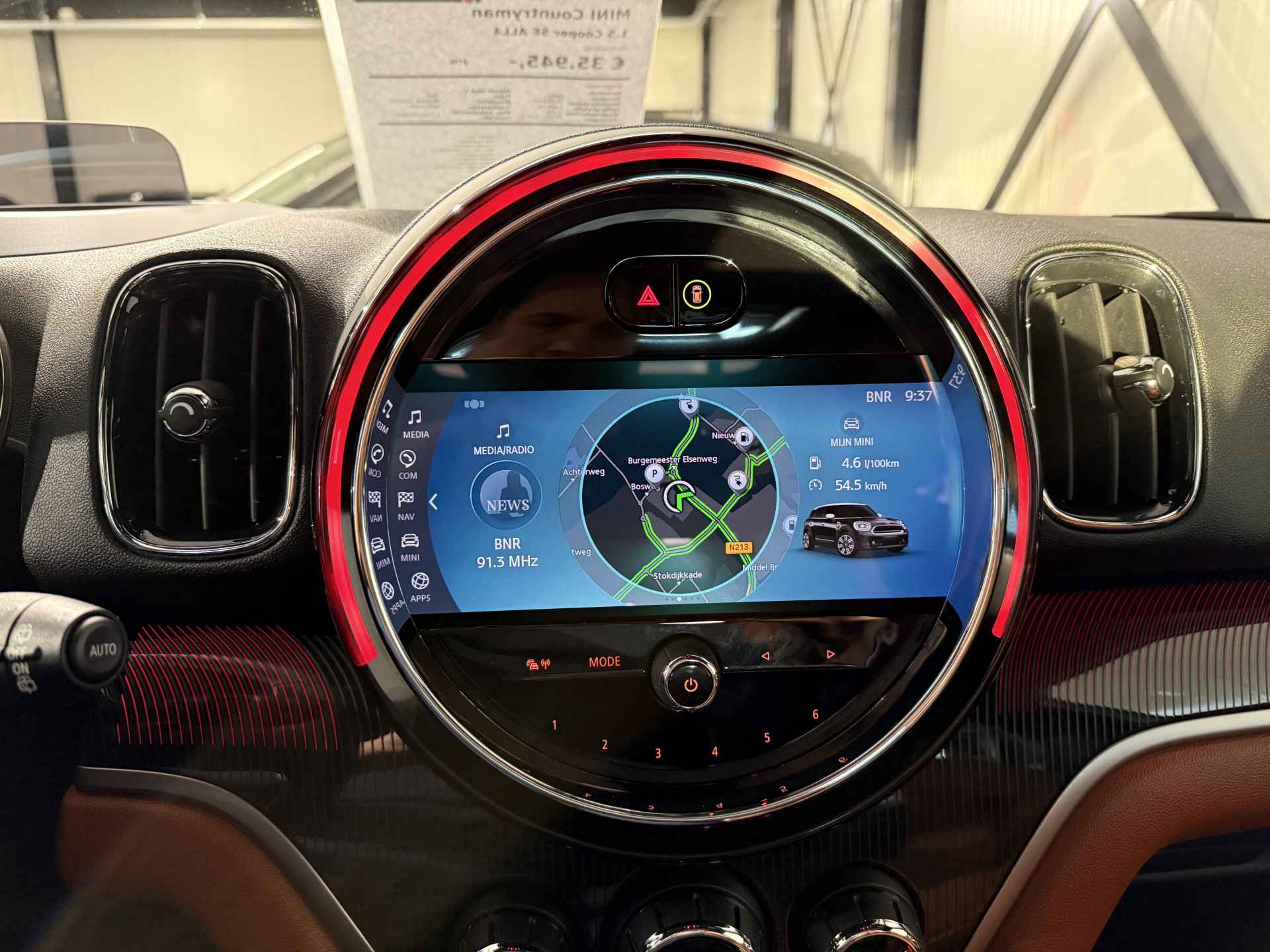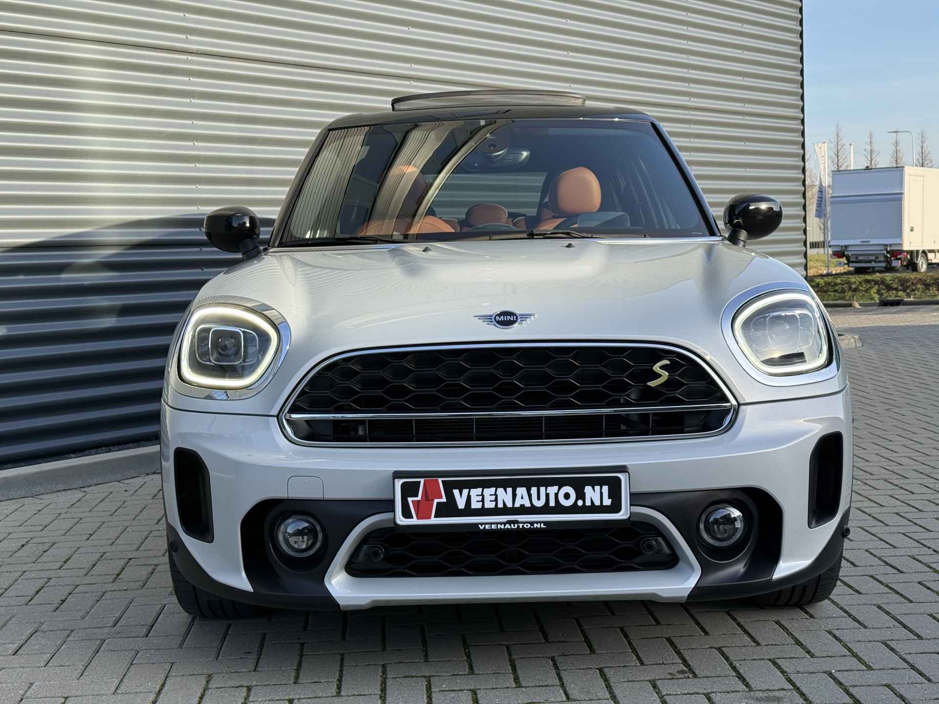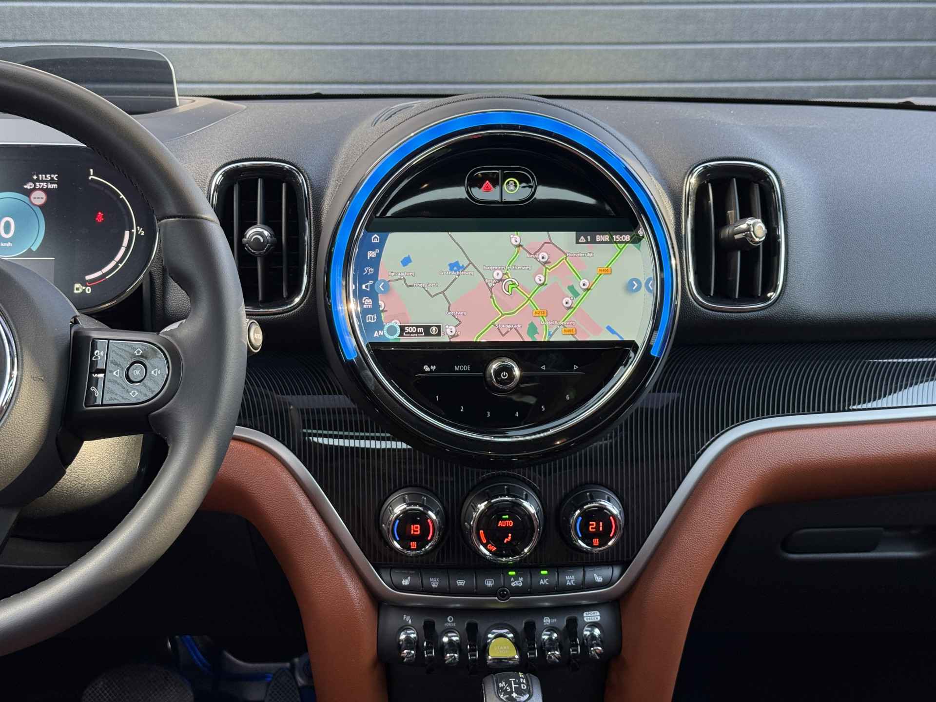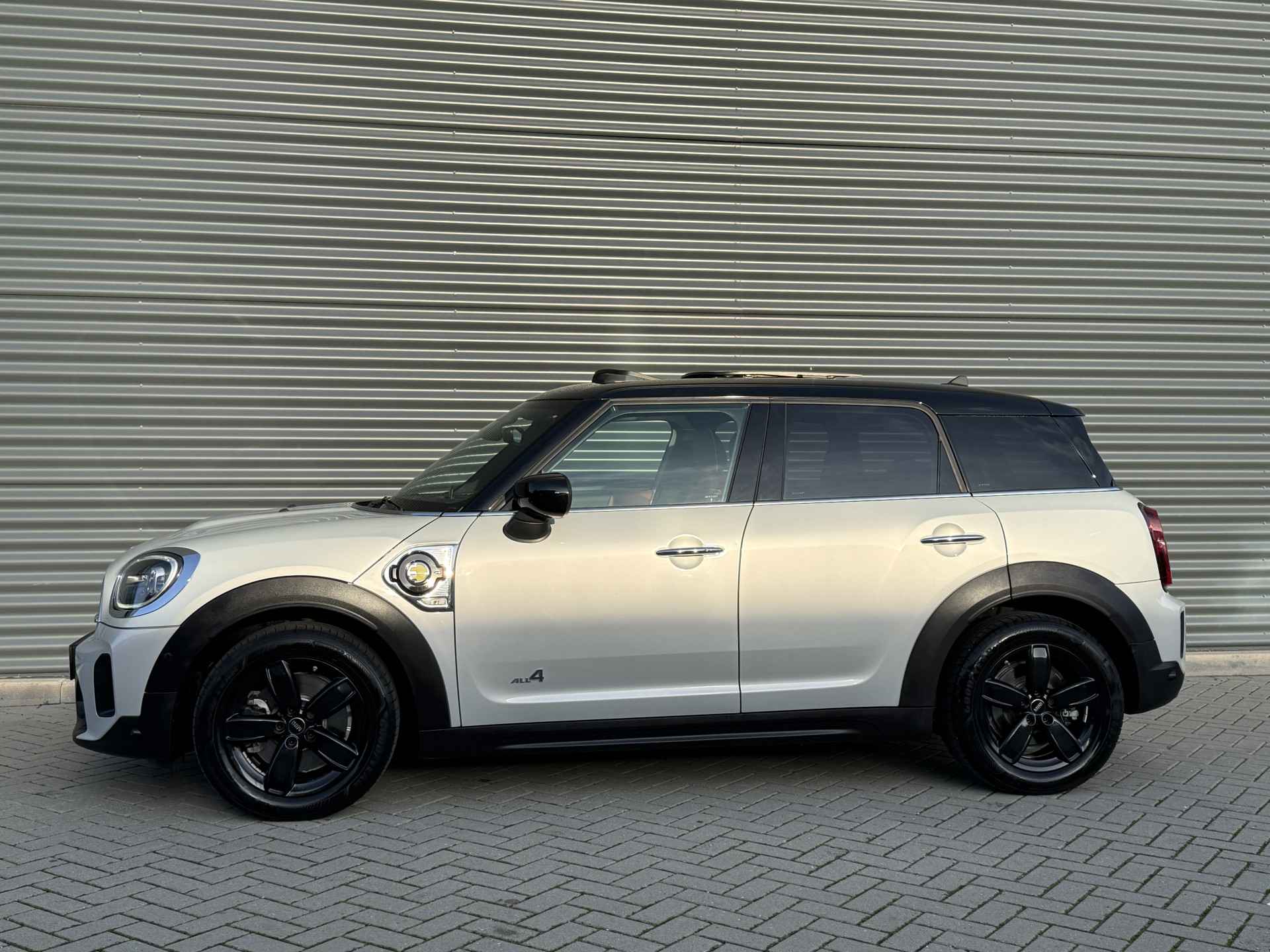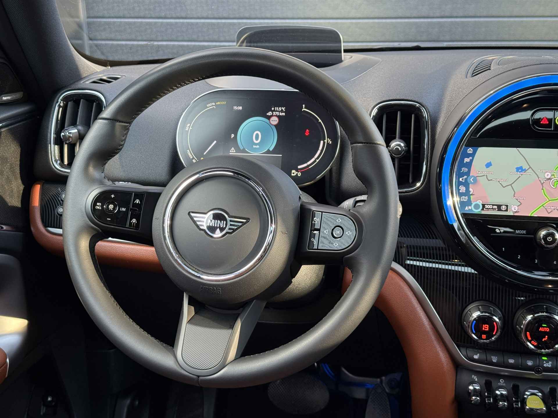 Schitterende Mini Countryman 2.0 Cooper SE ALL4 Plug in Hybrid in White Silver metallic met hoogglans zwarte licht metalen velgen. Deze Mini is bijzonder compleet uitgerust met onder andere de volgende opties: Panorama dak, elektrische bedienbare voorstoelen met memory, lederen bekleding, Harman Kardon Audio, uitgebreid LED interieur sfeer verlichtingspakket, Apple Carplay, achteruitrijcamera, navigatie, virtuele cockpit, Head Up display, adaptieve cruise control, keyless entry, parkeersensoren voor + achter met parkeer assistent, etc..