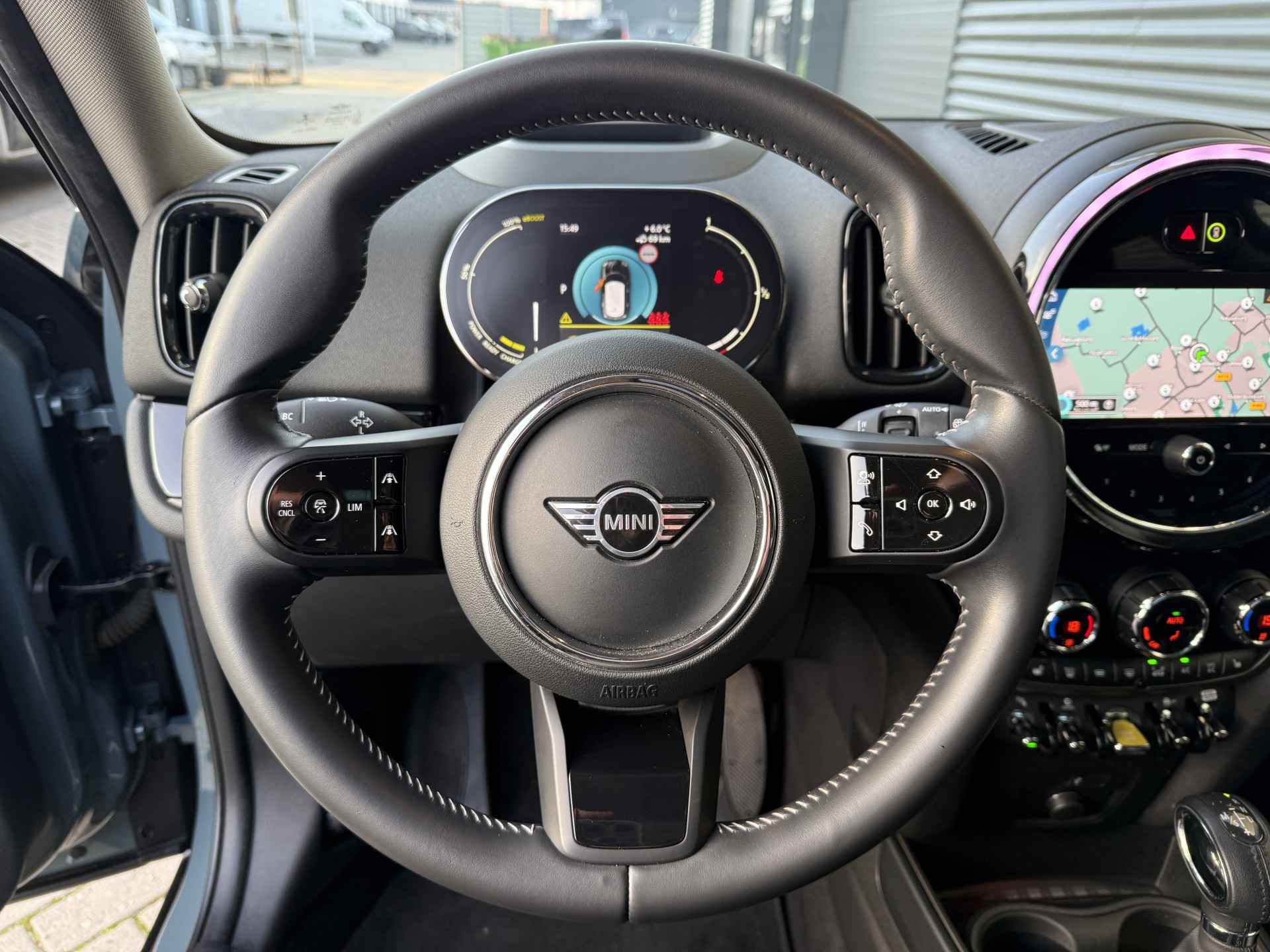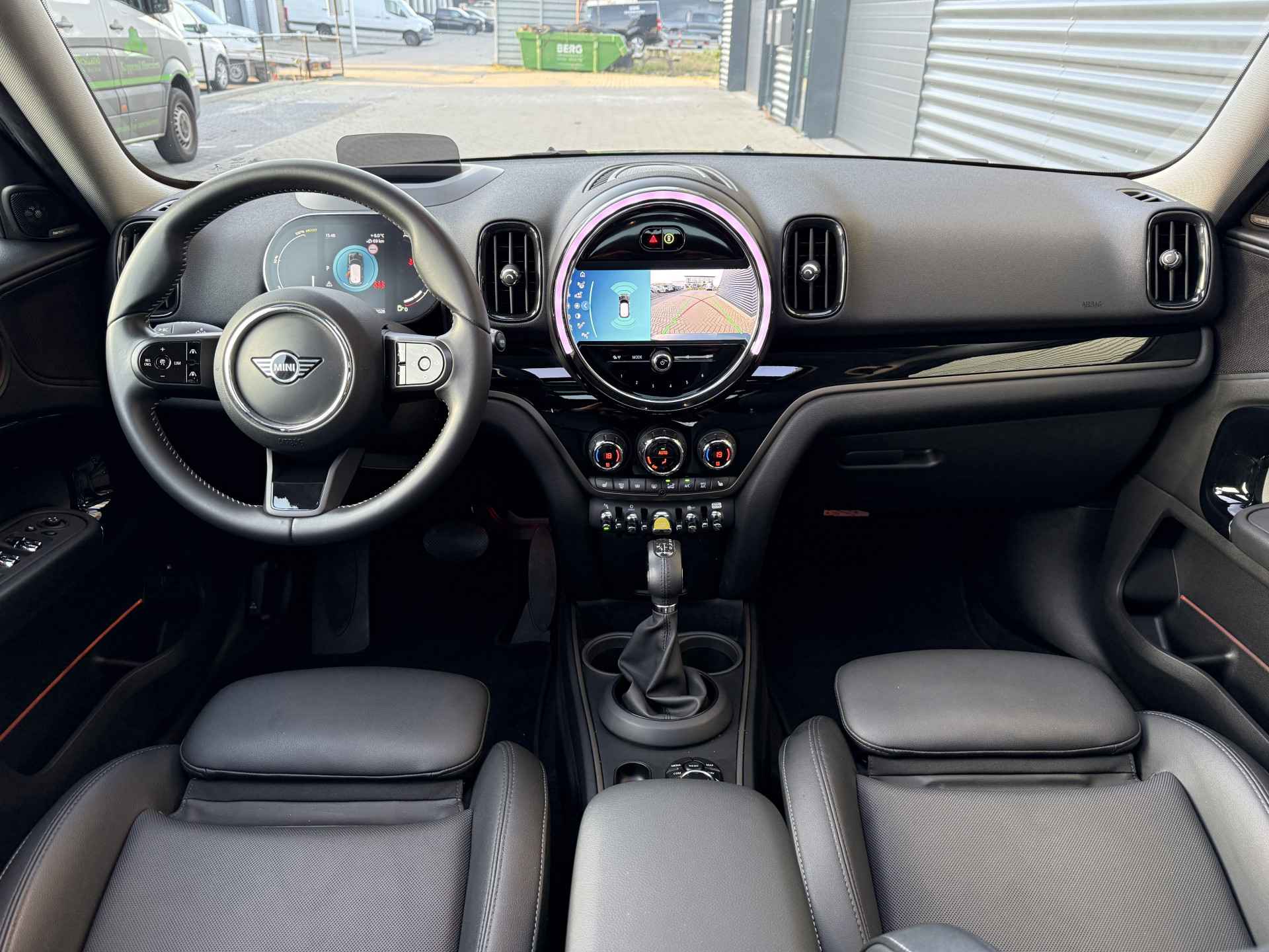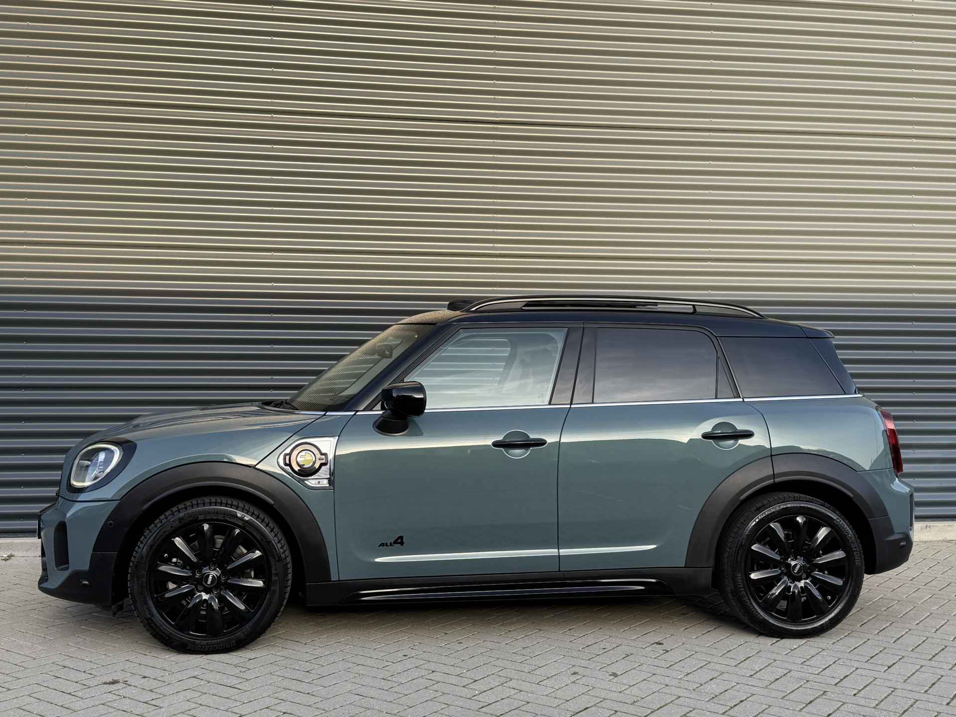 Schitterende Mini Countryman 2.0 Cooper SE ALL4 Plug in Hybrid in Sage Green metallic met hoogglans 18 inch licht metalen velgen en Black Optic pakket. Deze Mini is bijzonder compleet uitgerust met onder andere de volgende opties: Panorama dak, Harman Kardon Audio, stoelverwarming, lederen sport-comfort stoelen elektrisch bedienbaar met memory, Apple Carplay, achteruitrijcamera, navigatie, virtuele cockpit, Head Up display, adaptieve cruise control, keyless entry, parkeersensoren voor + achter met parkeer assistent, etc..