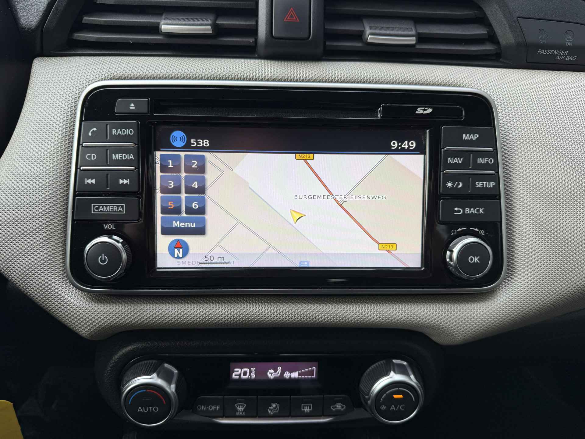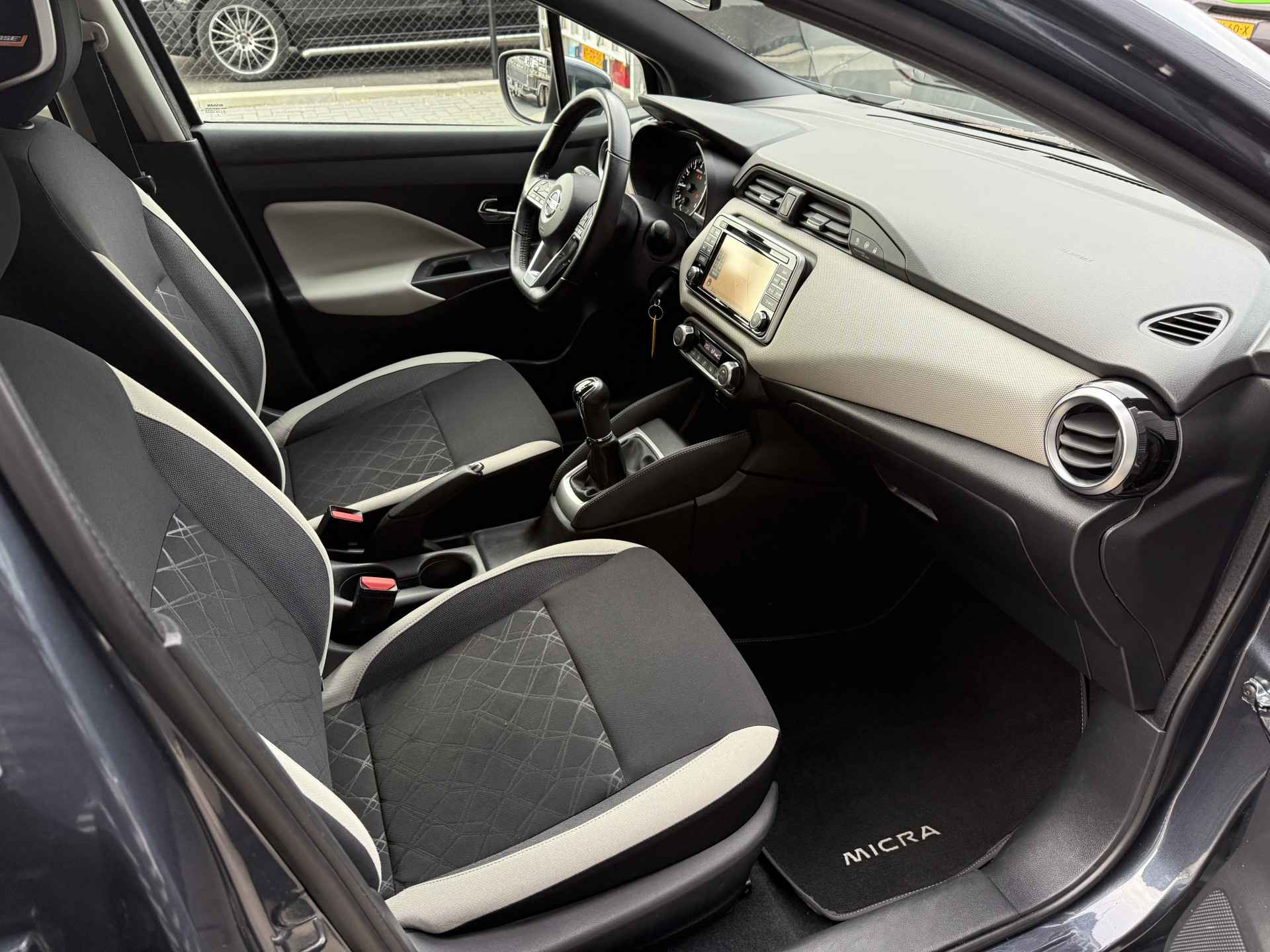 Nissan Micra 5-deurs voorzien van veel mooie opties zoals: 360 Camera, navigatie, cruise control, climate control, parkeersensoren, 16 inch licht metalen velgen met Vredestein All Season banden, etc..